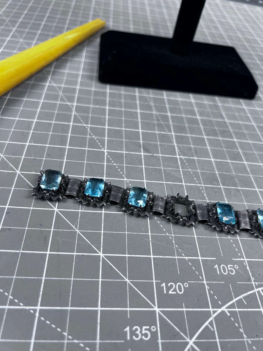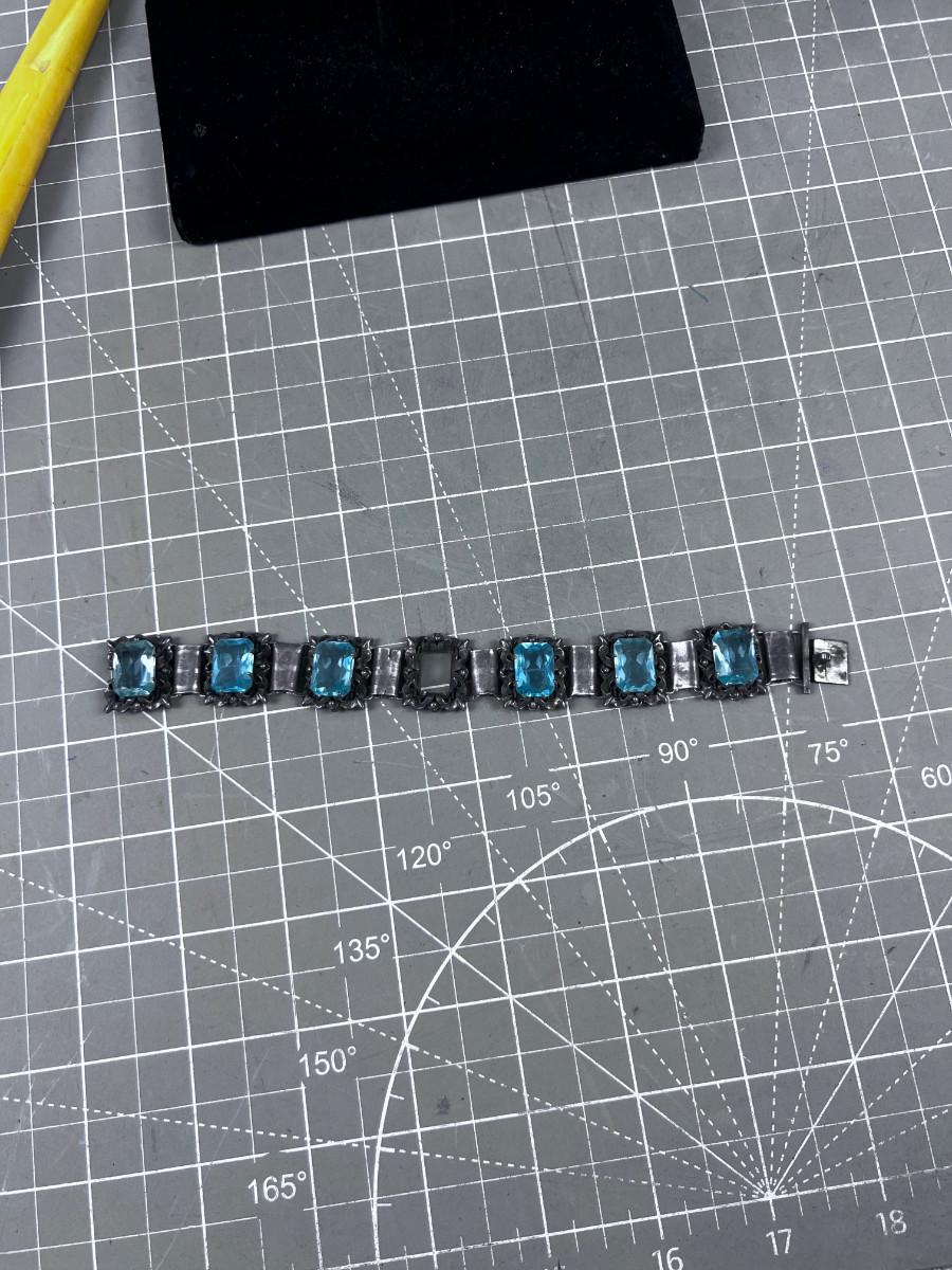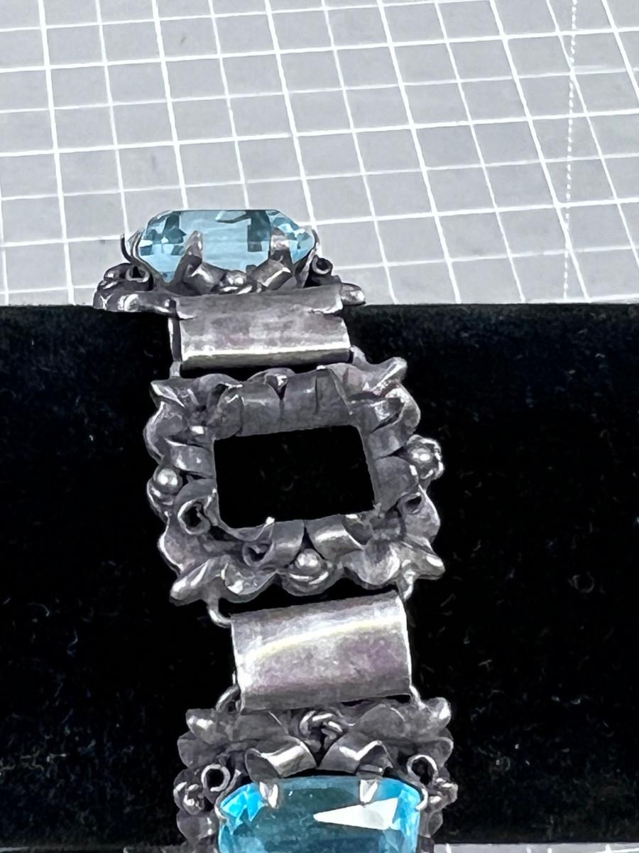 Antique Silver Bracelet with an Aqua Marine Stones.