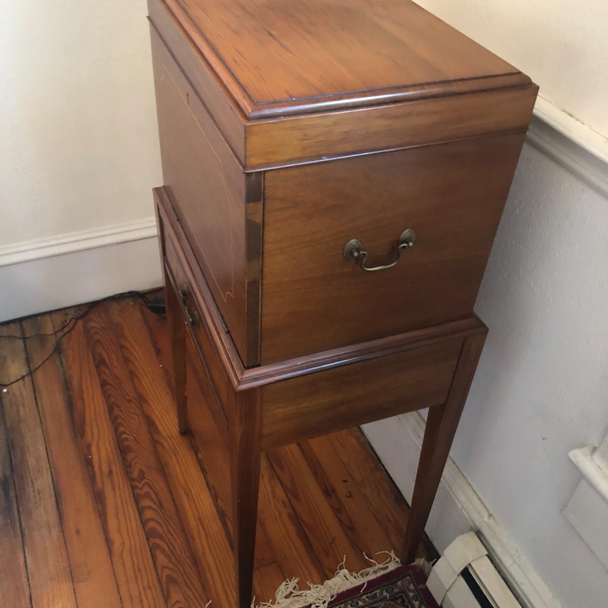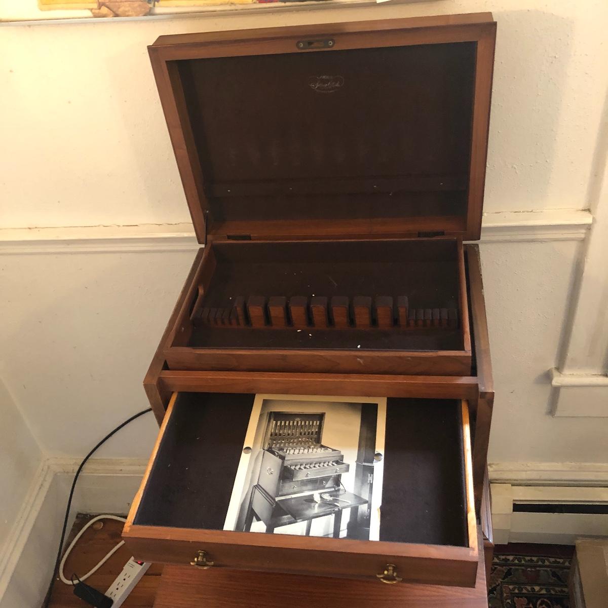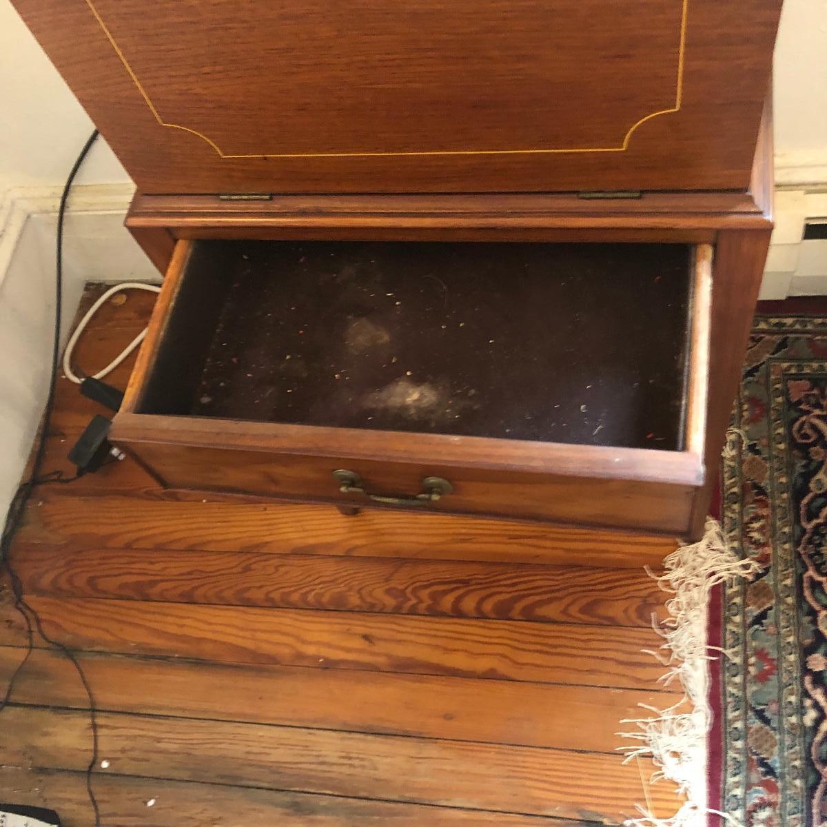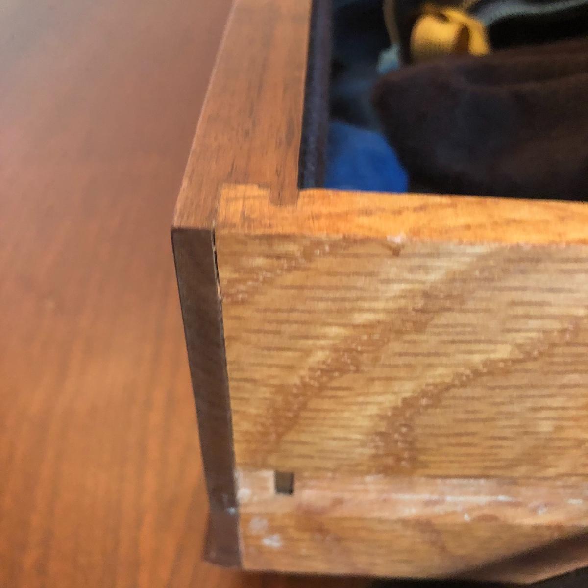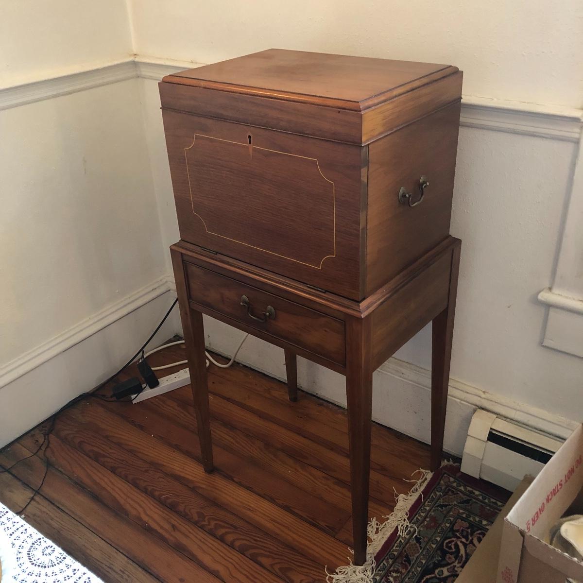 This stunning antique silver chest is in great condition; it’s felt line drawers just need cleaning. Piece has one larger dovetailed drawer in the lower section and three smaller in the upper and brass hardware.