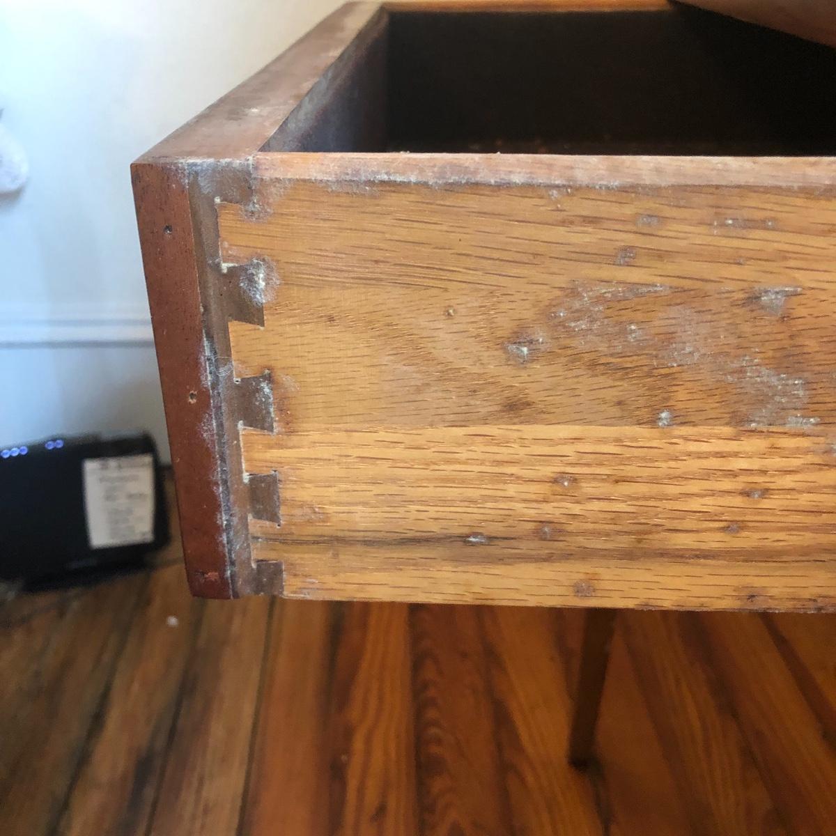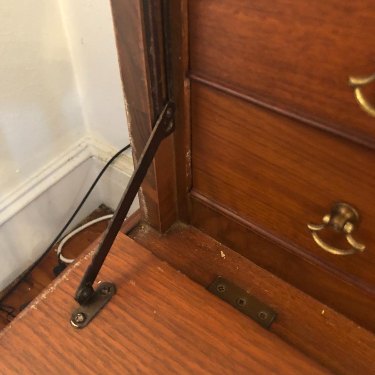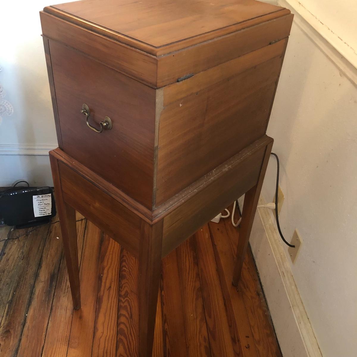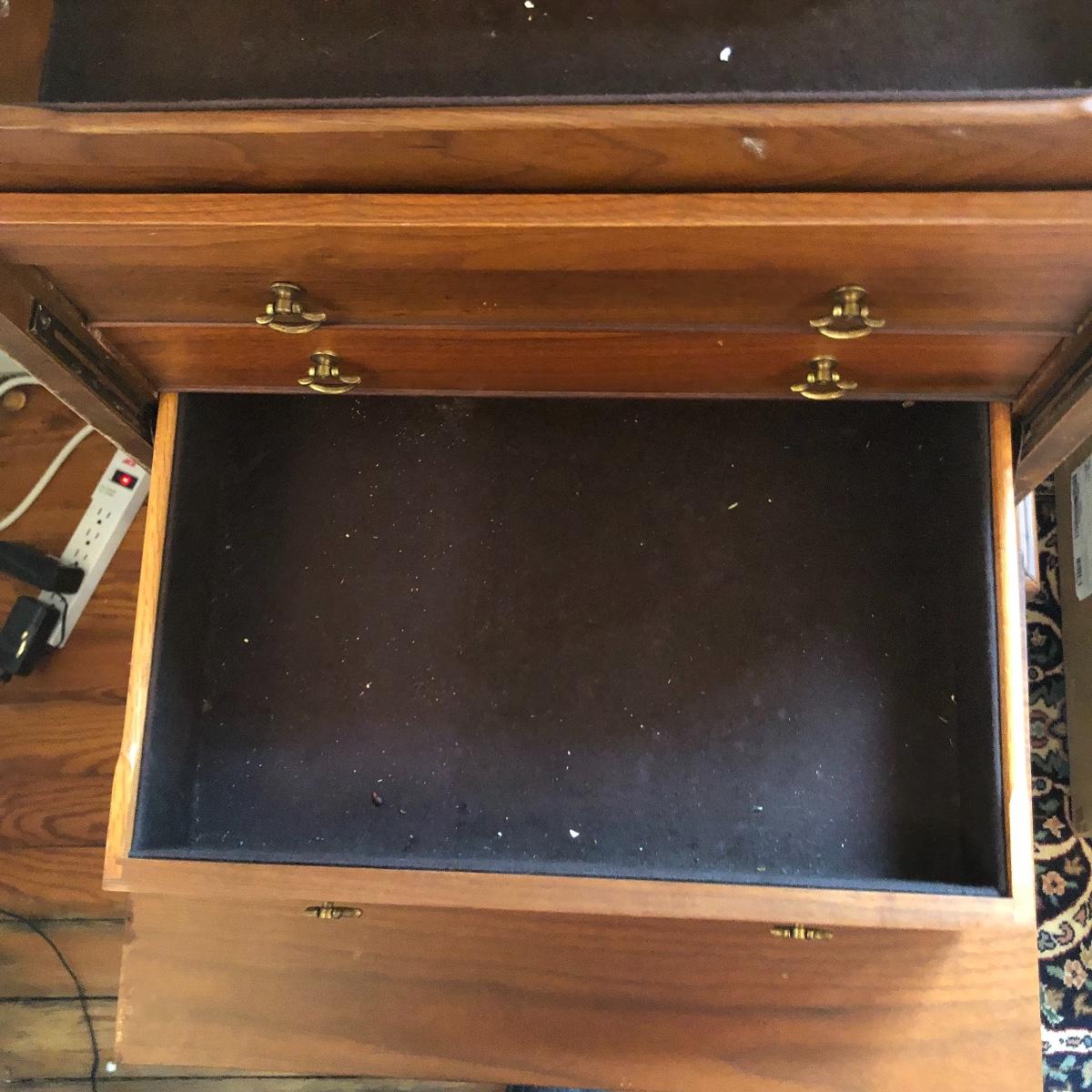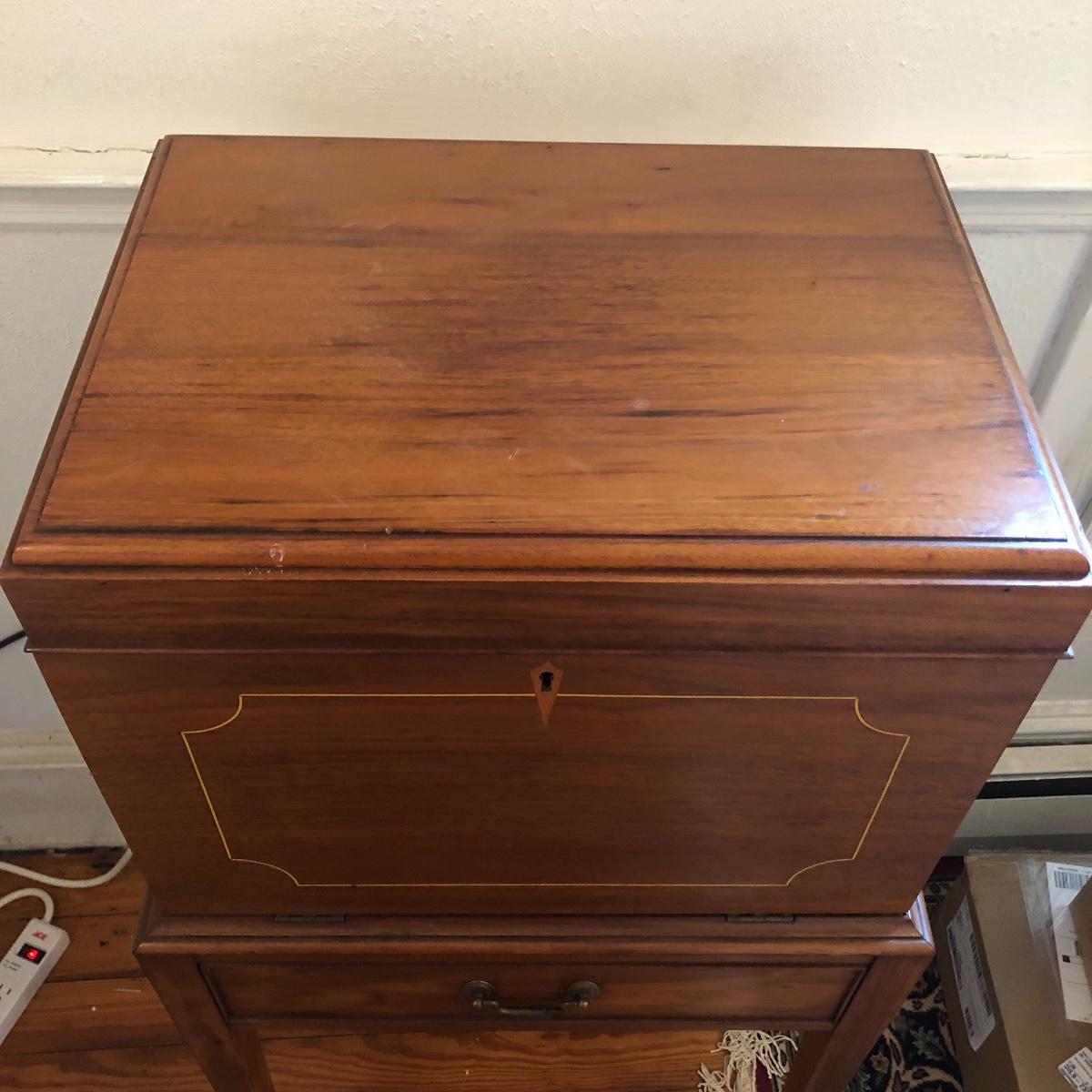 This stunning antique silver chest is in great condition; it’s felt line drawers just need cleaning. Piece has one larger dovetailed drawer in the lower section and three smaller in the upper and brass hardware.