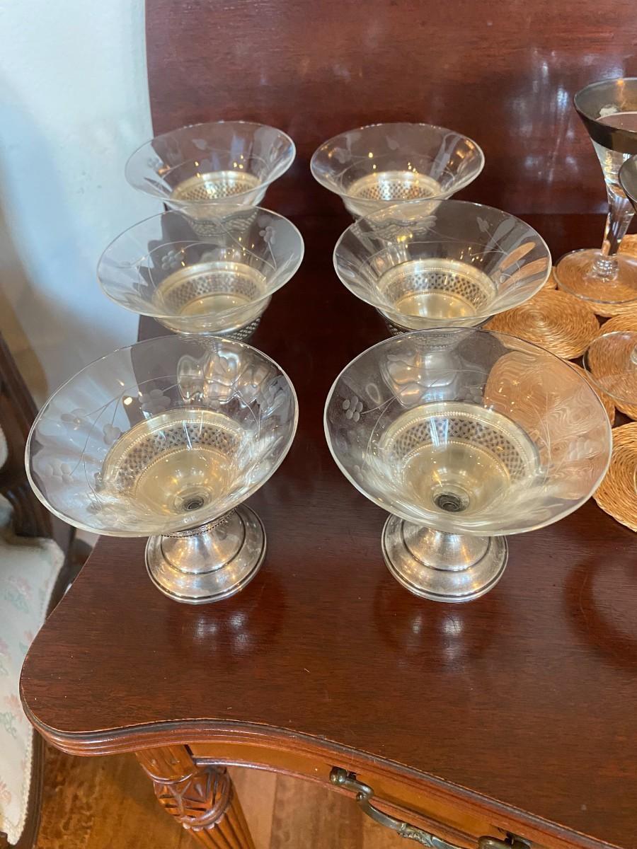 Antique Silver & Crystal Champage Coups - crystal bowl screws into silver stem