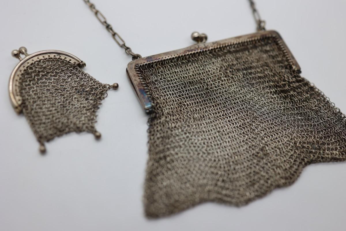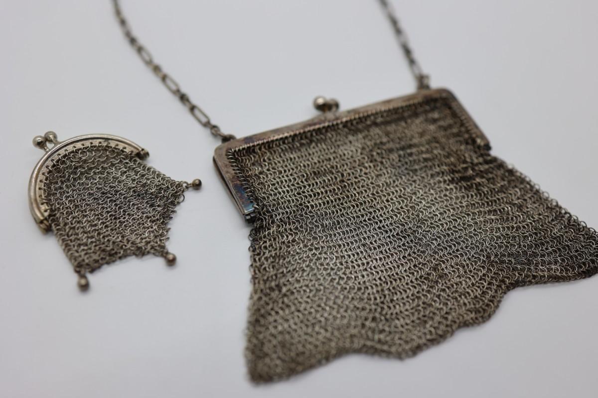 Antique Silver Mesh Bag With Coin Purse Made in Spain (See Description)