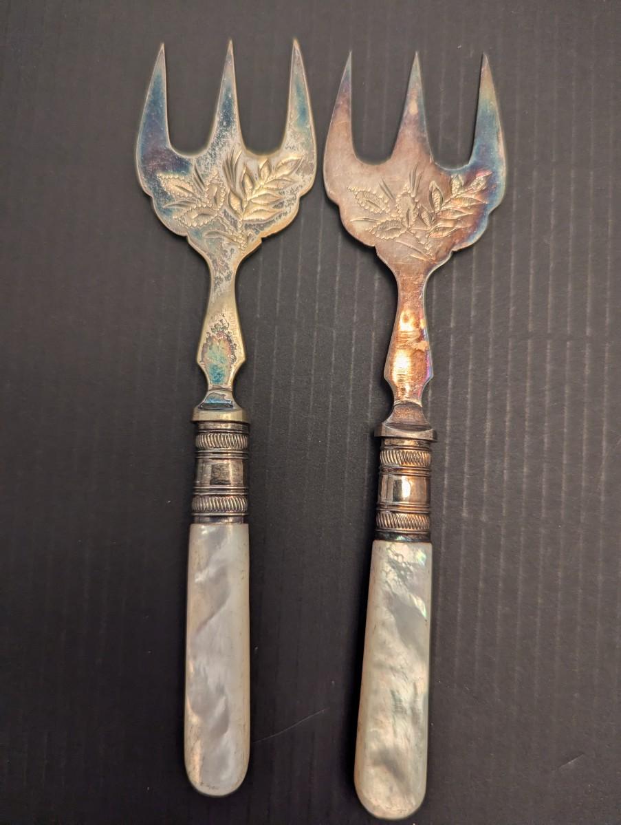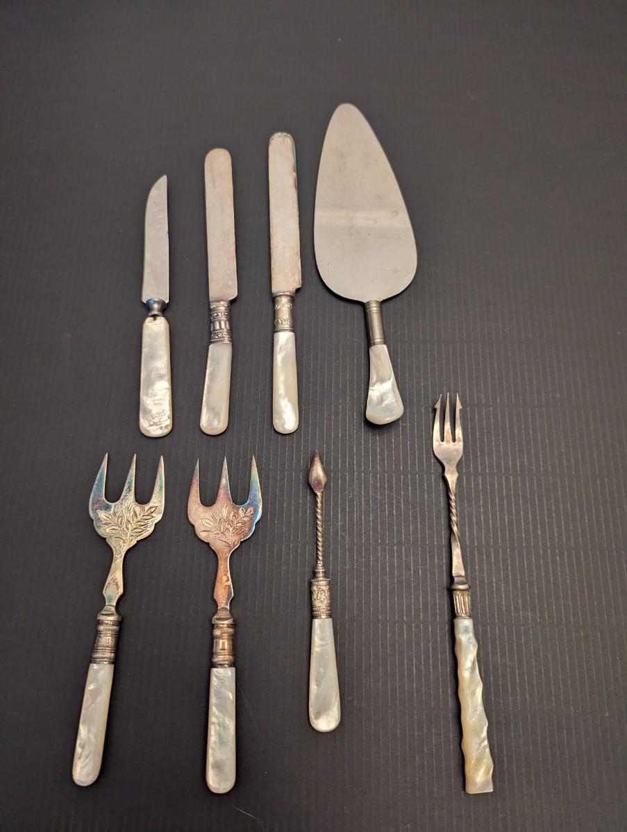 Antique Silver Plate Mother Of Pearl Utensils #14