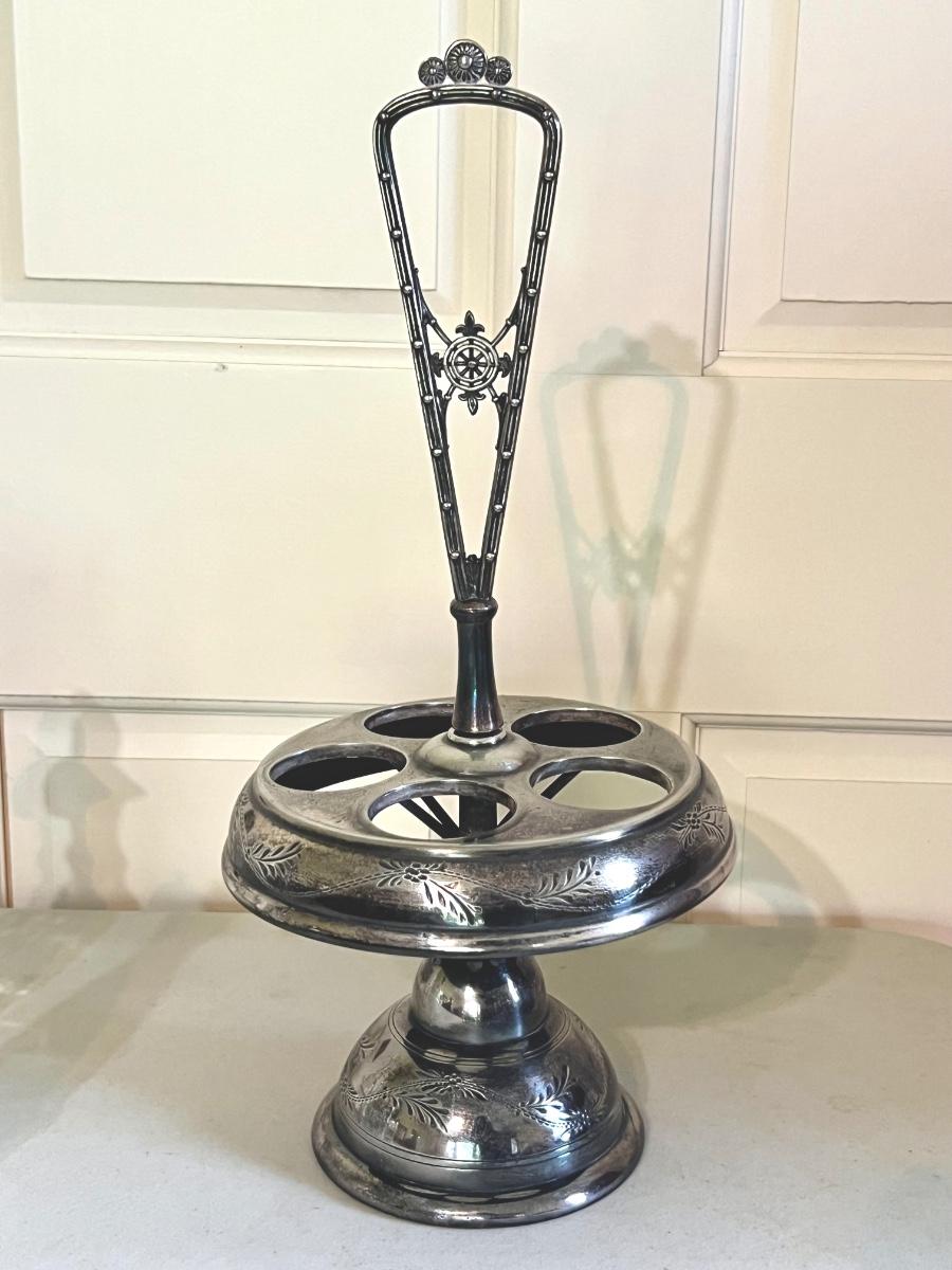 ANTIQUE SILVER PLATE VICTORIAN CONDIMENT CADDY W/ ETCHED