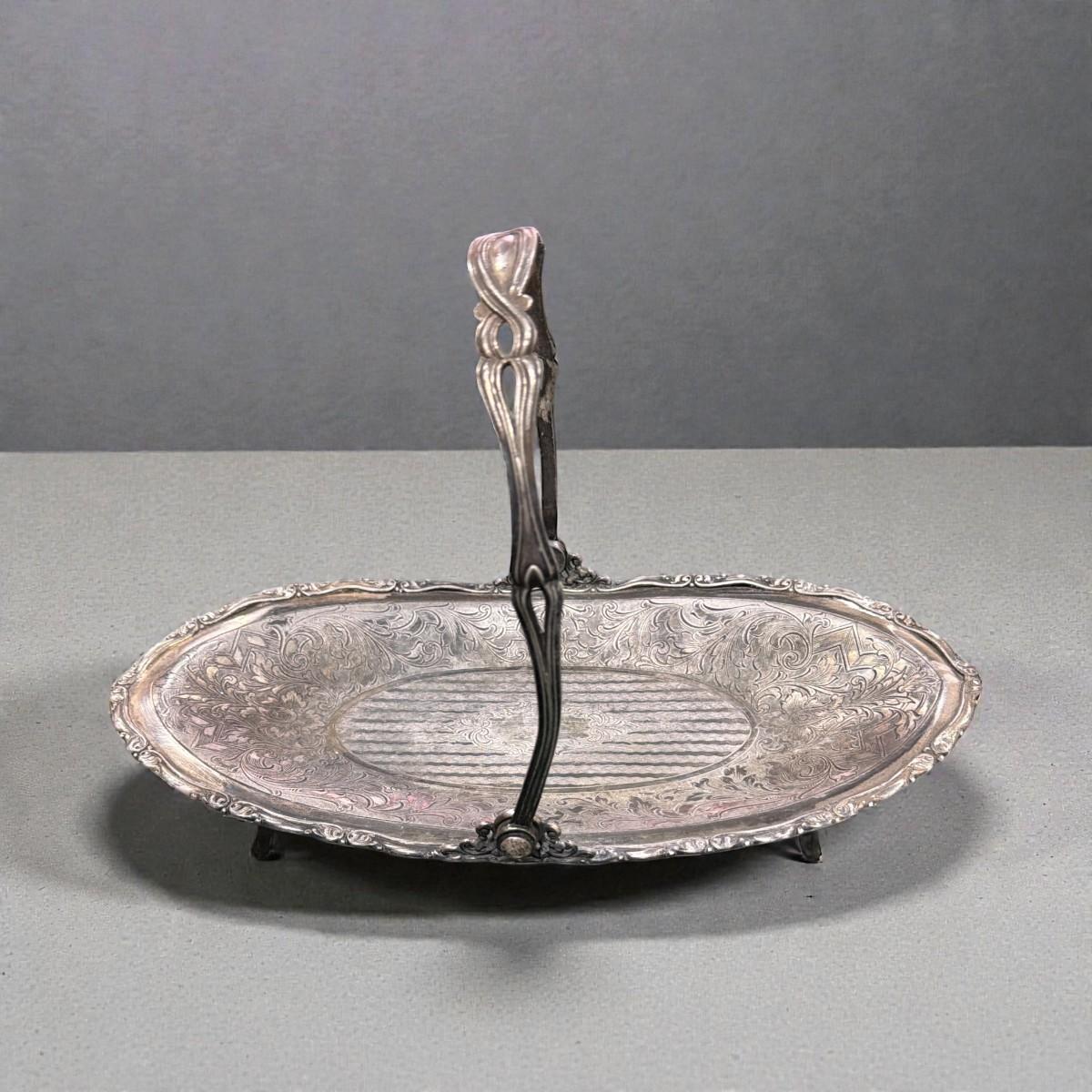 Antique Silver Plated Bride's Basket or Oval Relish Tray