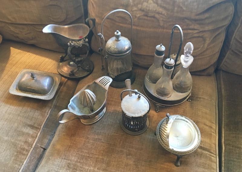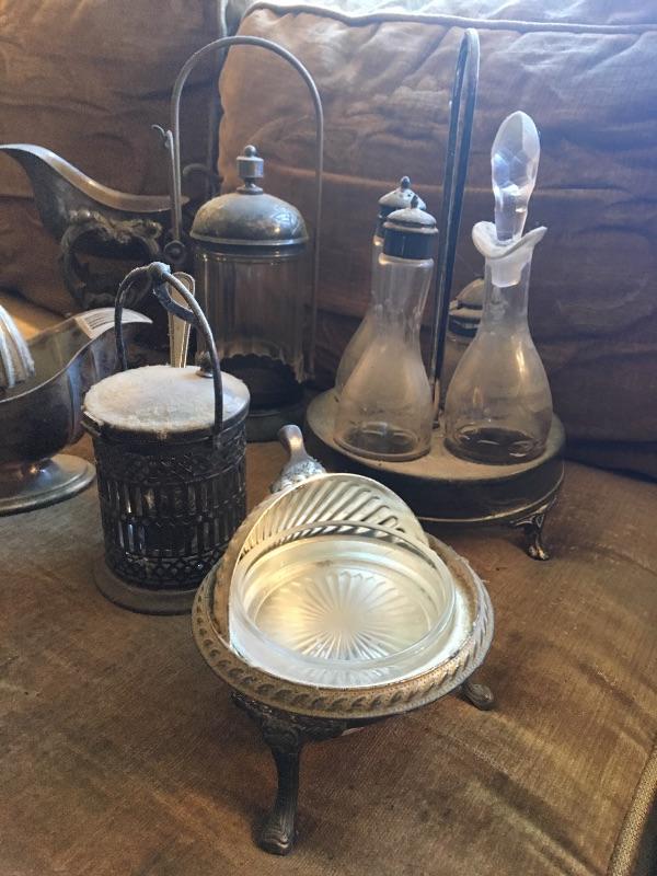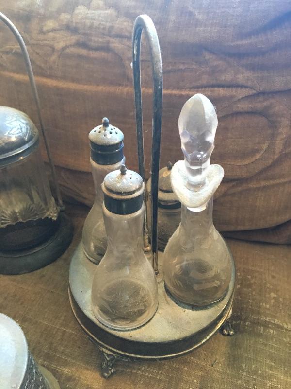 Antique Silver Plated Server, Cruet Collection of 7 Pieces