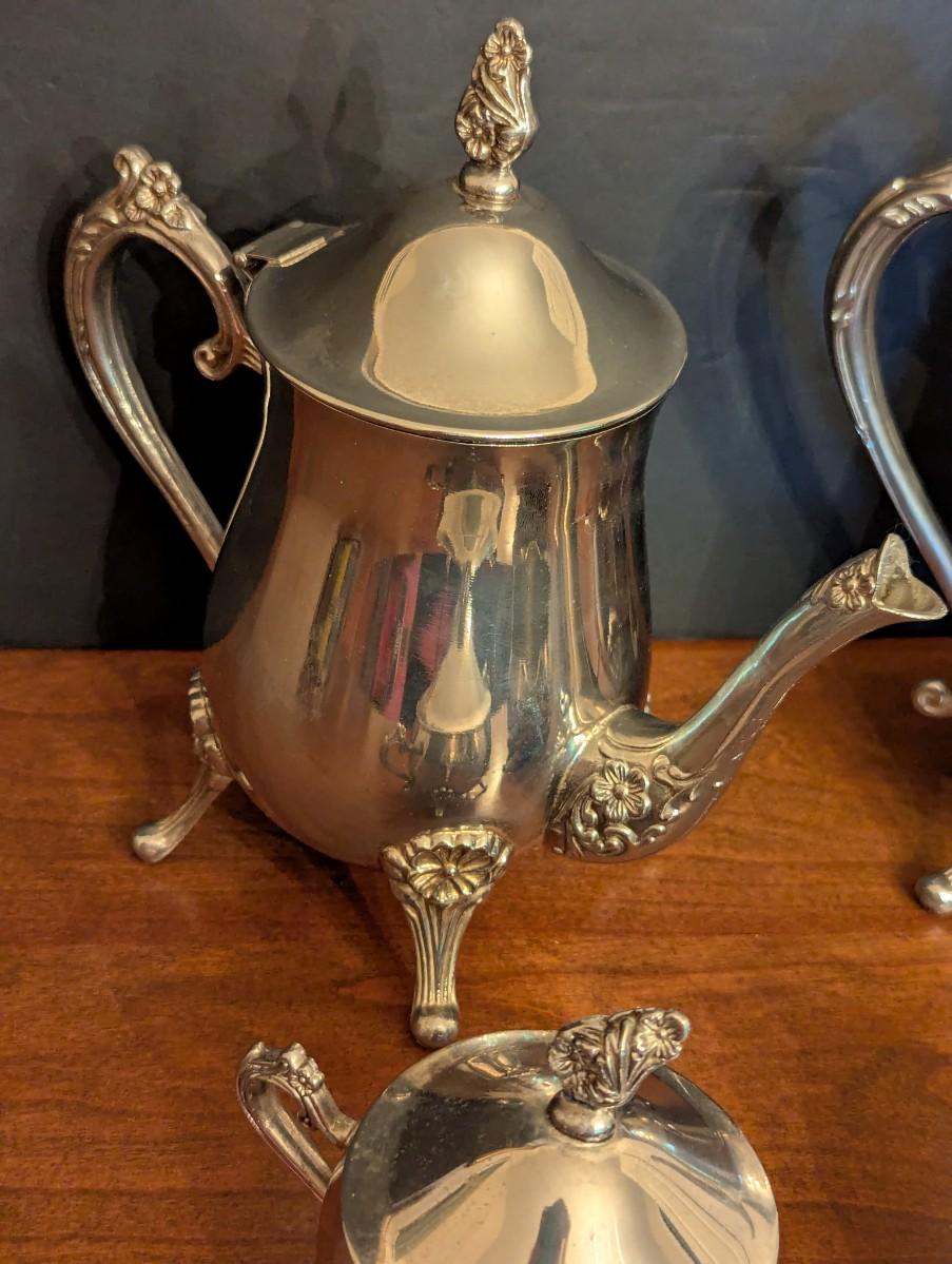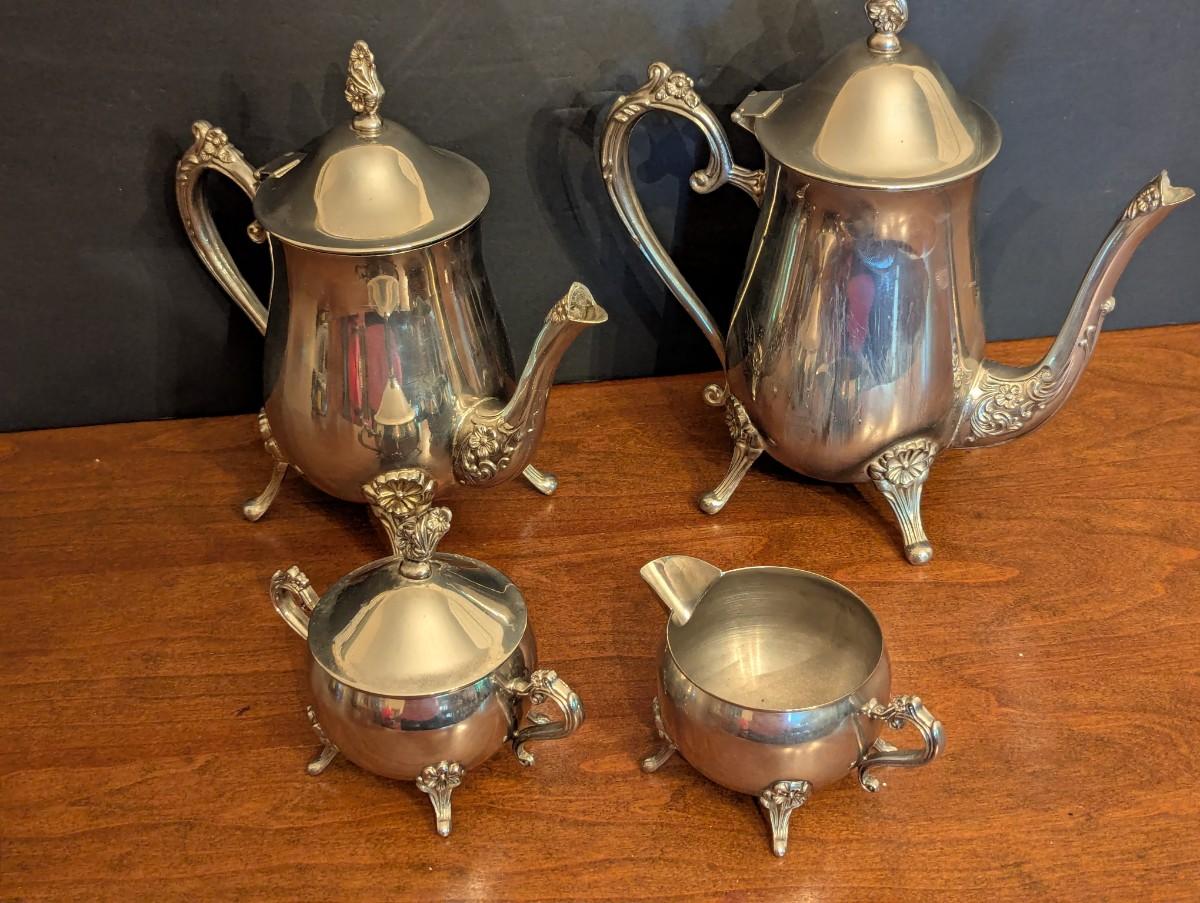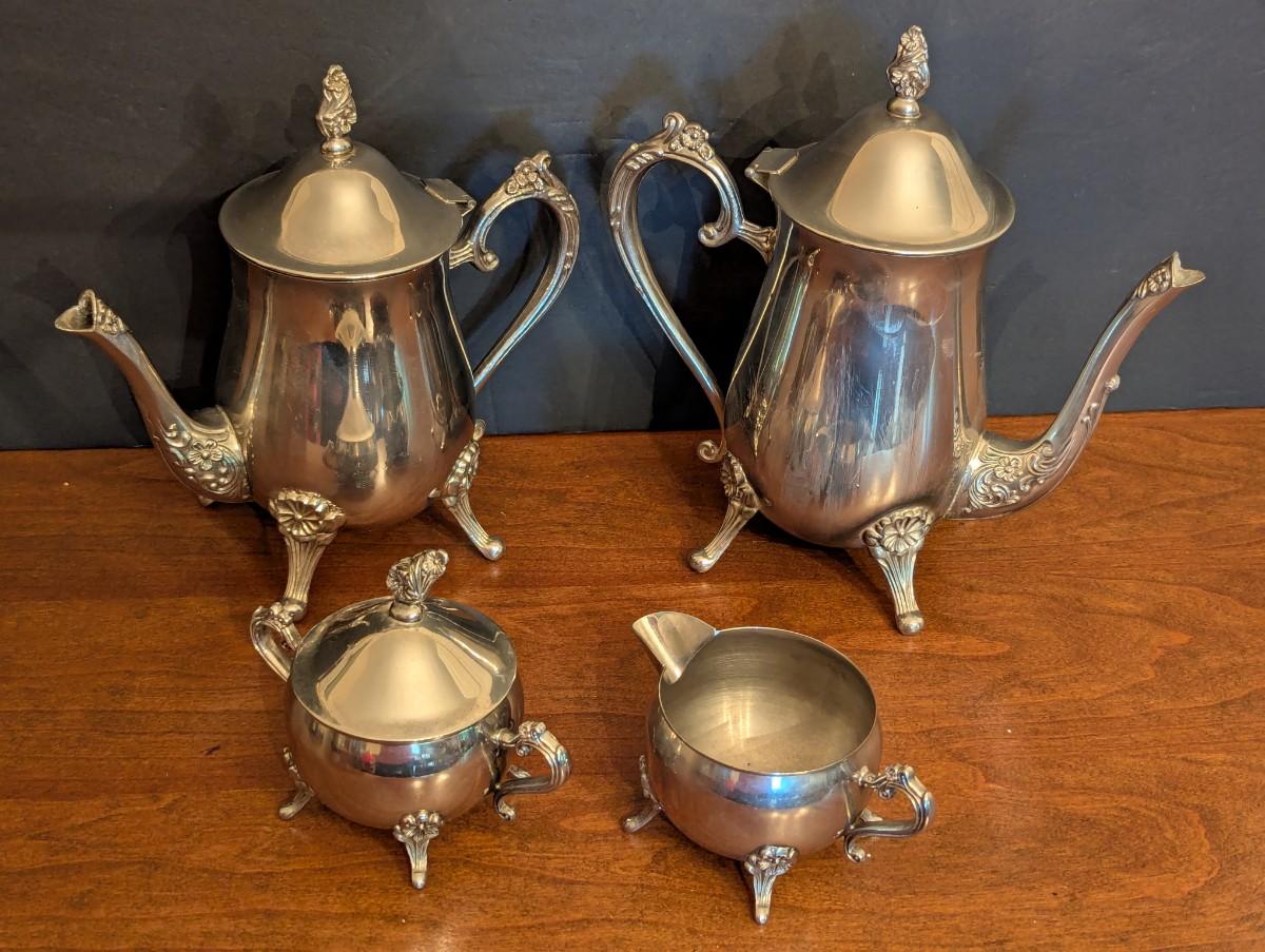 Antique Silver Plated Teapots Creamer & Sugar Servers (DR)