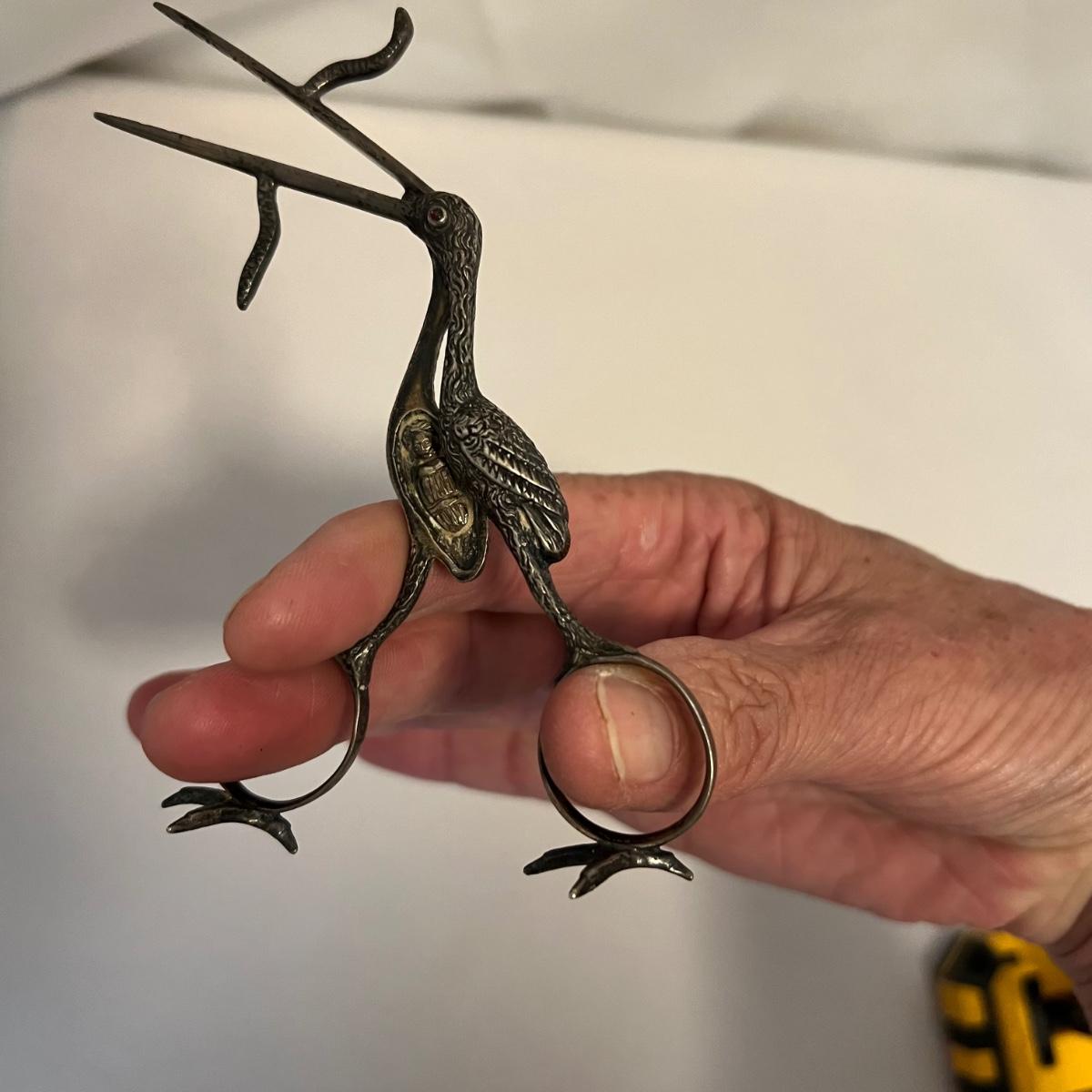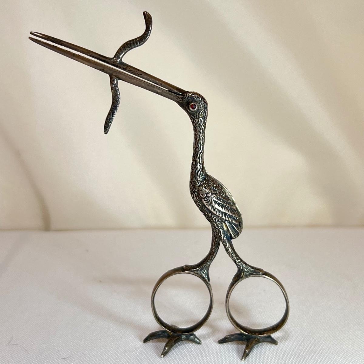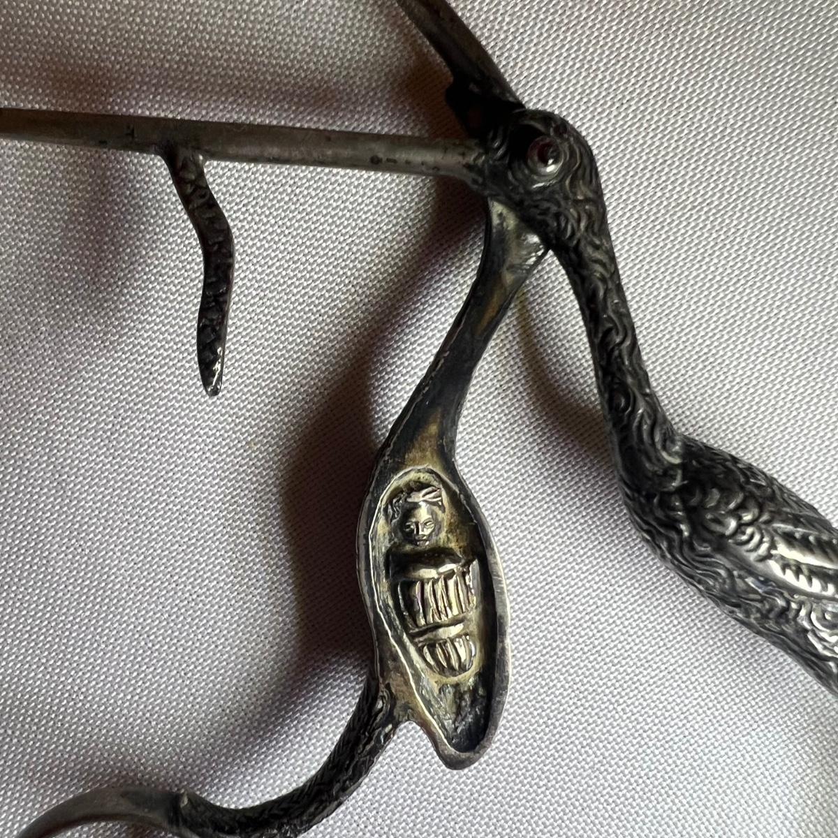 Midwife's Antique Sterling Silver Stork Tongs (LR-RG)