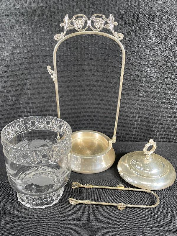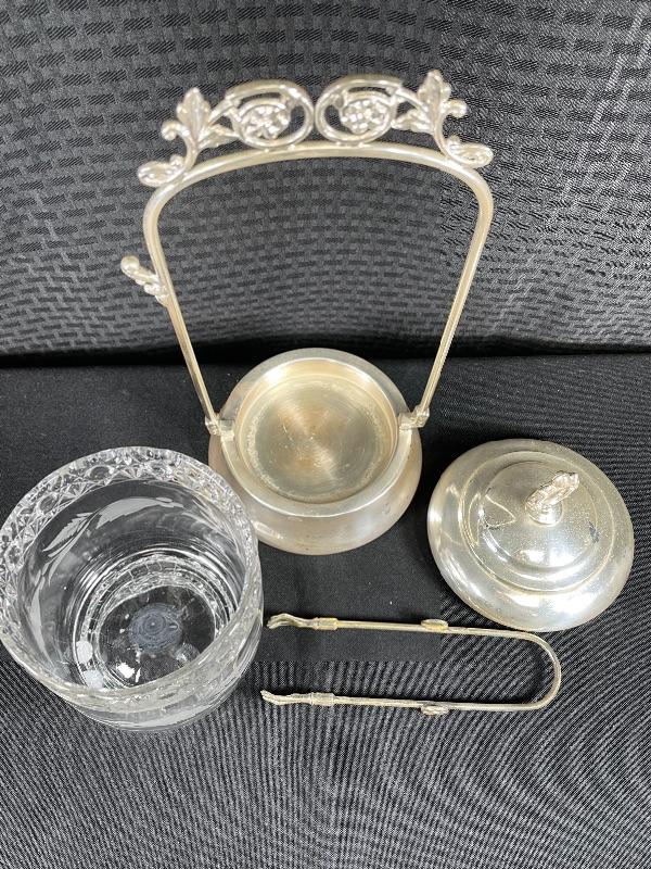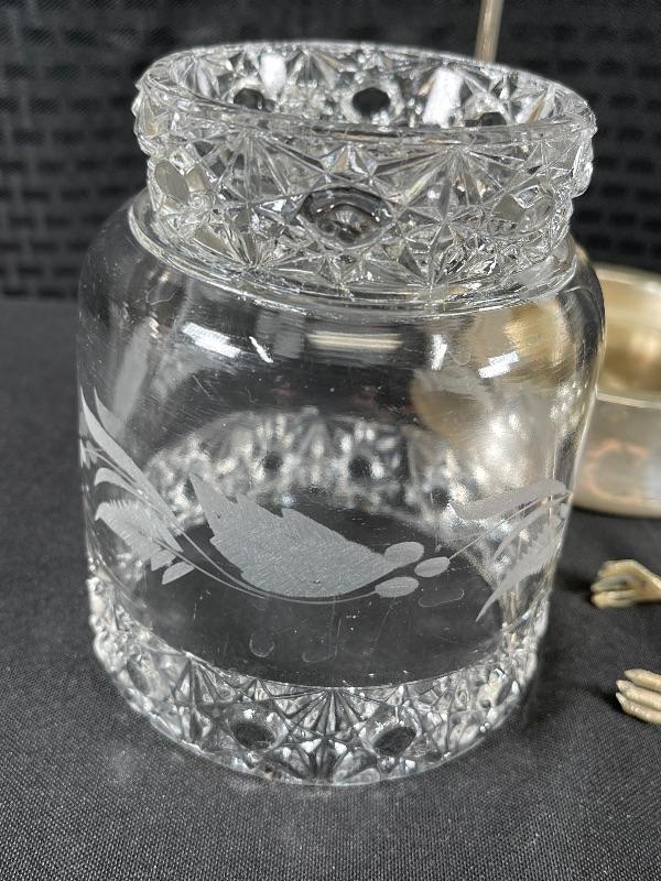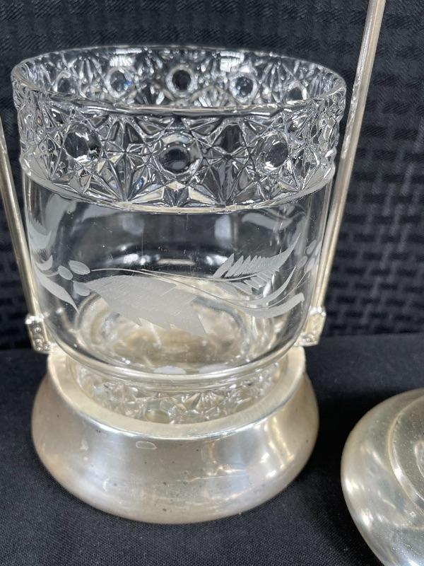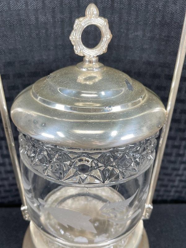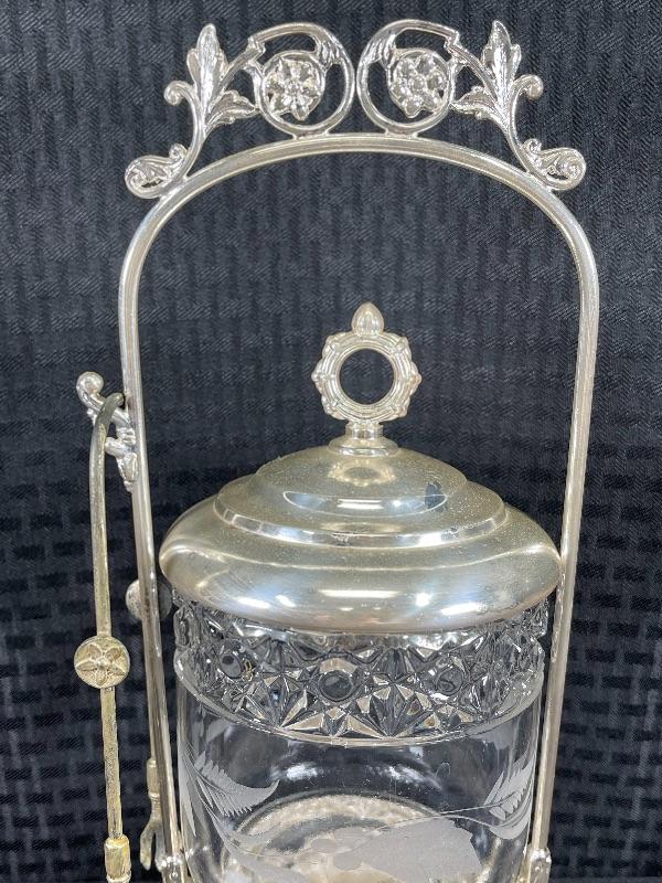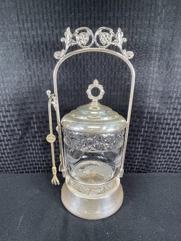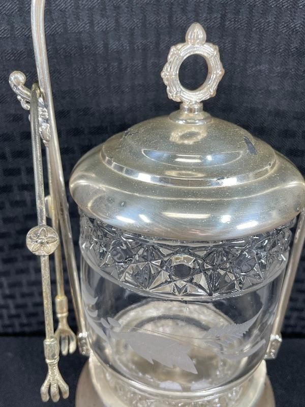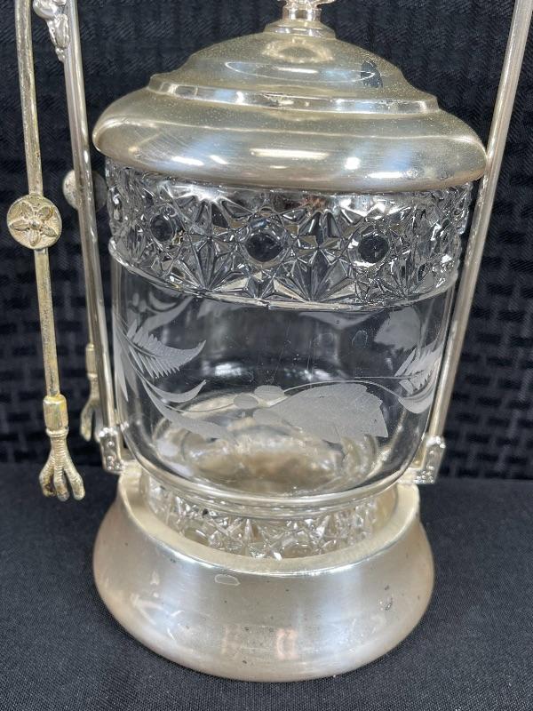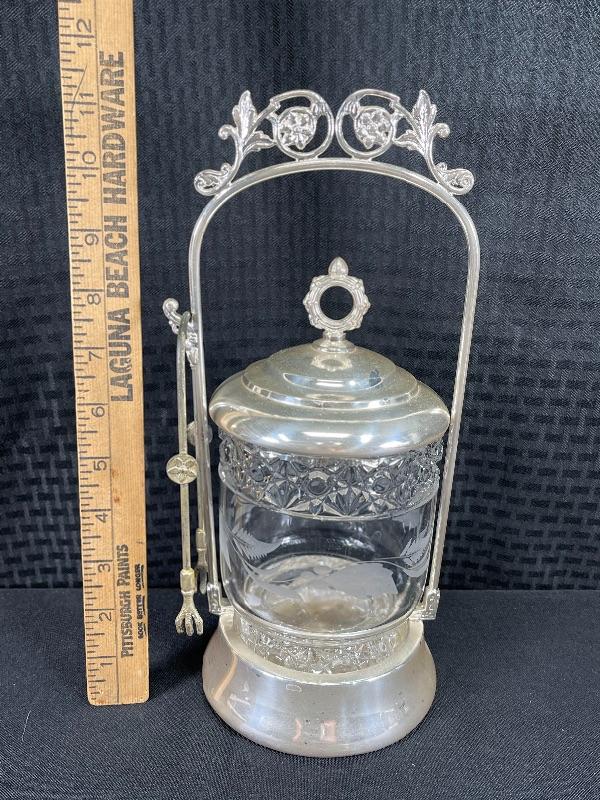 Antique Silverplate Castor Pickle Olive Condiment Jar with Tongs