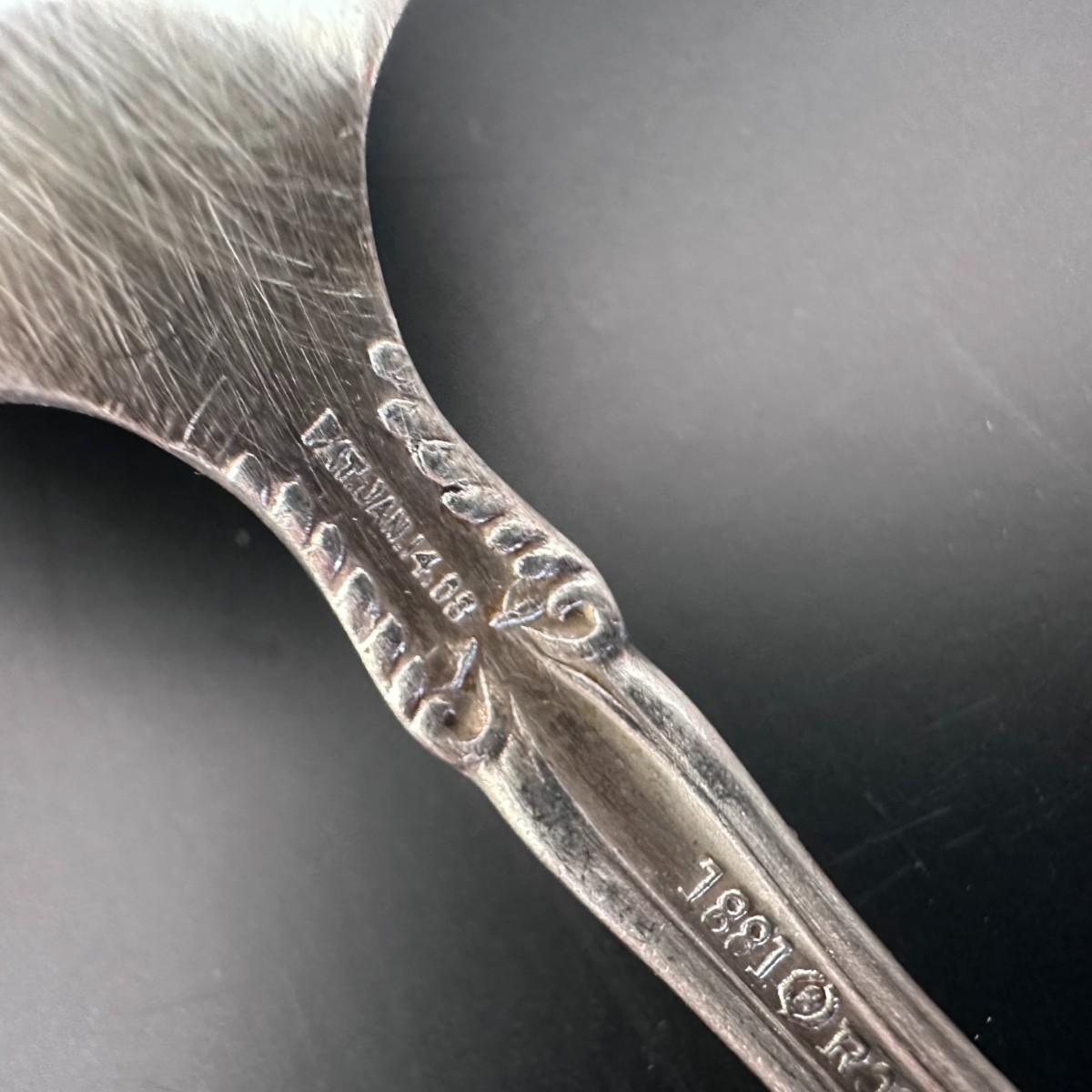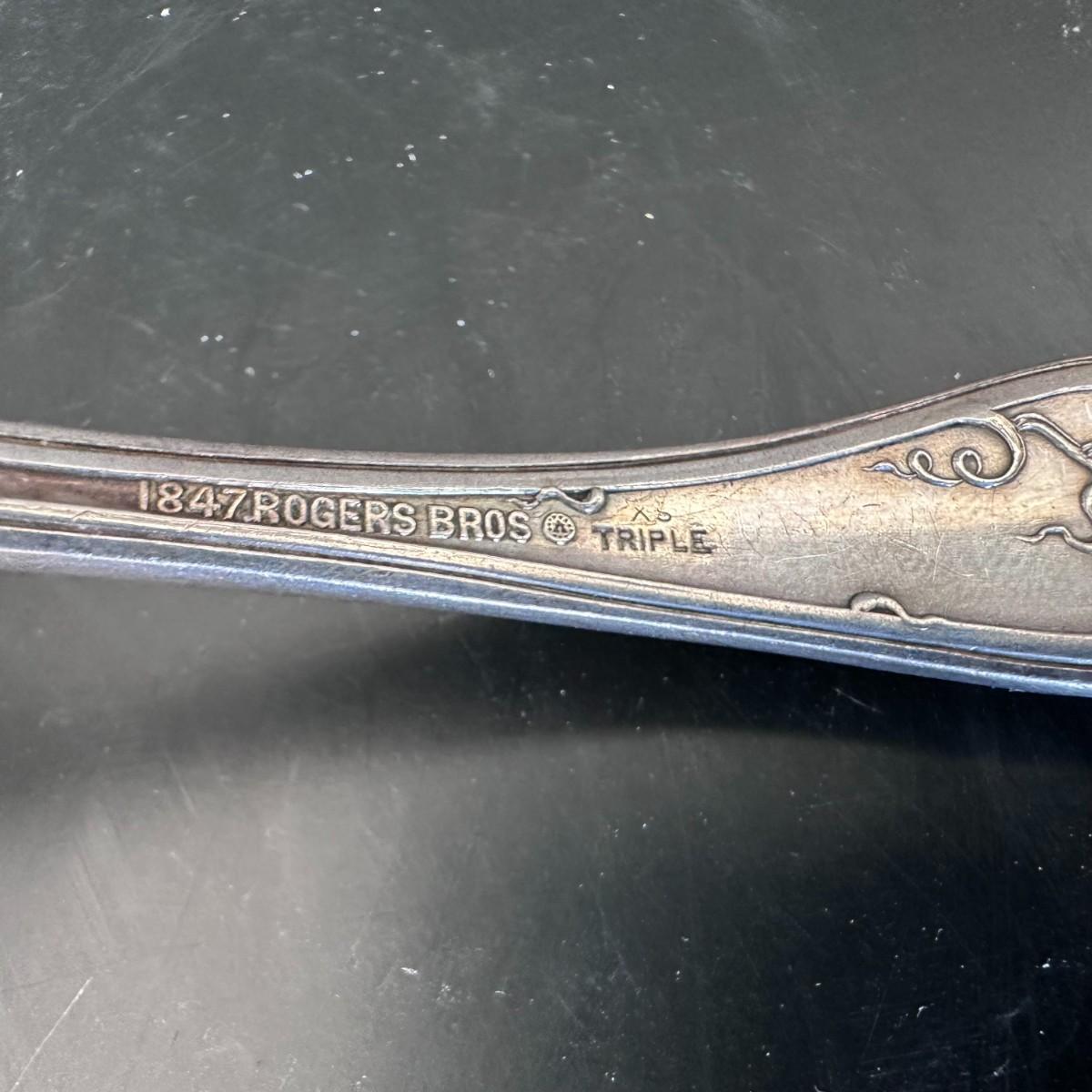 Silverplate, meaning a base metal is coated with a layer of silver.