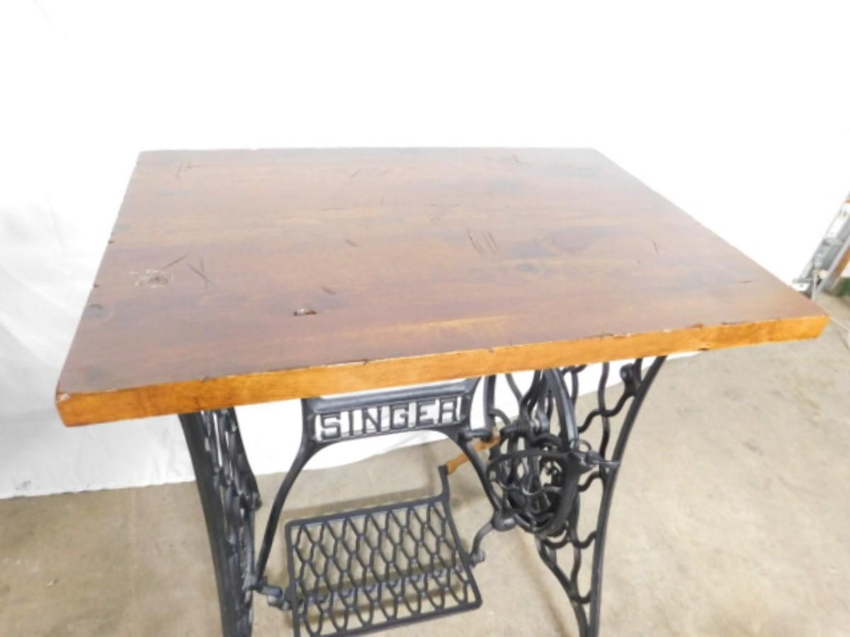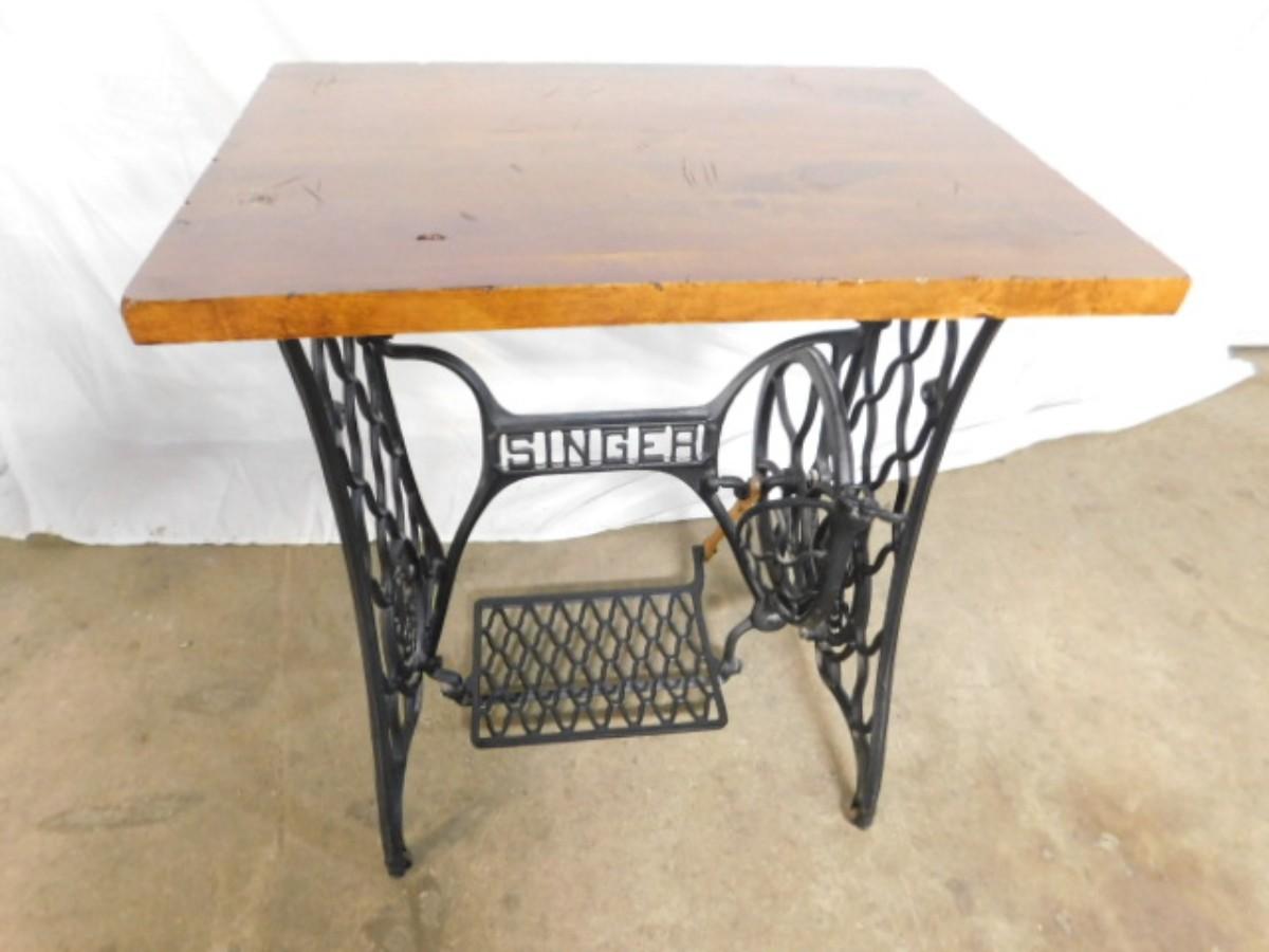Antique Singer Cast Treadle Base with Solid Wood Tabletop