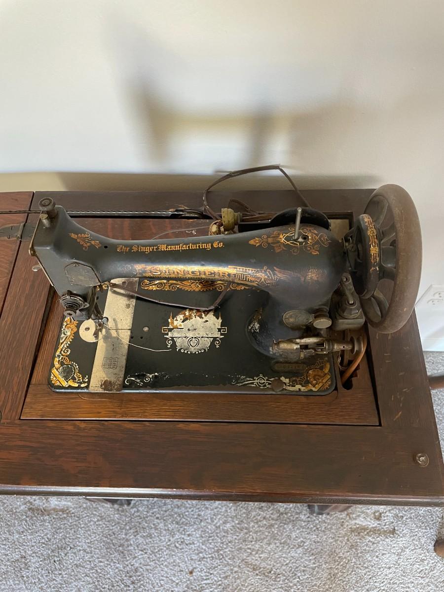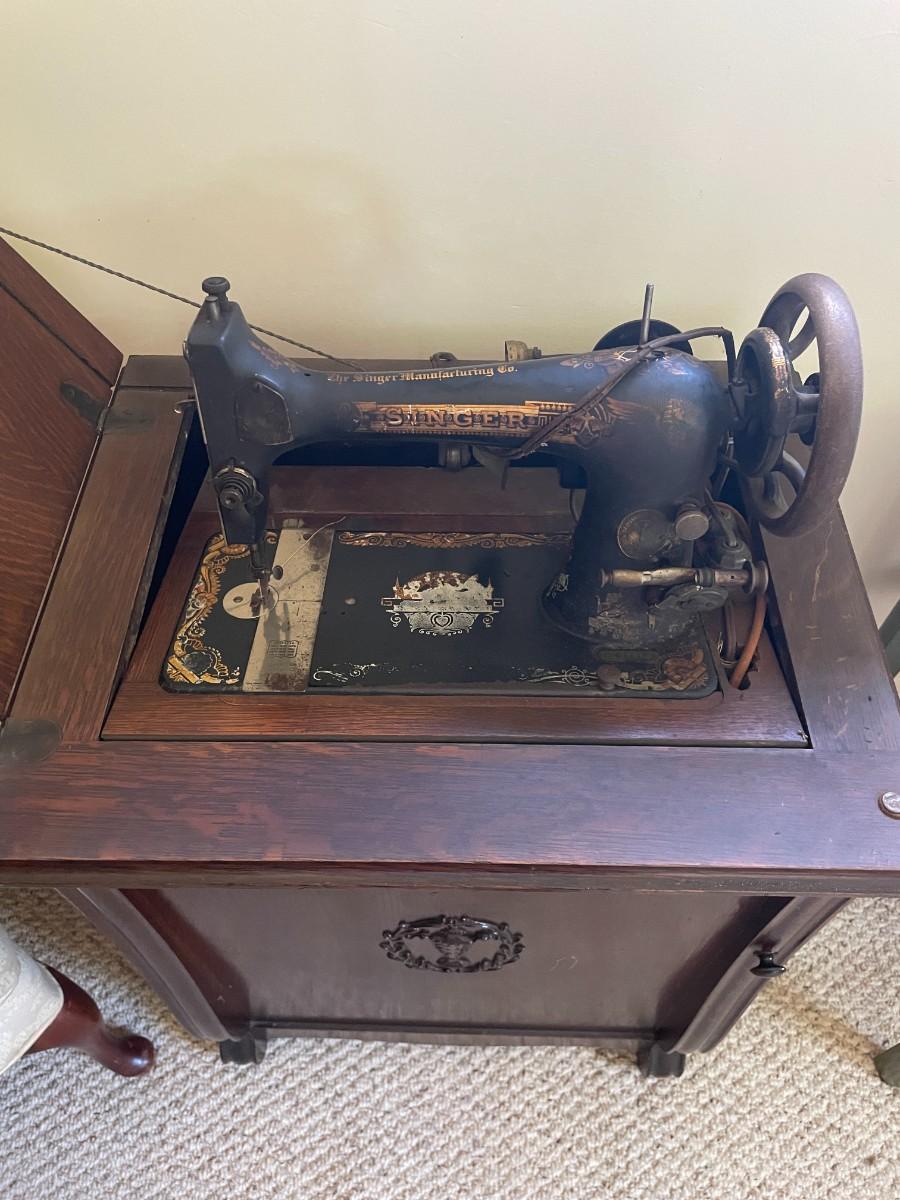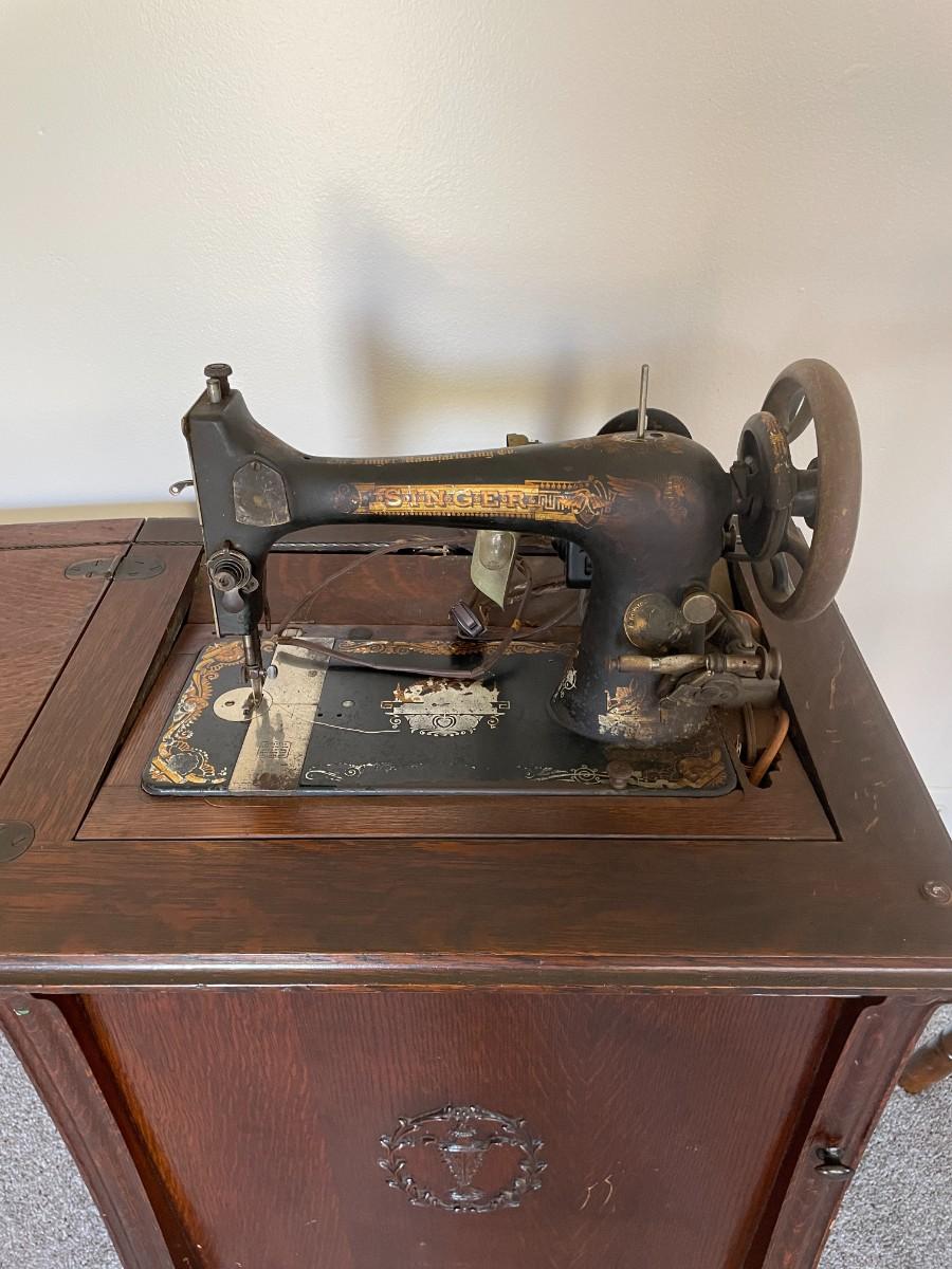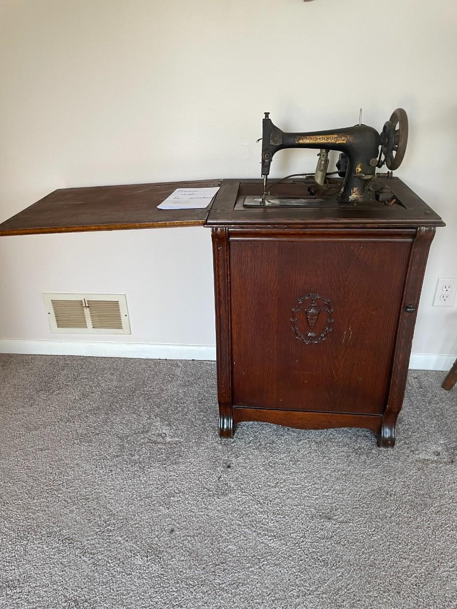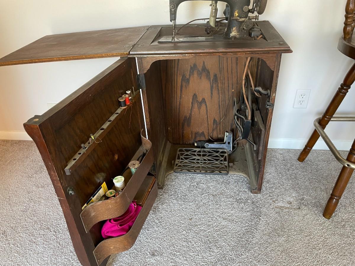 Antique Singer Manual Pedal Sewing Machine and Cabinet