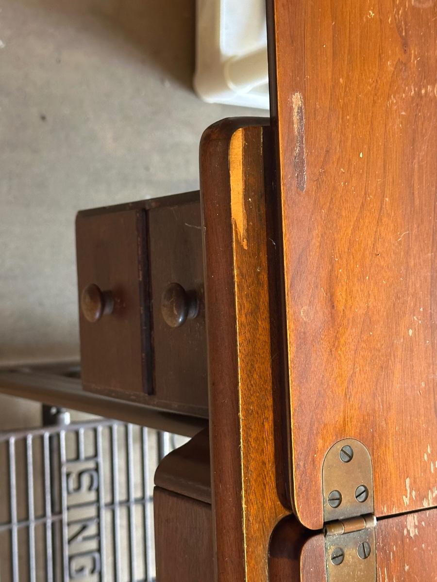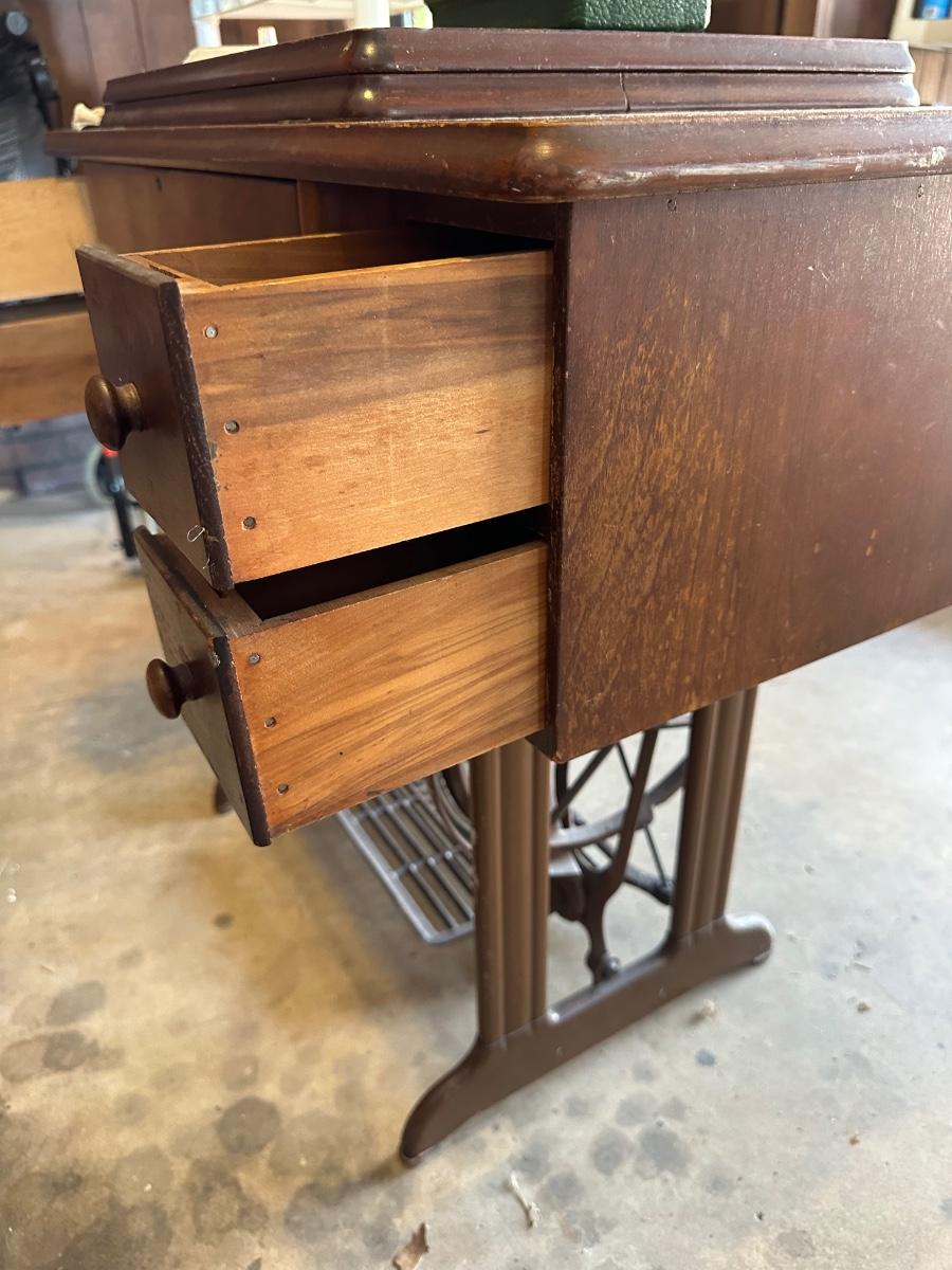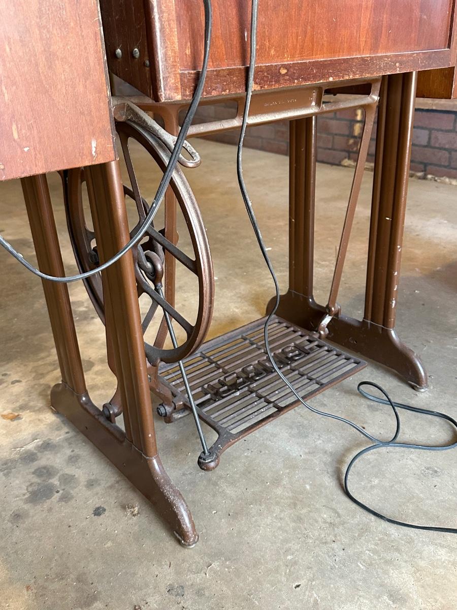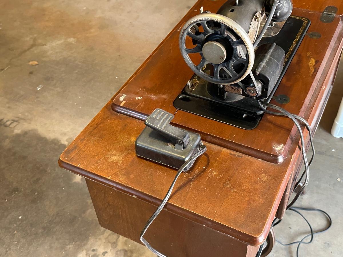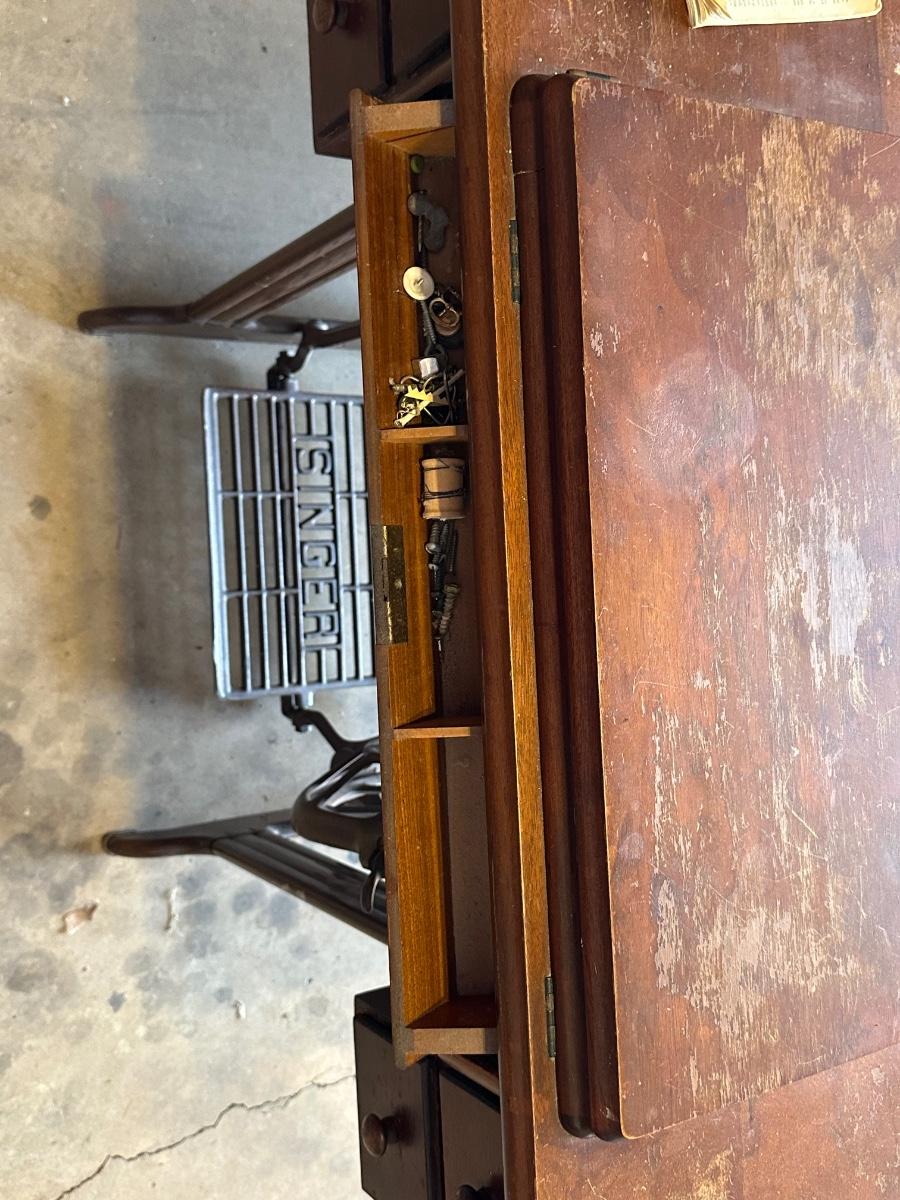 Antique Singer Sewing Cabinet with Sewing Machine, Button Holder and Thread!