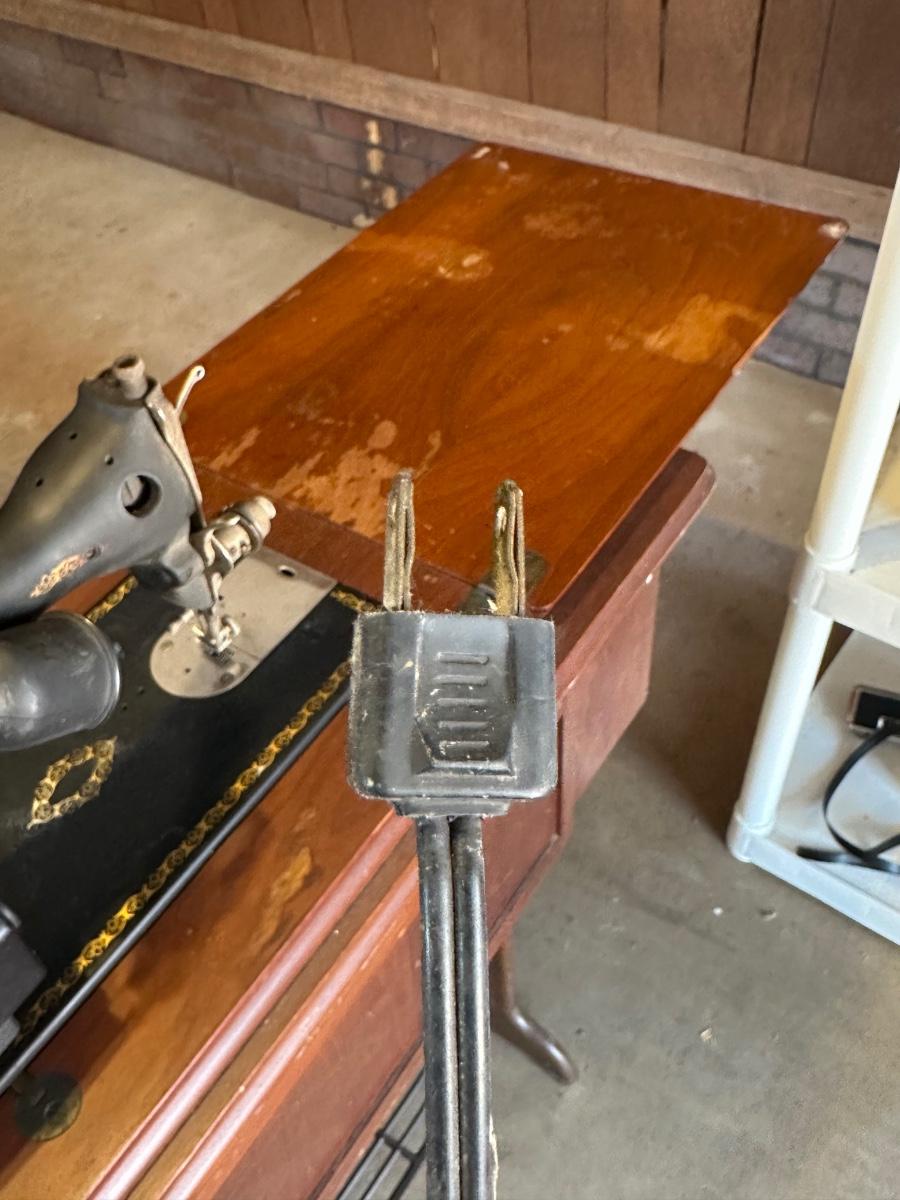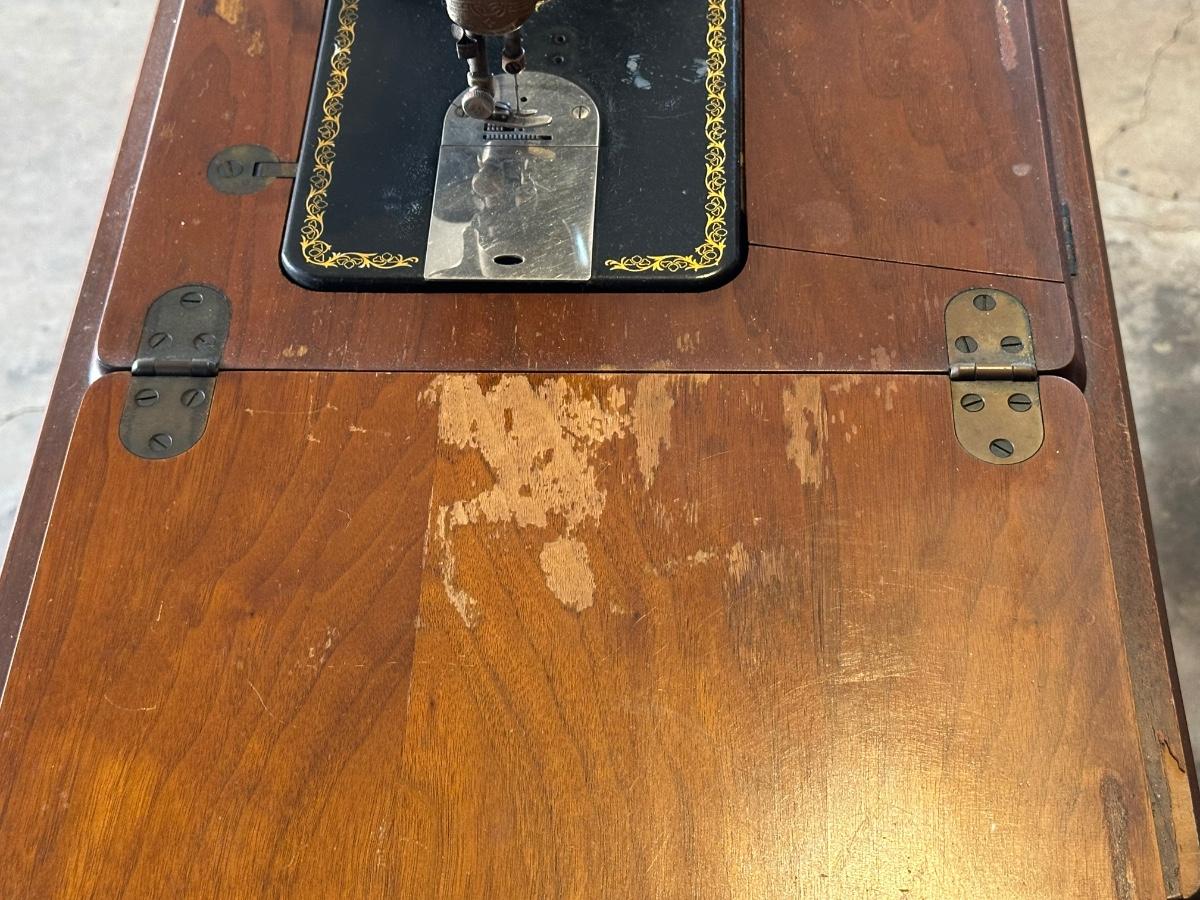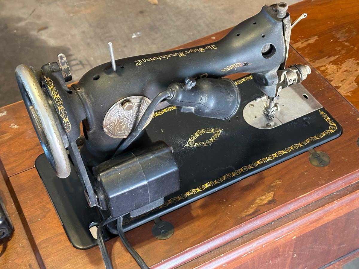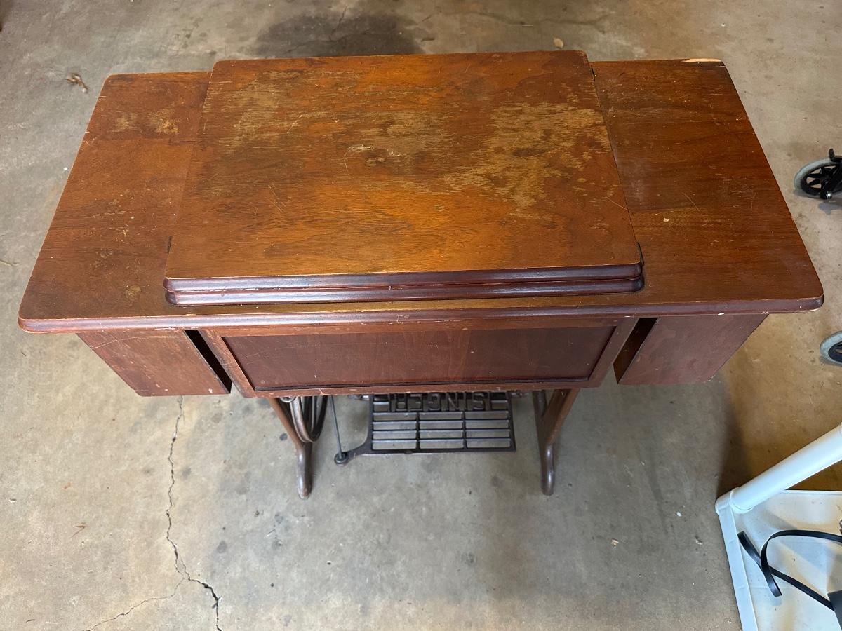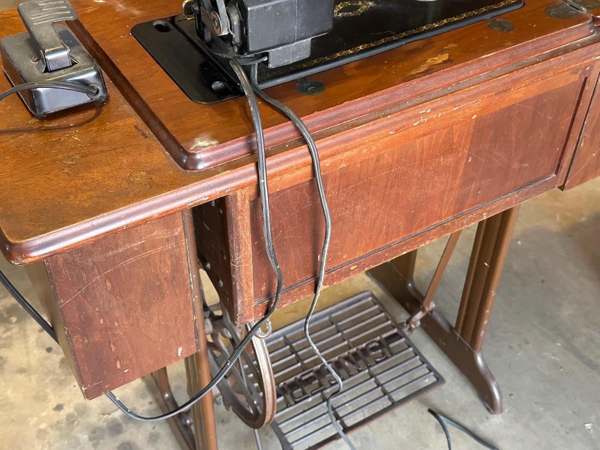 Antique Singer Sewing Cabinet with Sewing Machine, Button Holder and Thread!