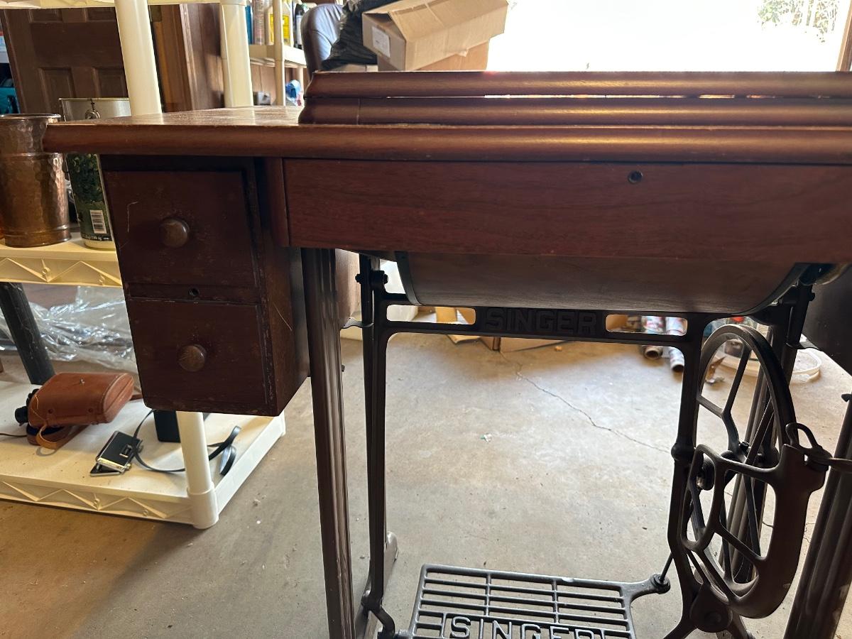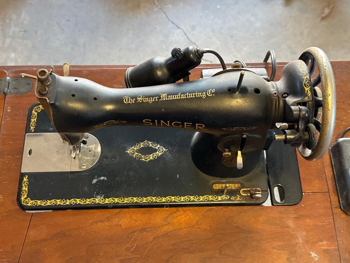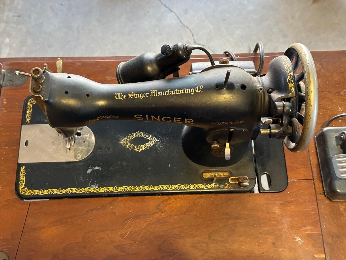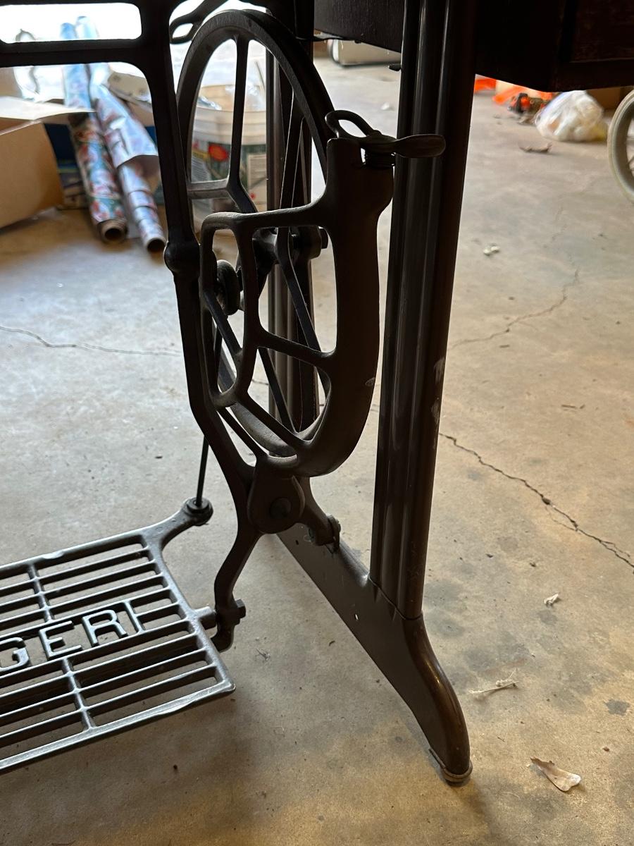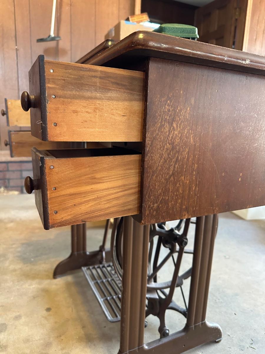 Antique Singer Sewing Cabinet with Sewing Machine, Button Holder and Thread!