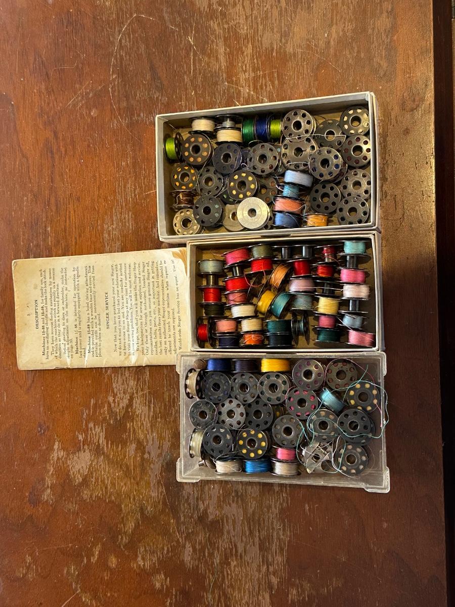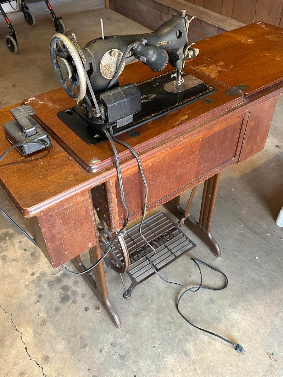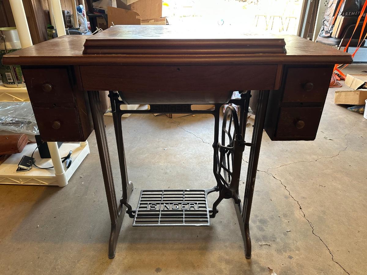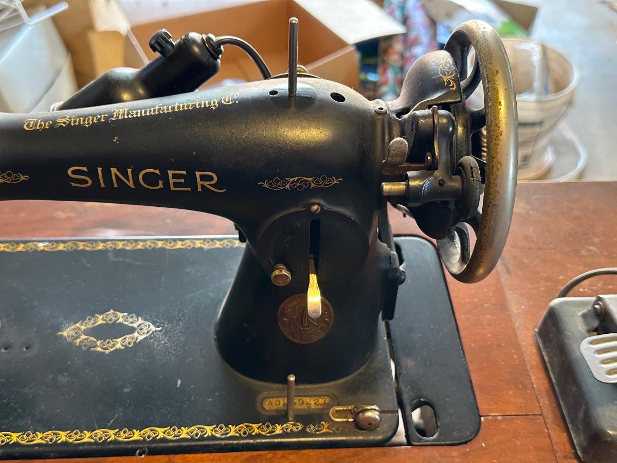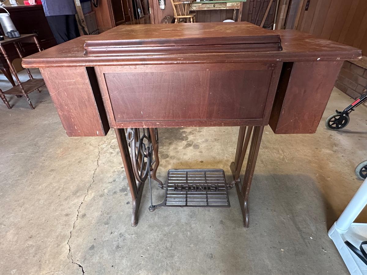 Antique Singer Sewing Cabinet with Sewing Machine, Button Holder and Thread!
