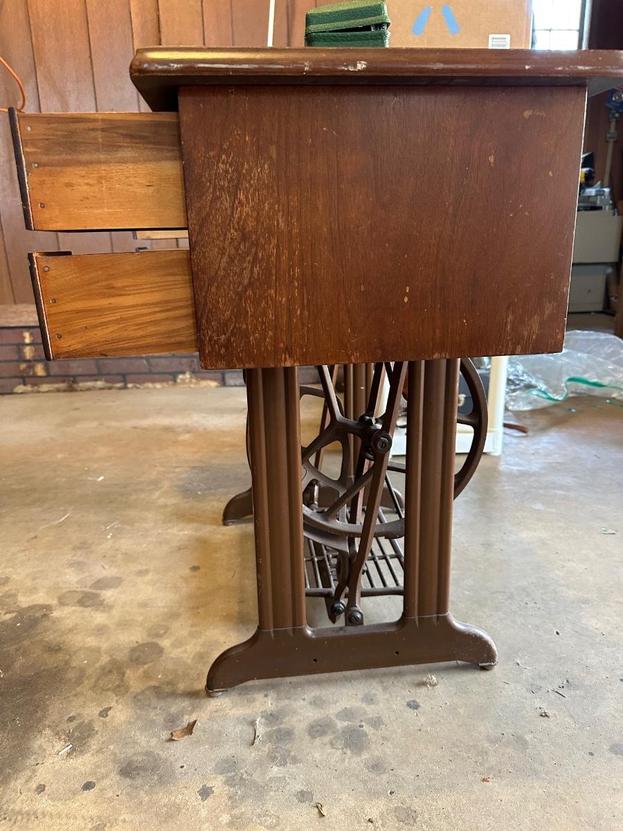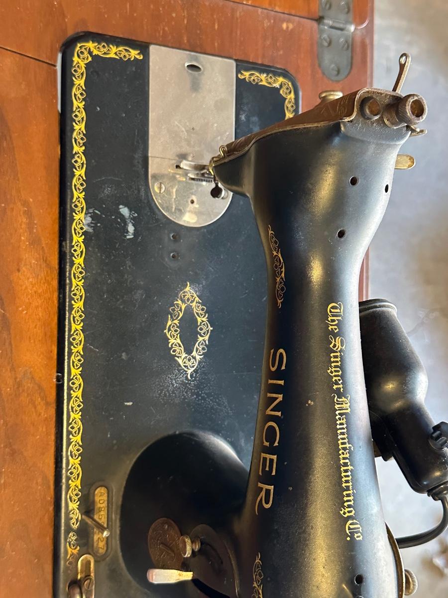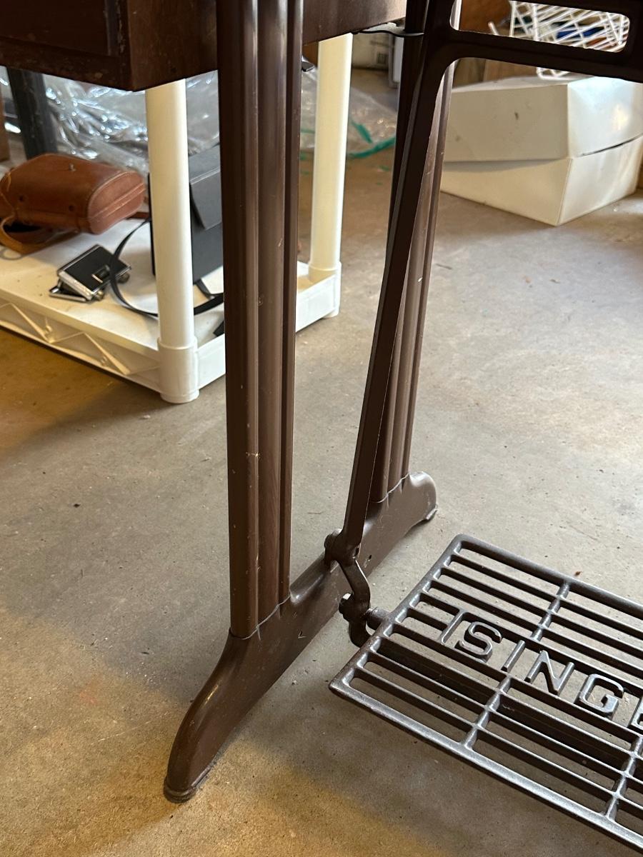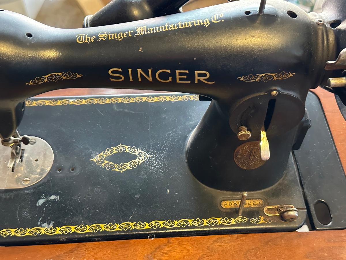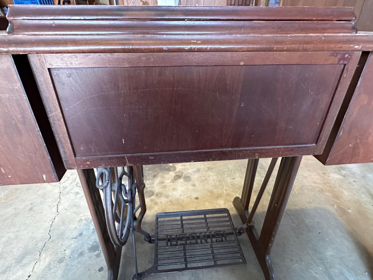 Antique Singer Sewing Cabinet with Sewing Machine, Button Holder and Thread!