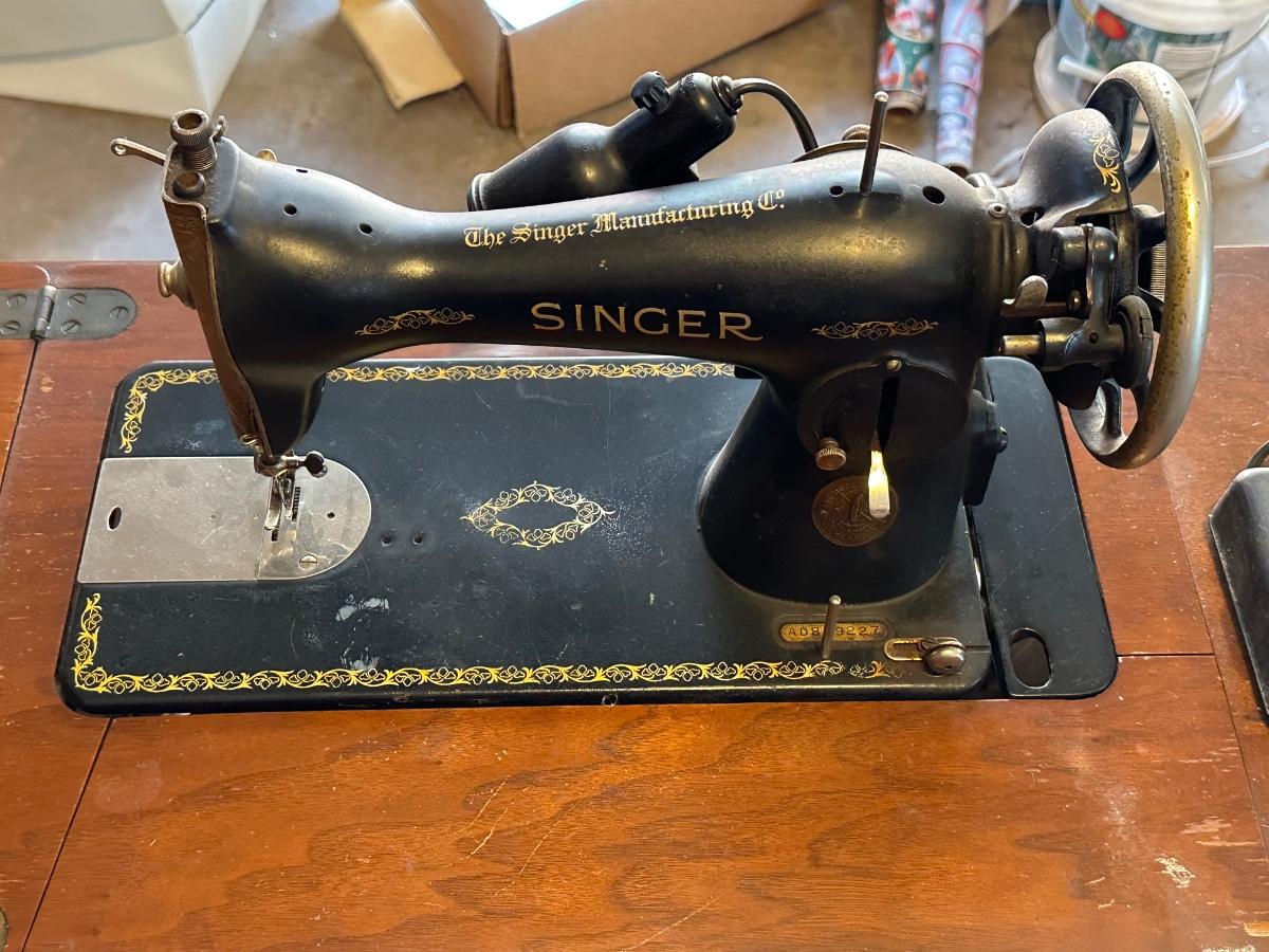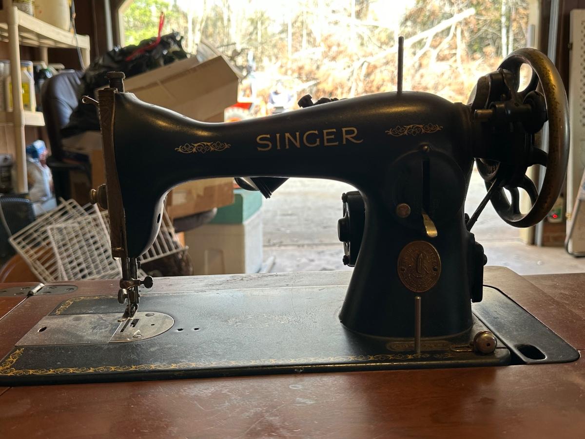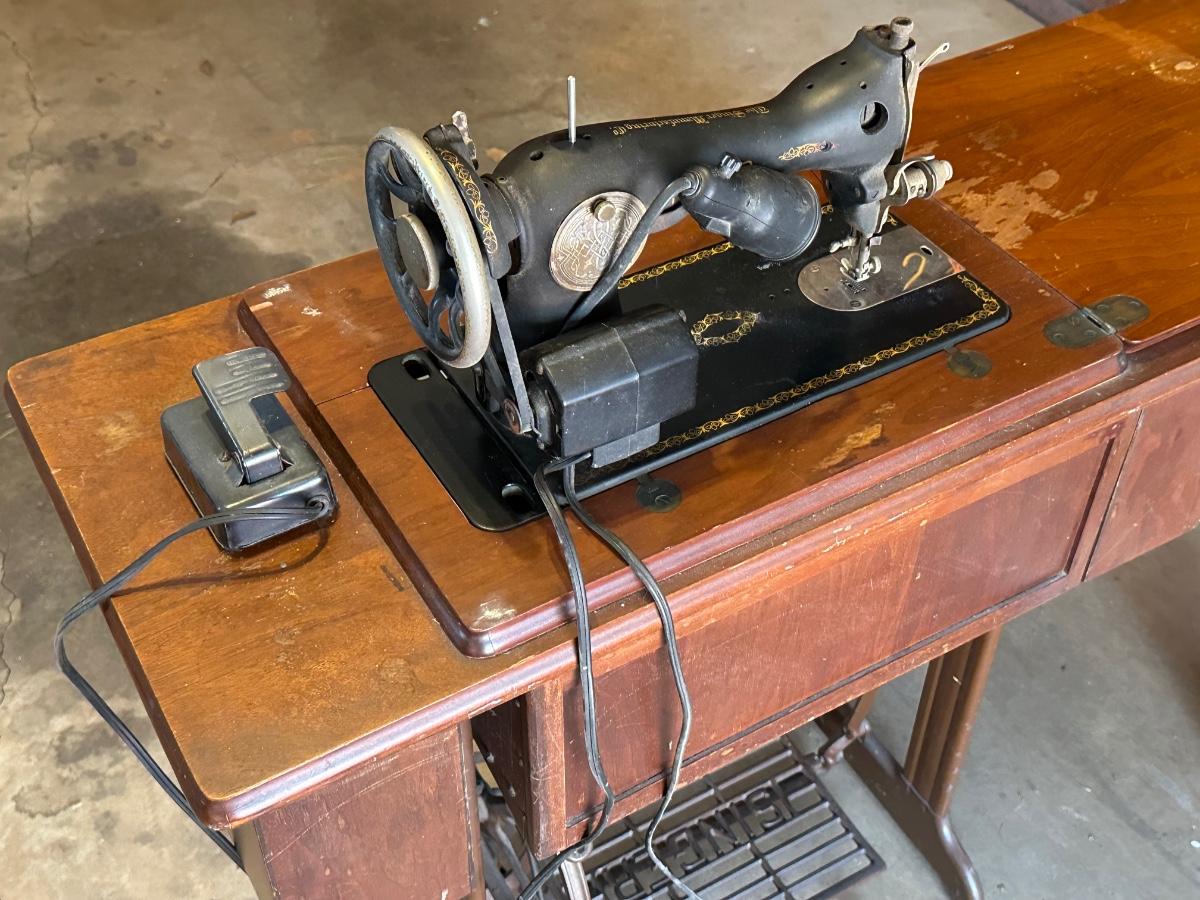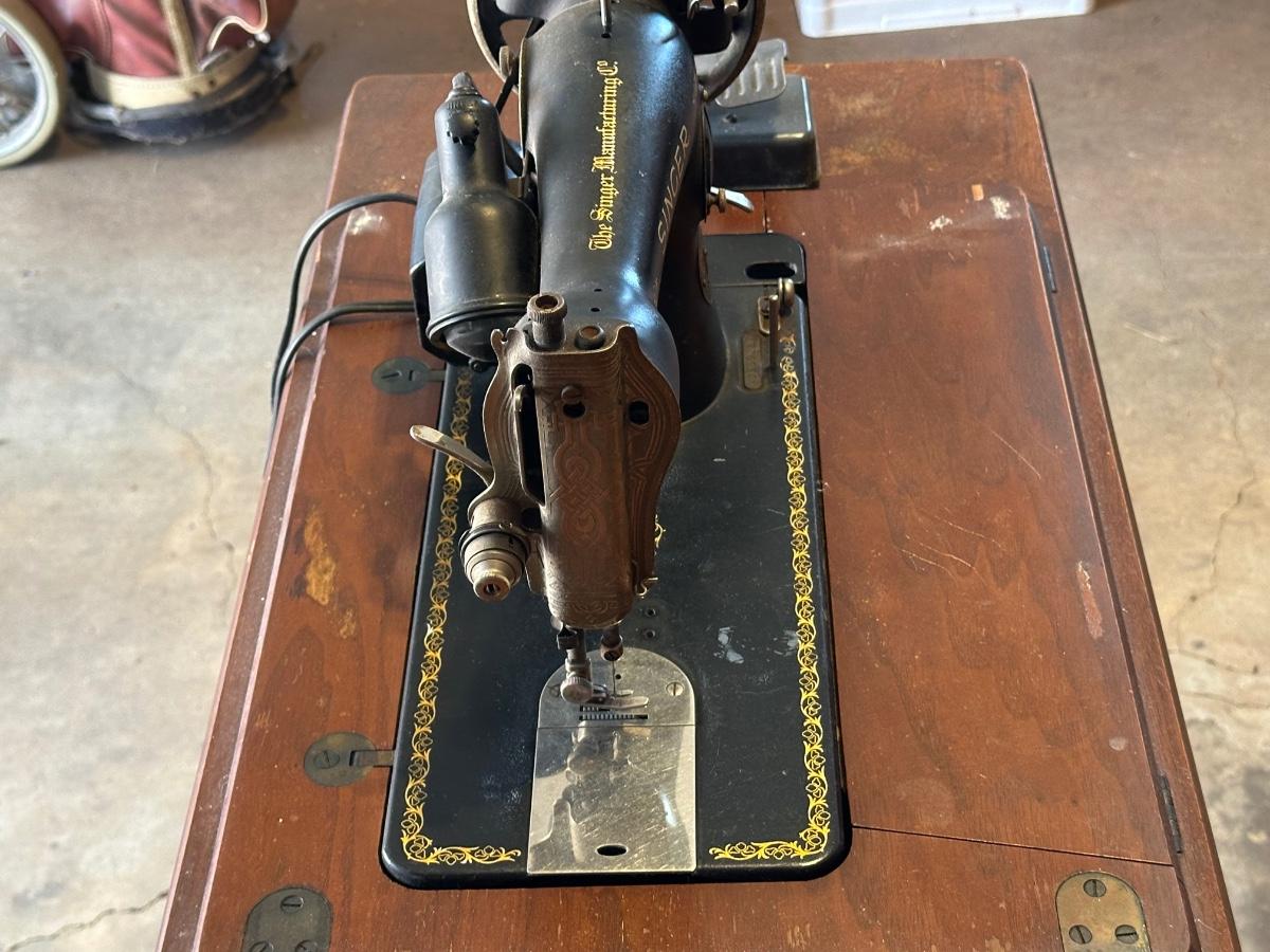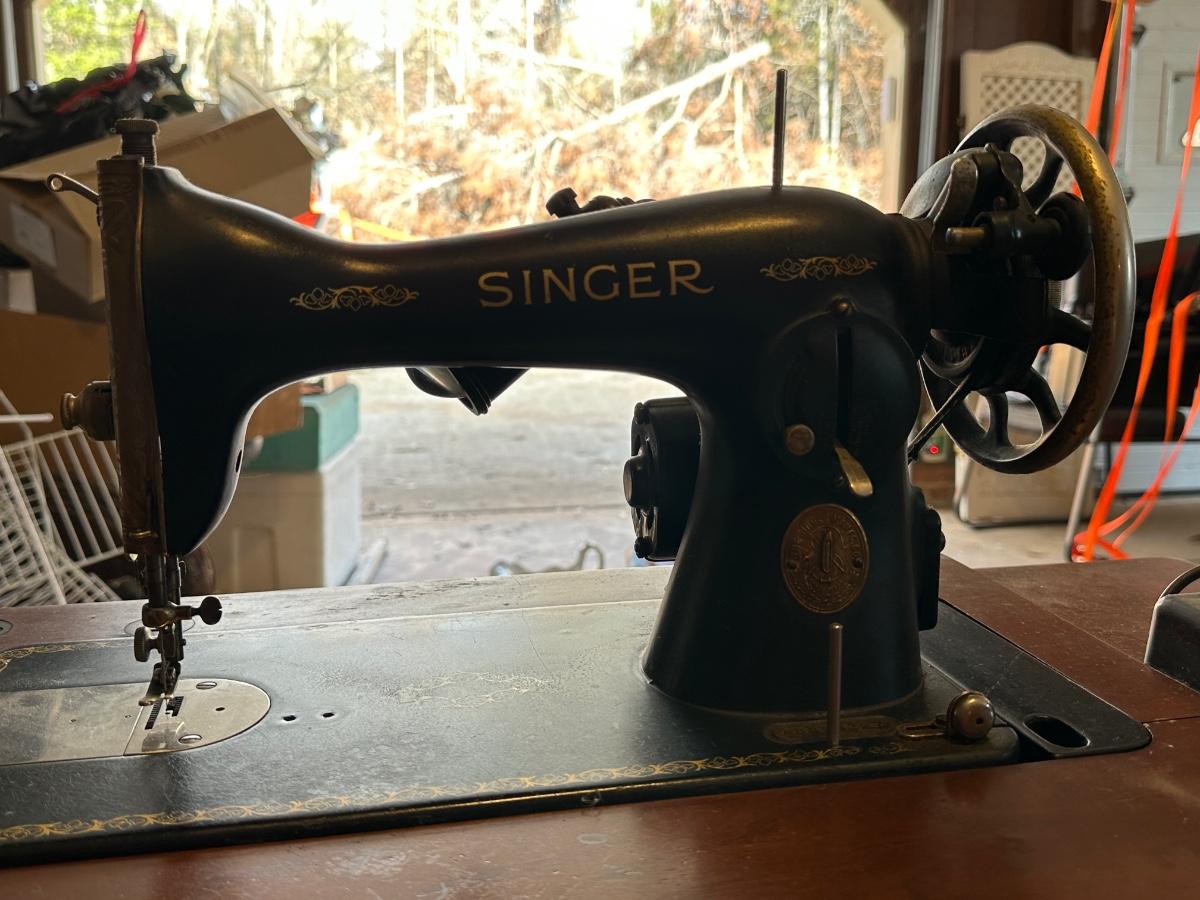 Antique Singer Sewing Cabinet with Sewing Machine, Button Holder and Thread!