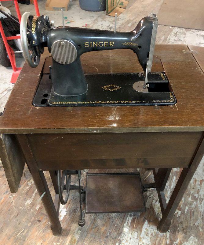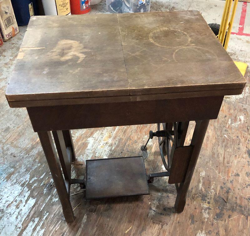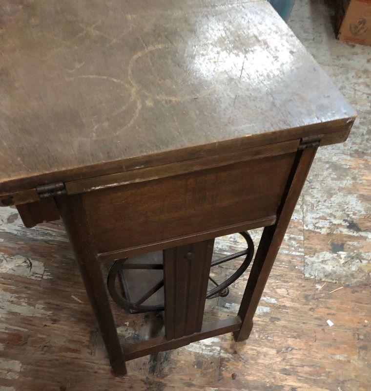 Here is an old treadle type Singer sewing machine in an Arts & Crafts era table...Used condition...