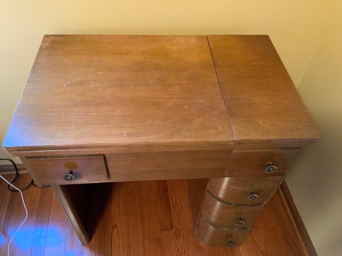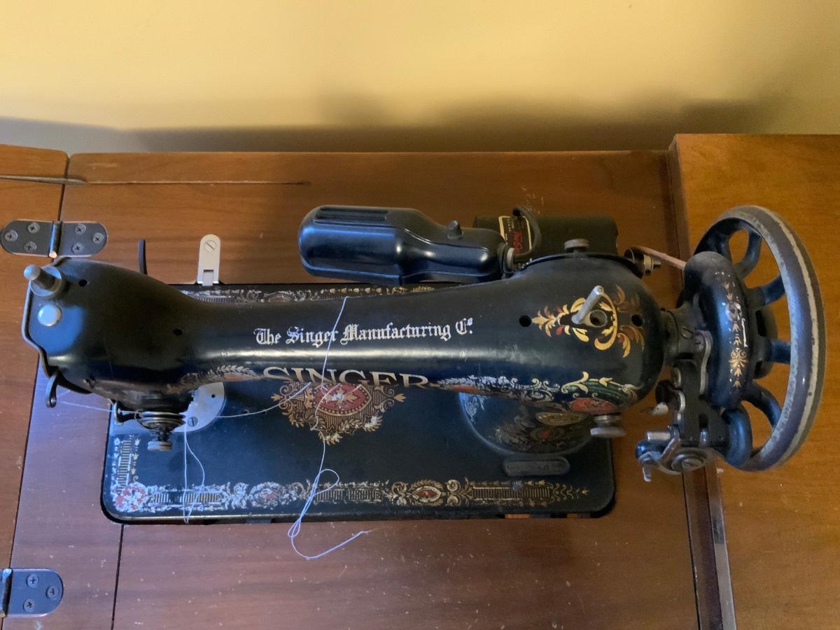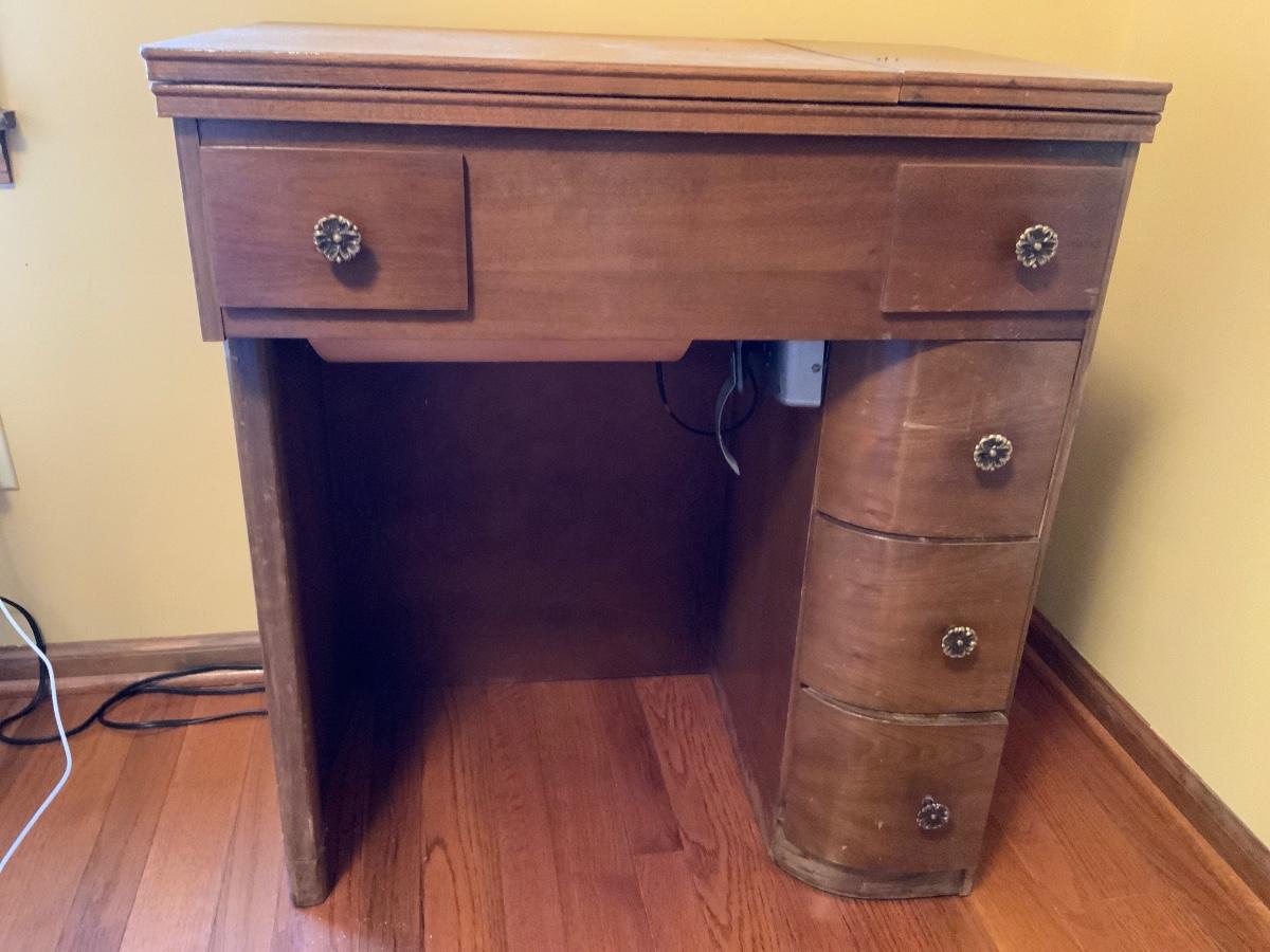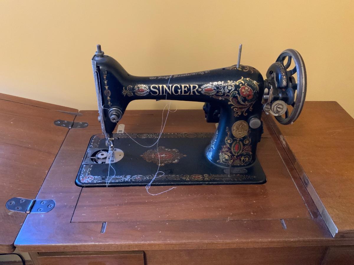Beautiful Singer Sewing Machine and Cabinet. Comes with a box Accessories (not verified if they are for this sewing machine). Please see pics for measurements and condition