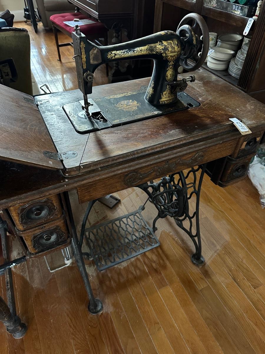 ANTIQUE SINGER SEWING MACHINE IN CABINET