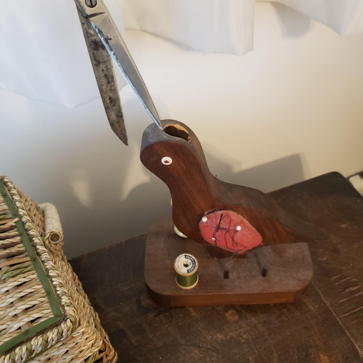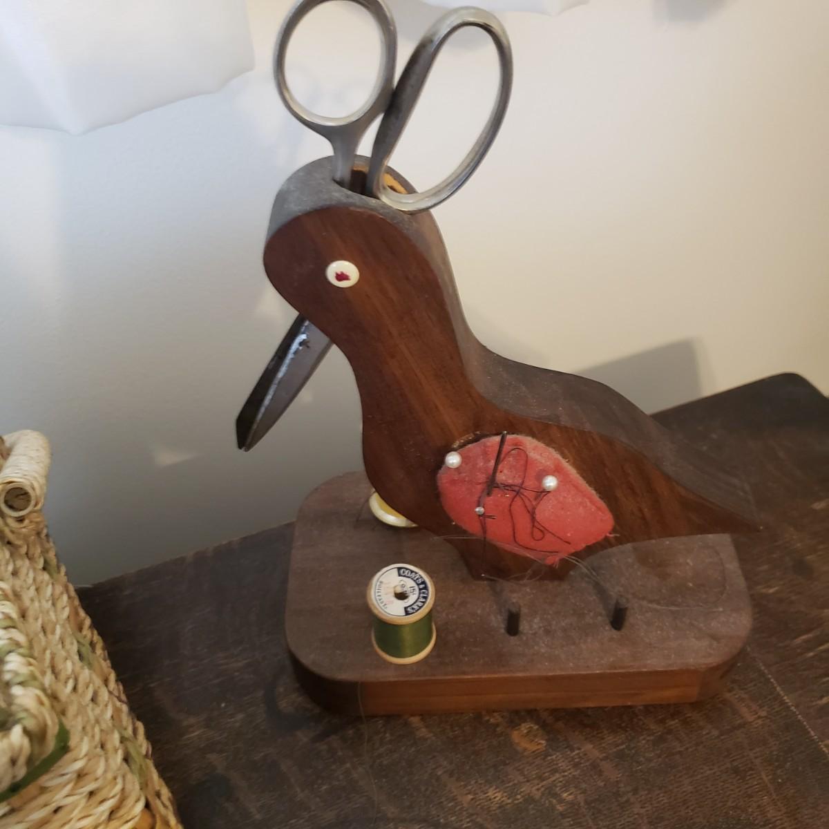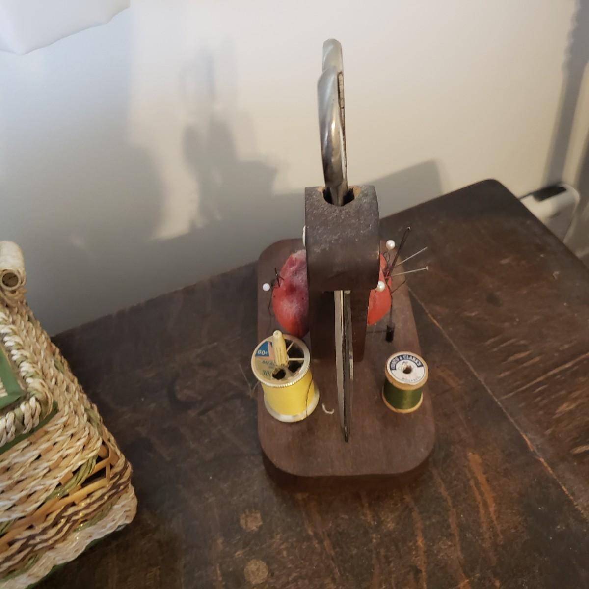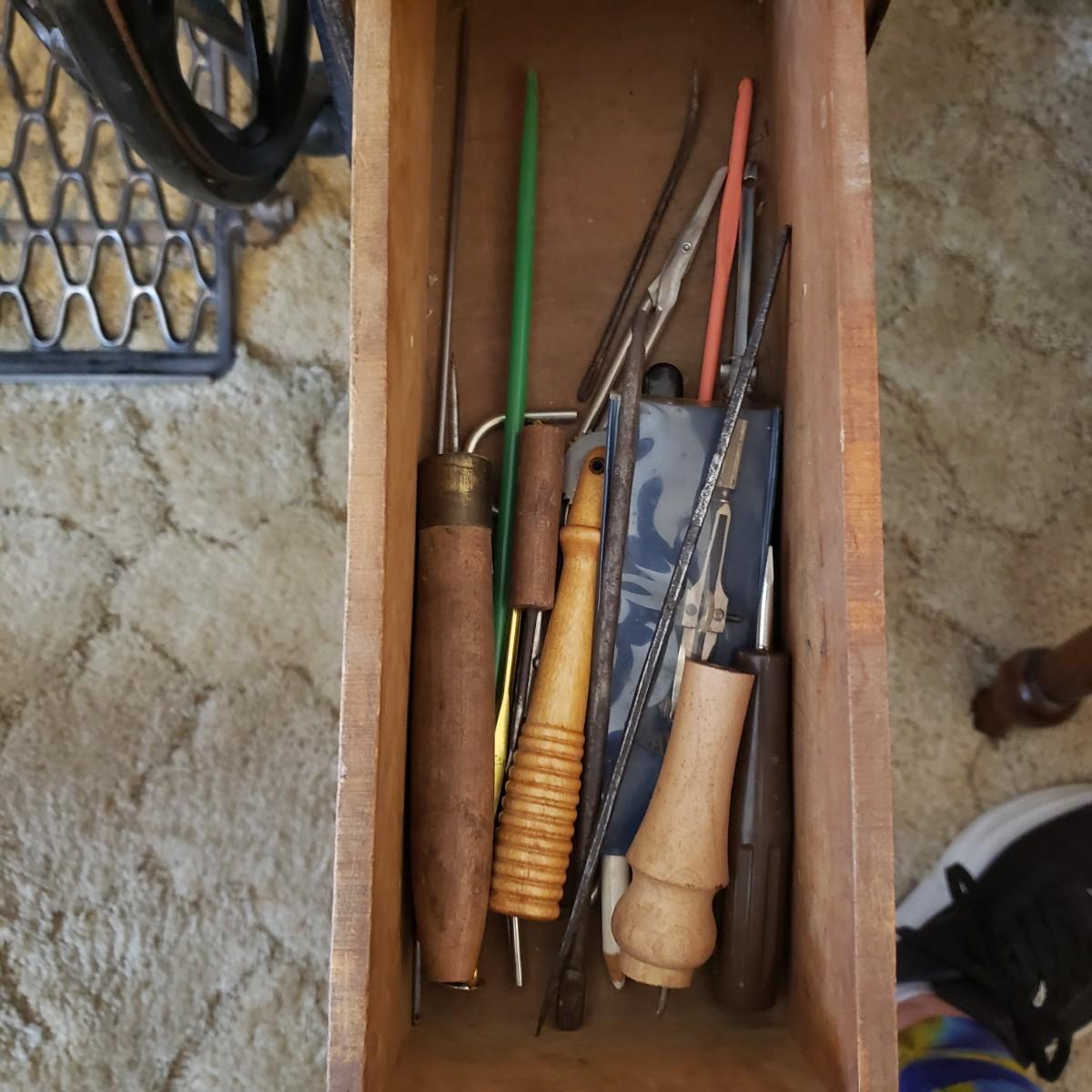 This is a Singer sewing machine in cabinet. The machine started moving when tested. The base is cast iron and the wood finish shows wear, yet has many years left! The cabinet has seven drawers with sewing supplies, see pictures. Table comes with a sewing basket and wooden bird sewing helper. Table measures 34" x 16" x 30"H. When the table is unfolded the top measures 46". At 99 years old, this machine is one year short of an antique!