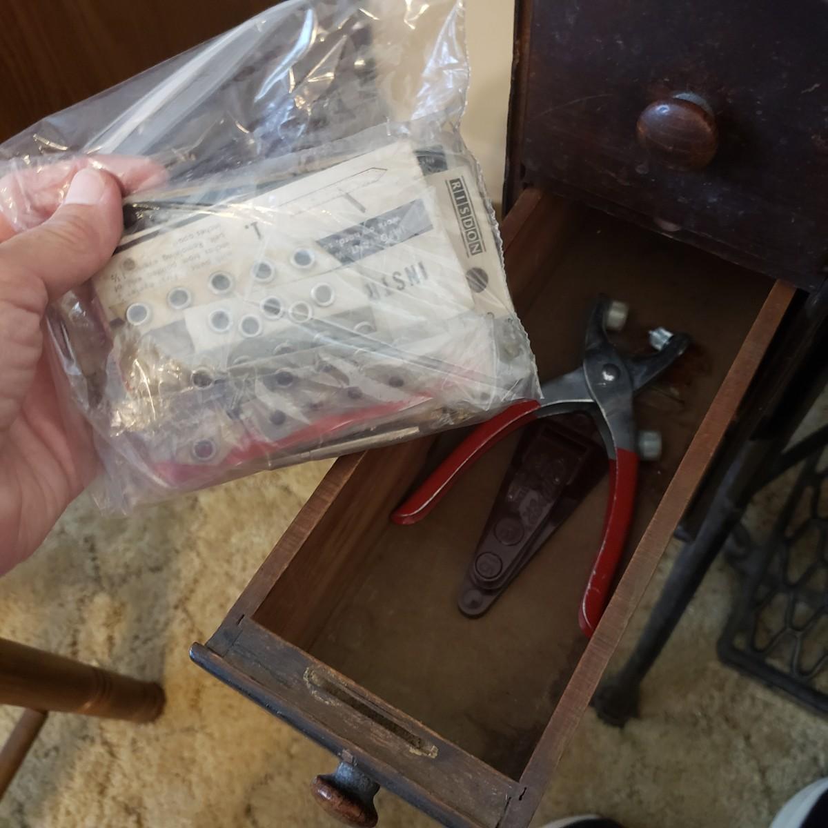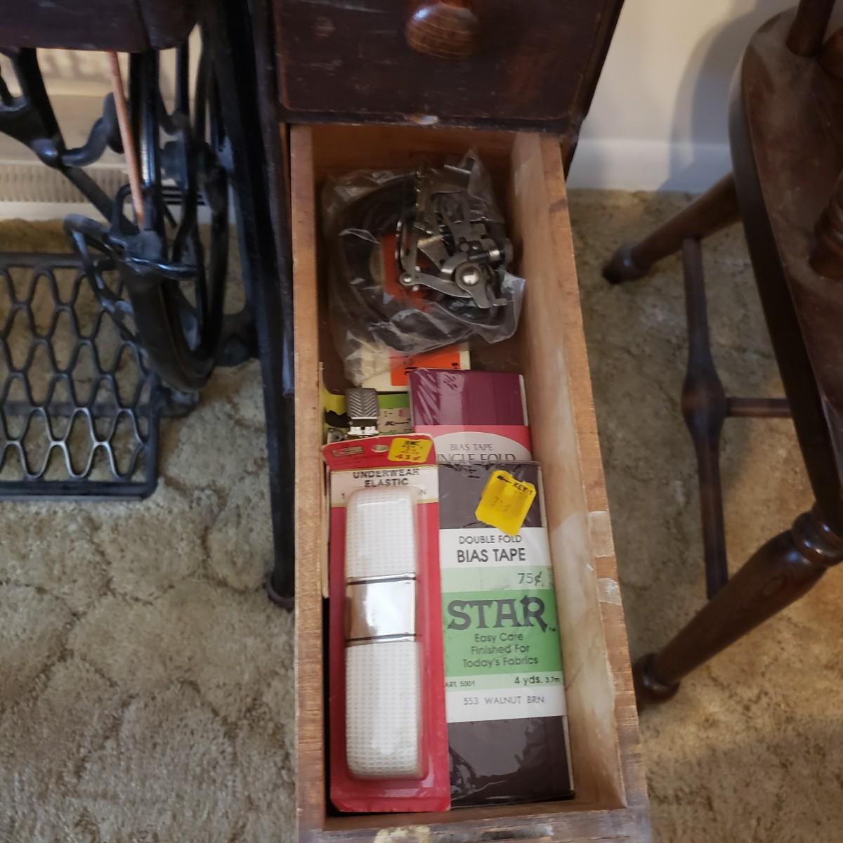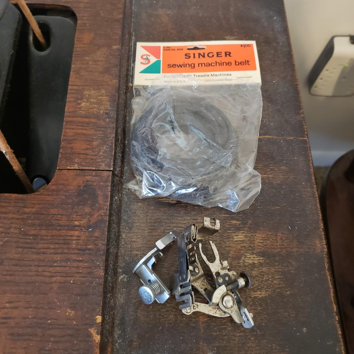 Singer Treadle Sewing Machine/Table & Sewing Accessories (B3-KD)