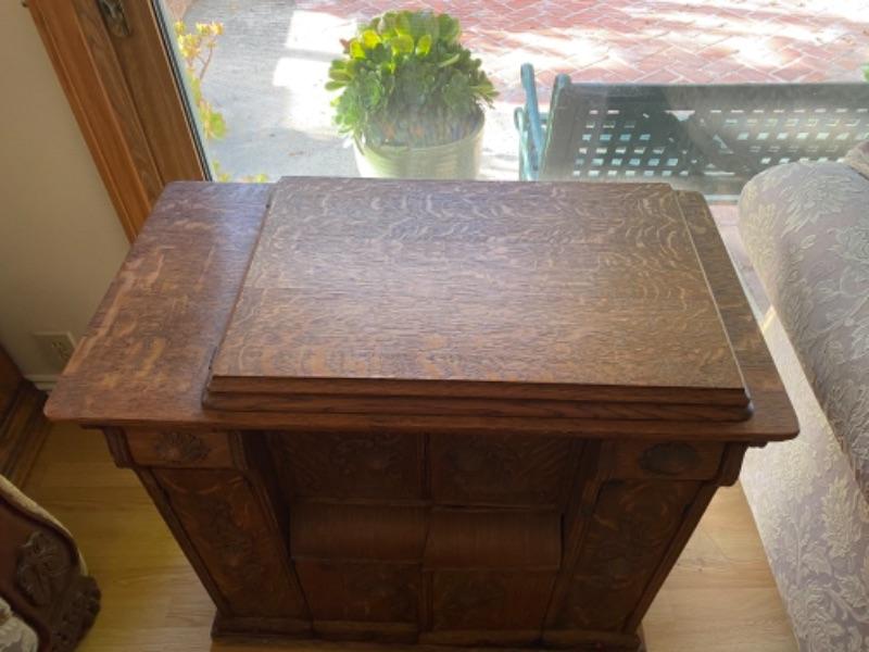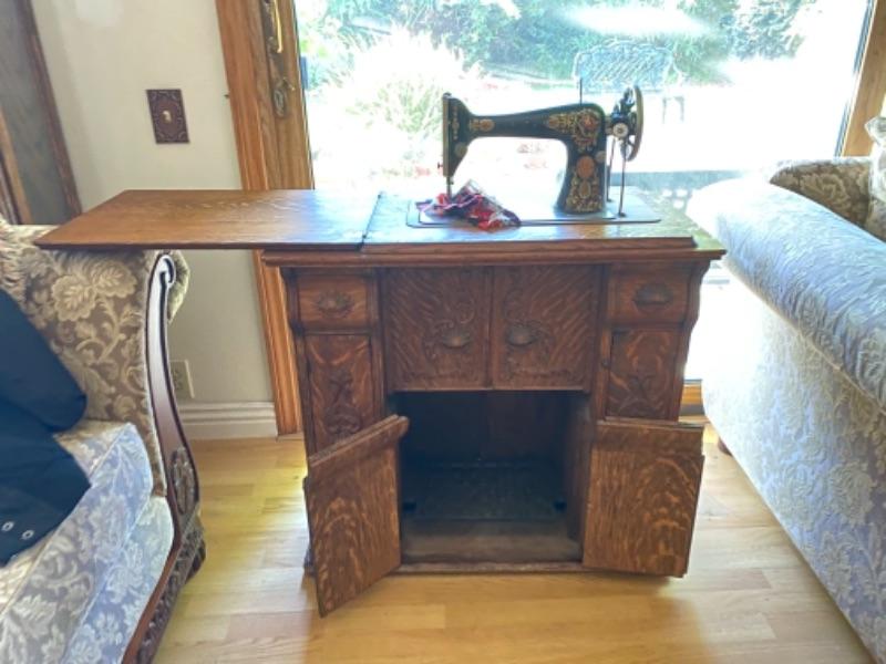 Antique Singer Sewing Machine with Fully Enclosed Treadle Cabinet