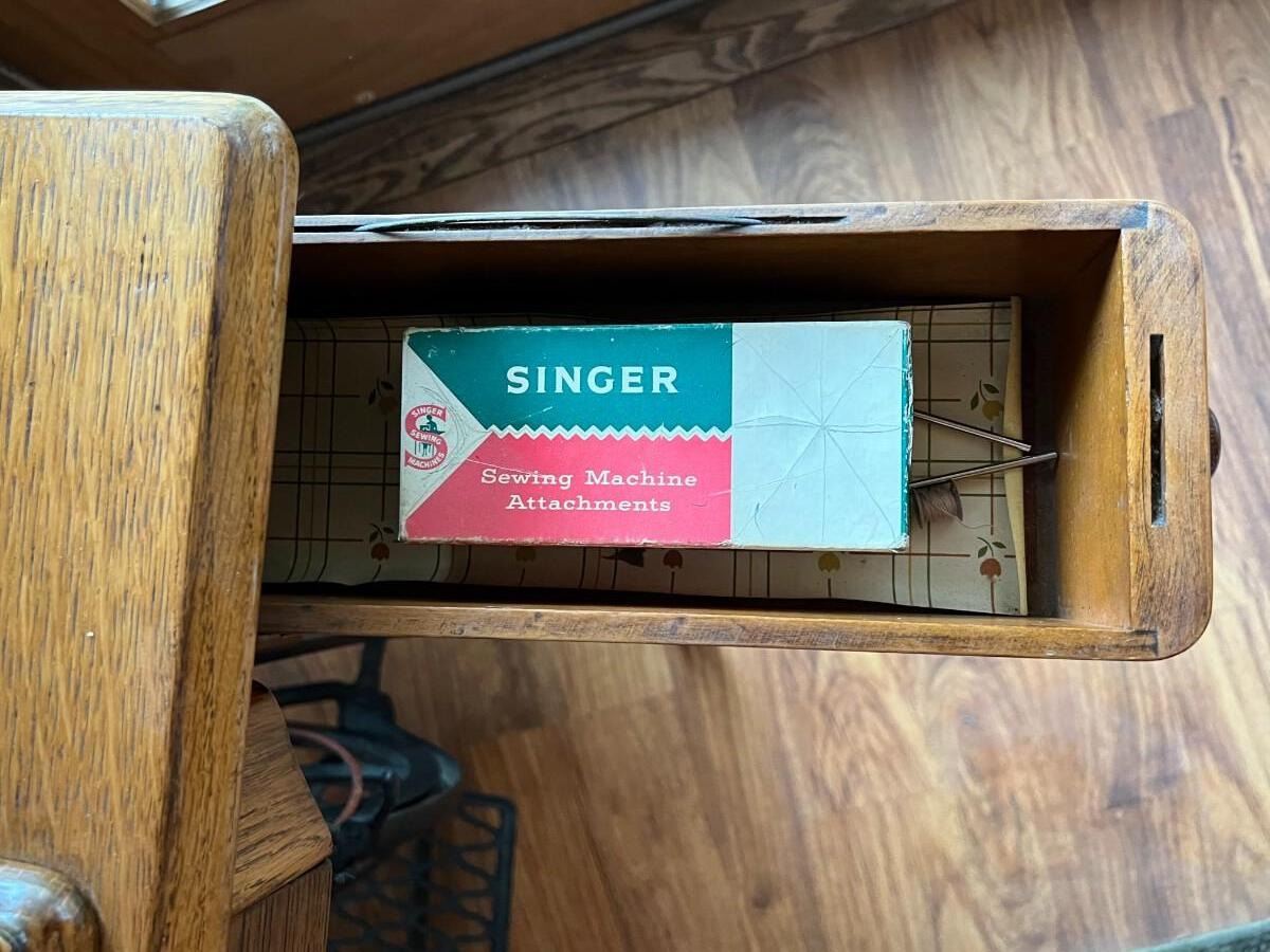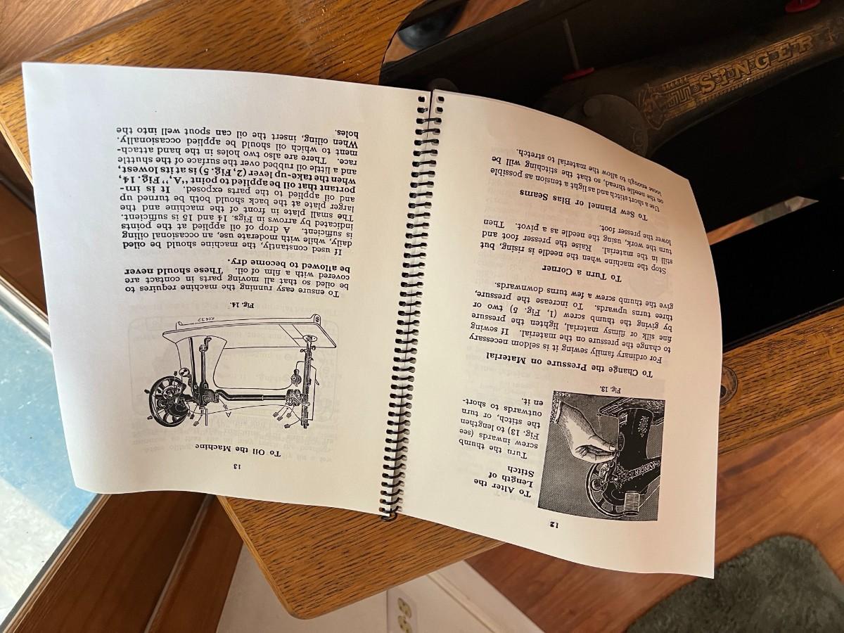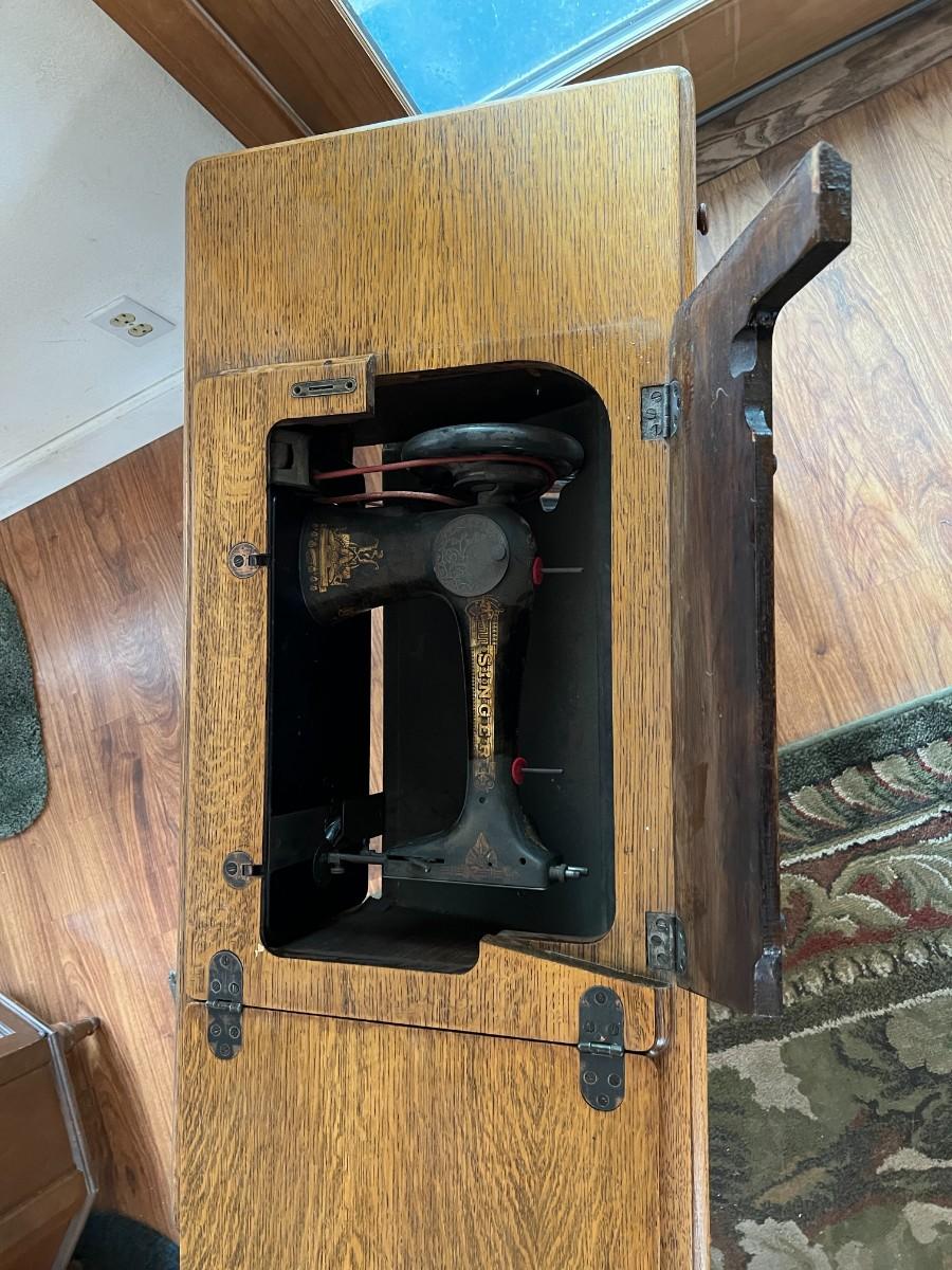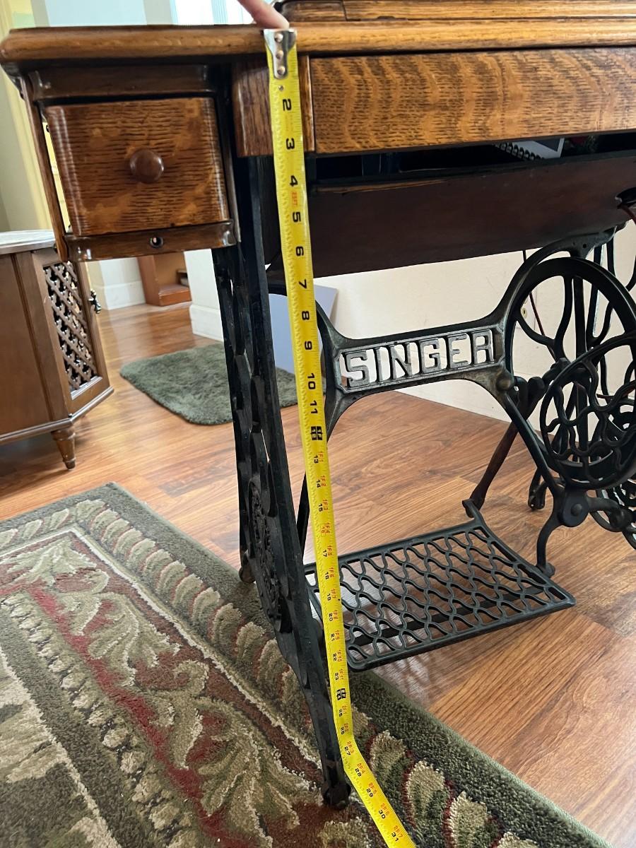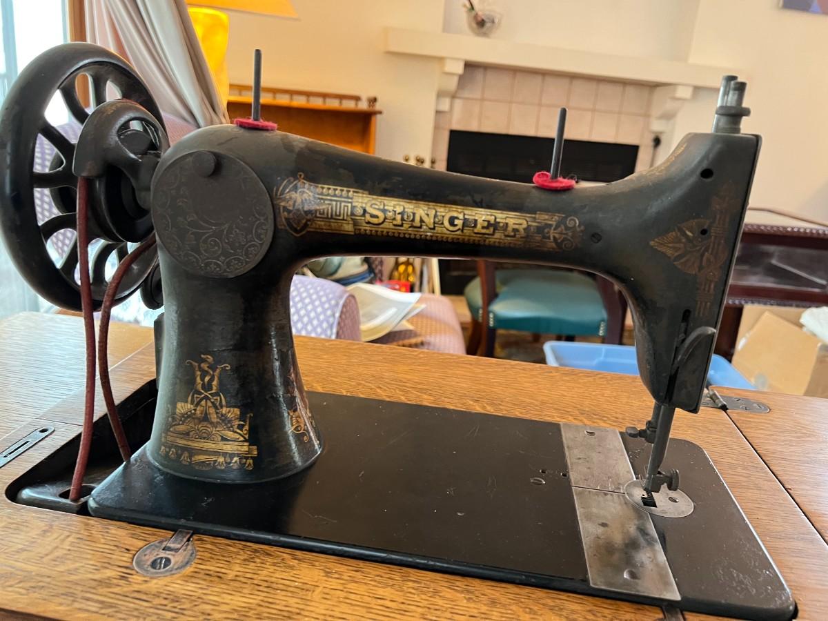 Antique Singer sewing machine with table. Foot treadle powered machine. In good antique condition. Comes with a copy of original manual. Machine number on manual puts this Singer at very early 1900s. Displays nicely, not sure on working condition, may need to be serviced due to age. ITEM LOCATED IN ORANGE; pickup will be coordinated within two weeks of auction close, no date set for pickup.