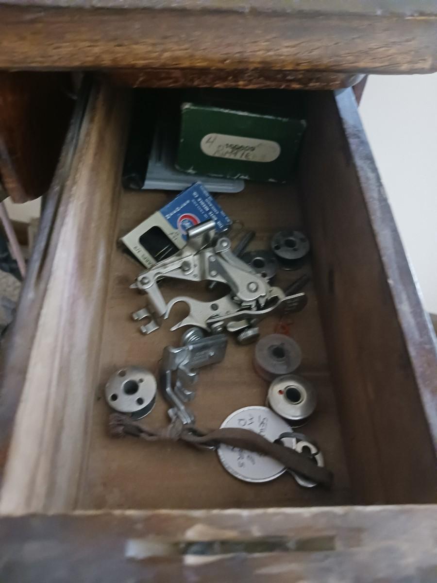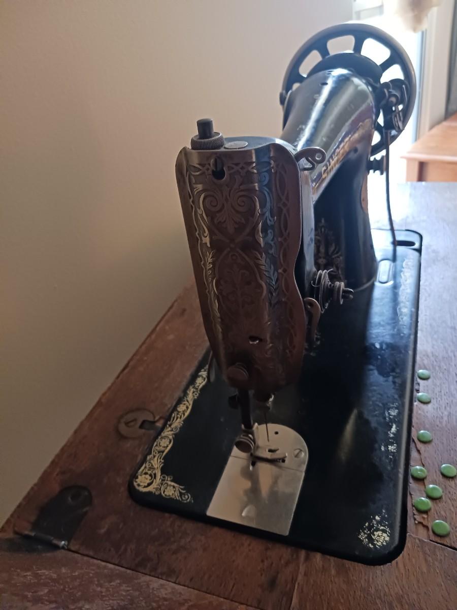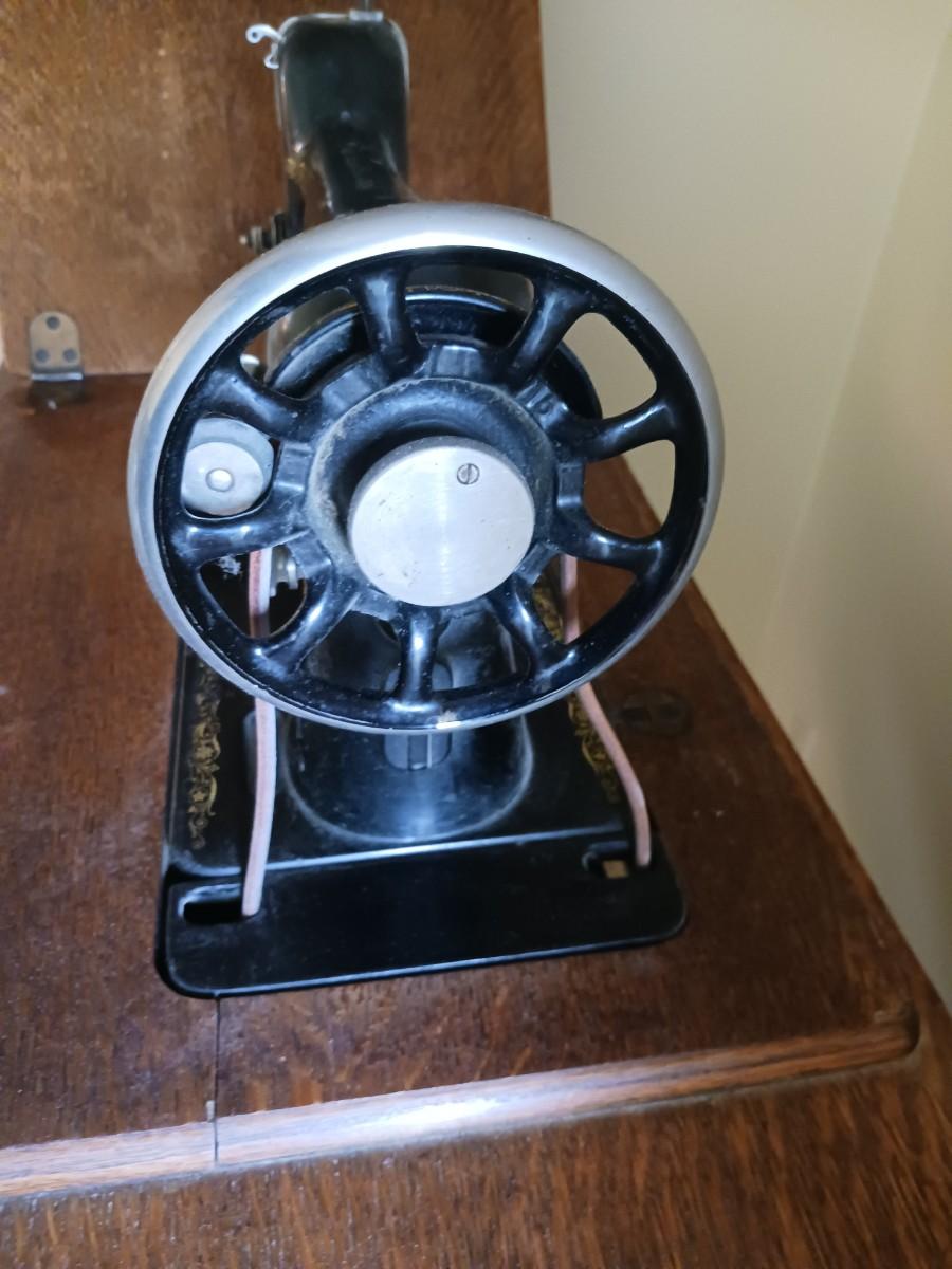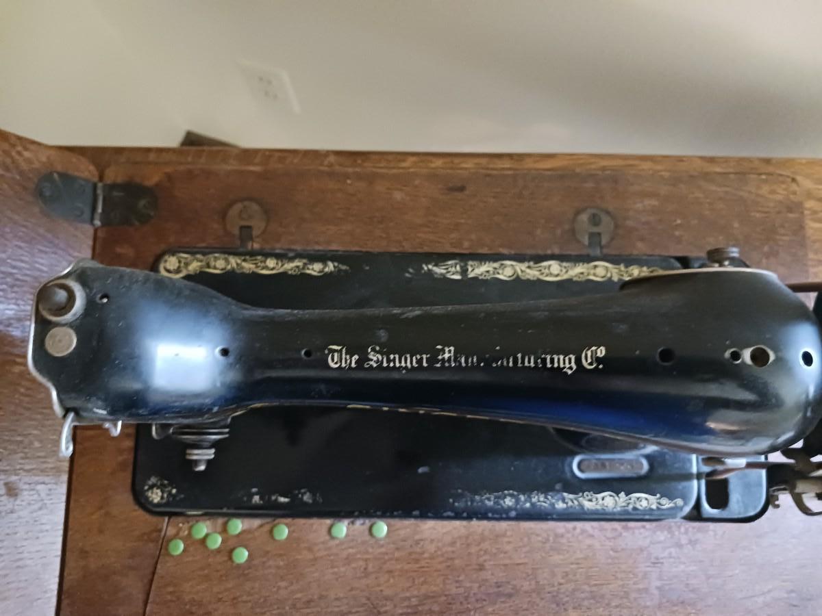 ANTIQUE SINGER TREADLE SEWING MACHINE IN A CABINET
