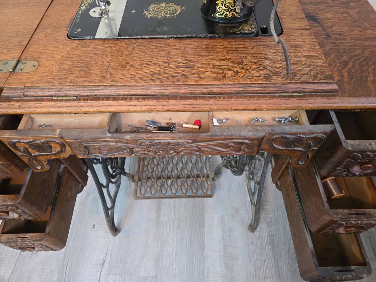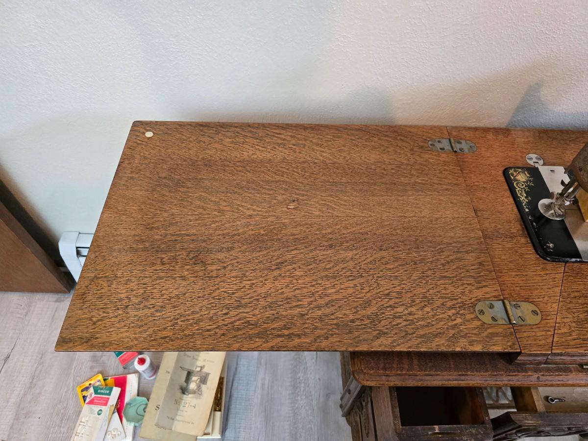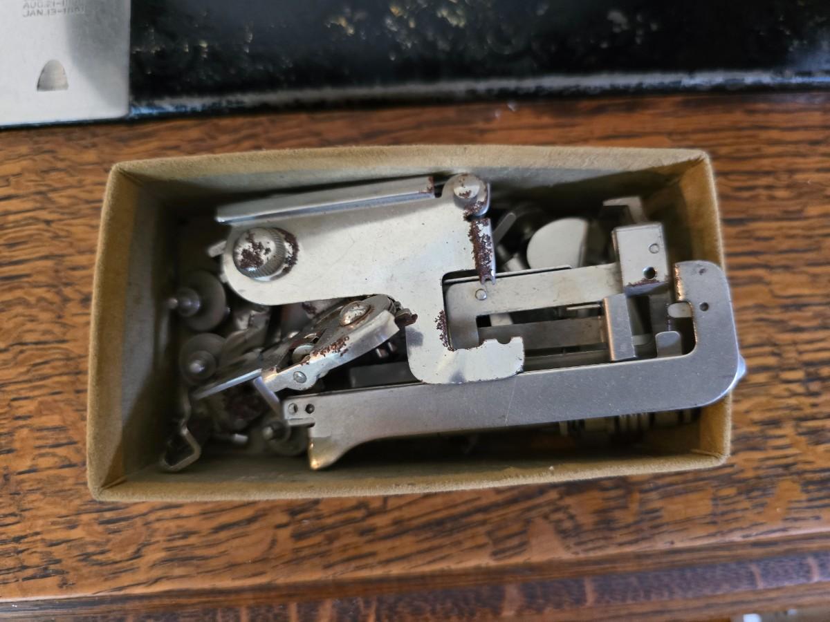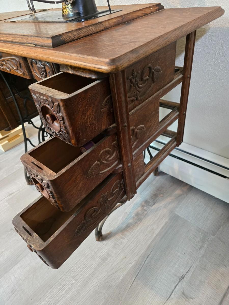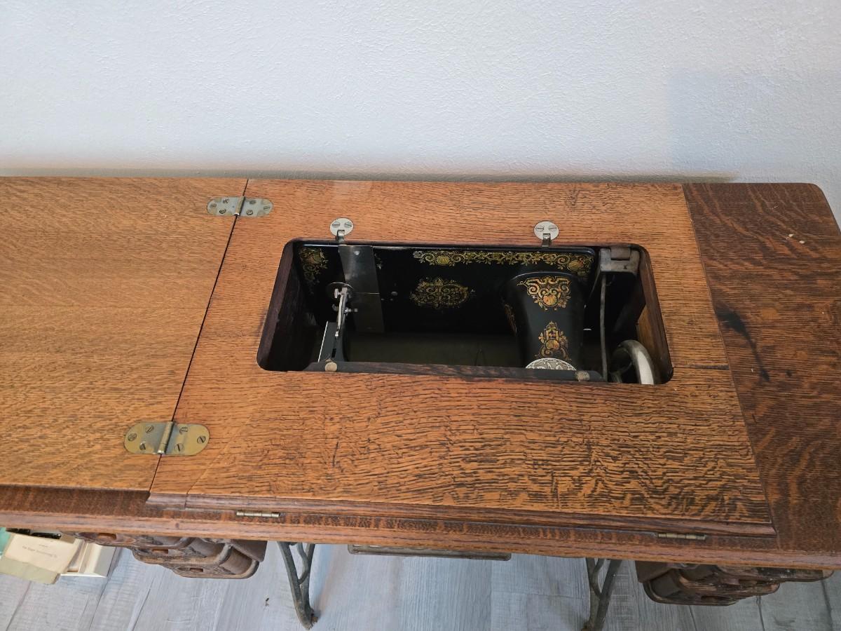 antique Singer treadle sewing machine with a wooden cabinet Complete with accessories and original manual