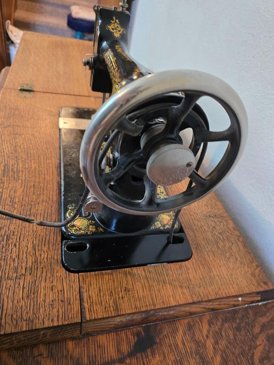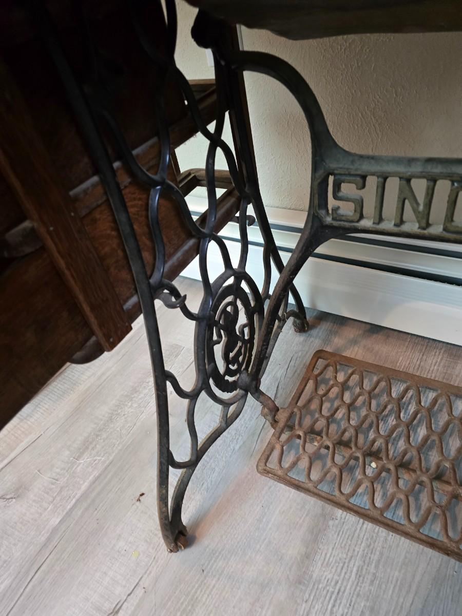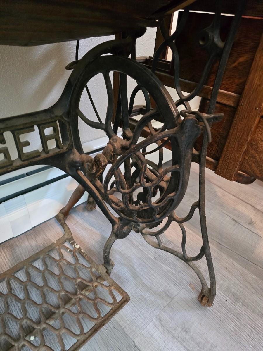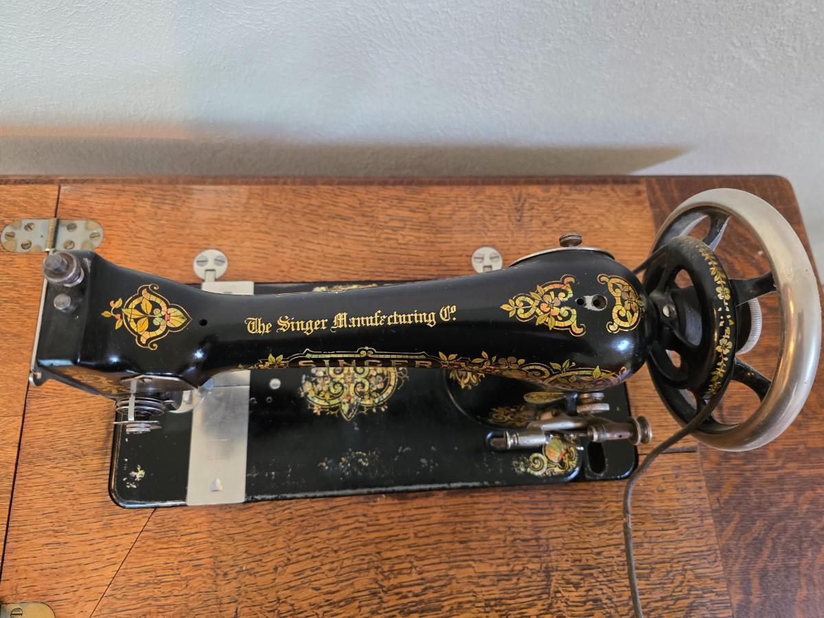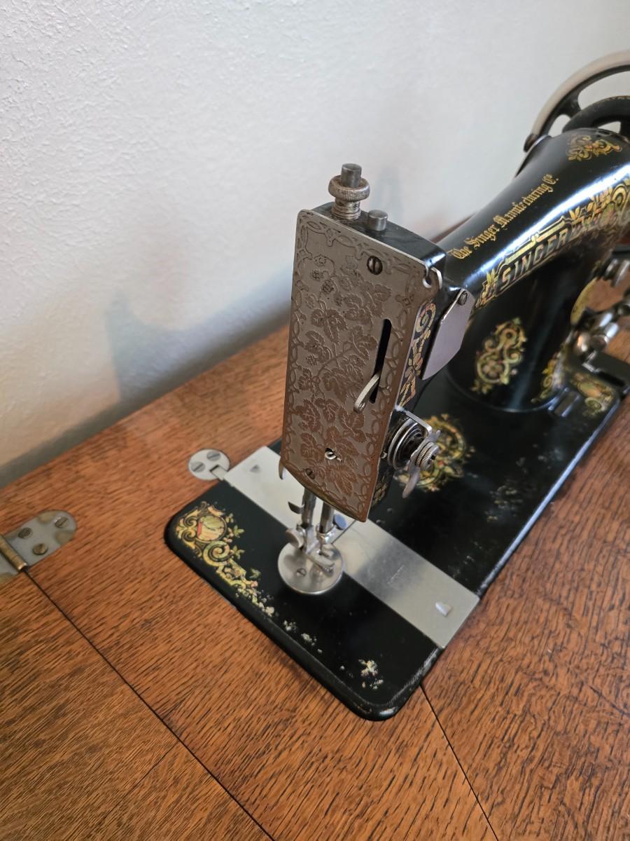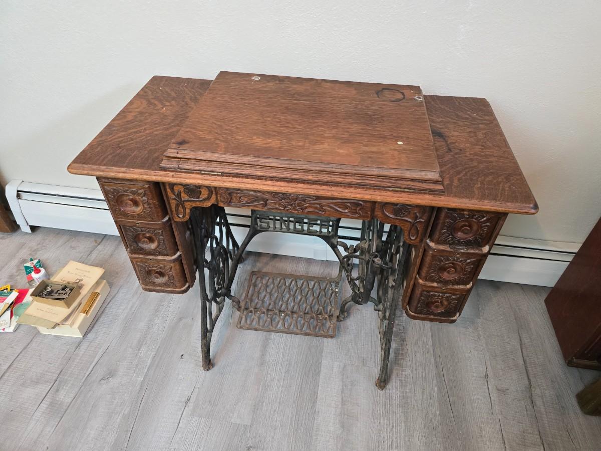antique Singer treadle sewing machine with a wooden cabinet Complete with accessories and original manual