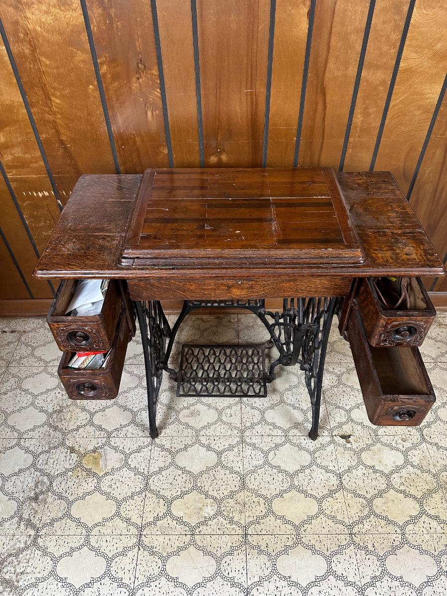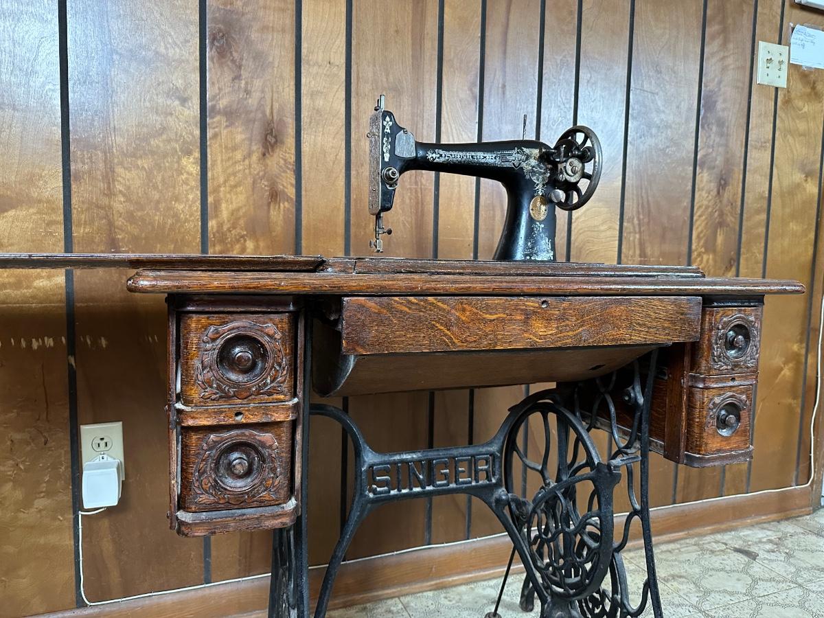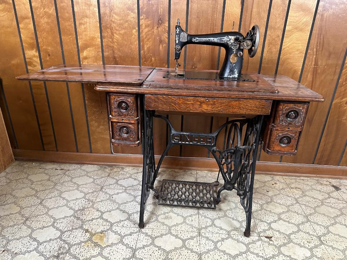 Antique Singer Treadle Sewing Machine w/ Oak Cabinet – Needs Belt
