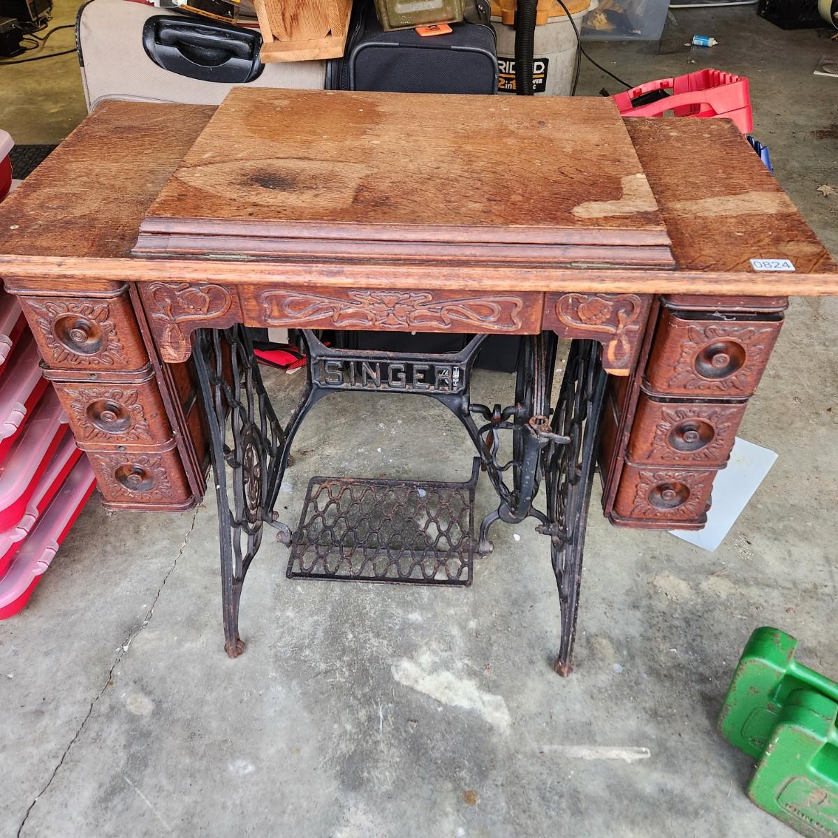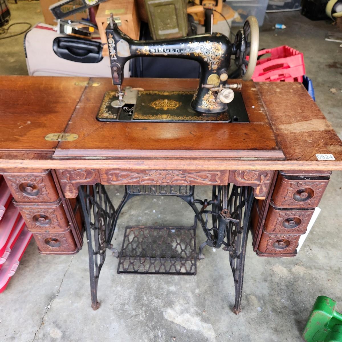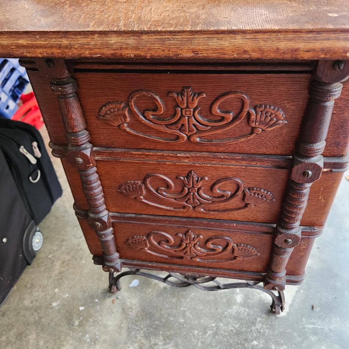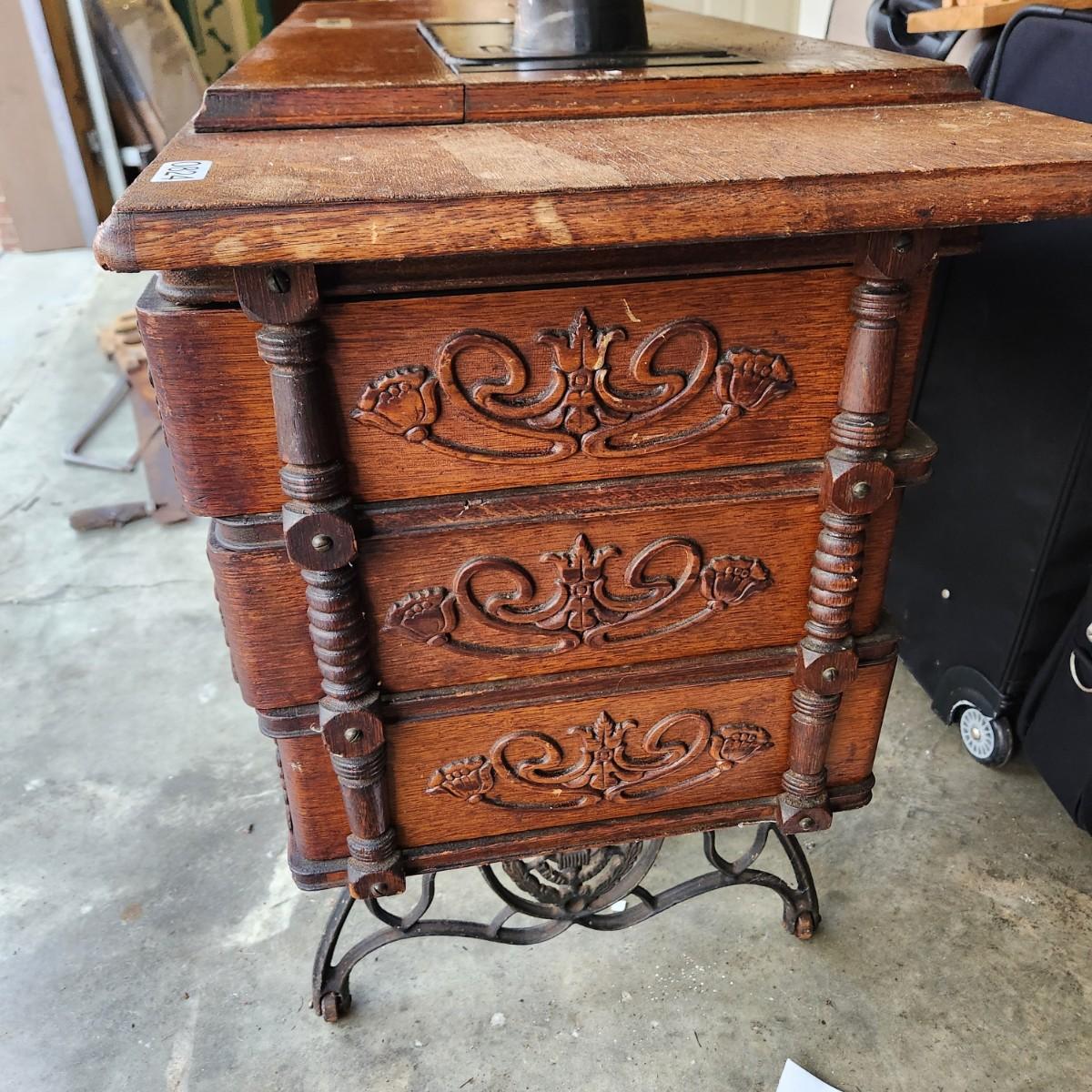 Antique Singer Treadle Sewing Model 27 w Ornate Cabinet #5