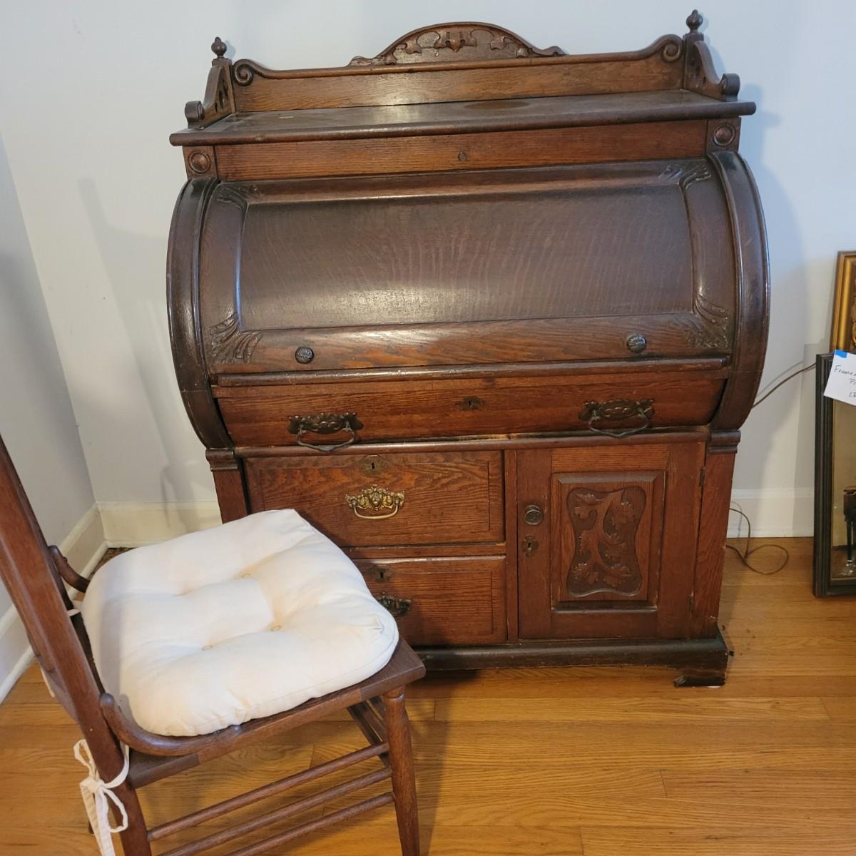 Antique Skandia Furniture Co. Roll Top Secretary and Chair (LR-DW)