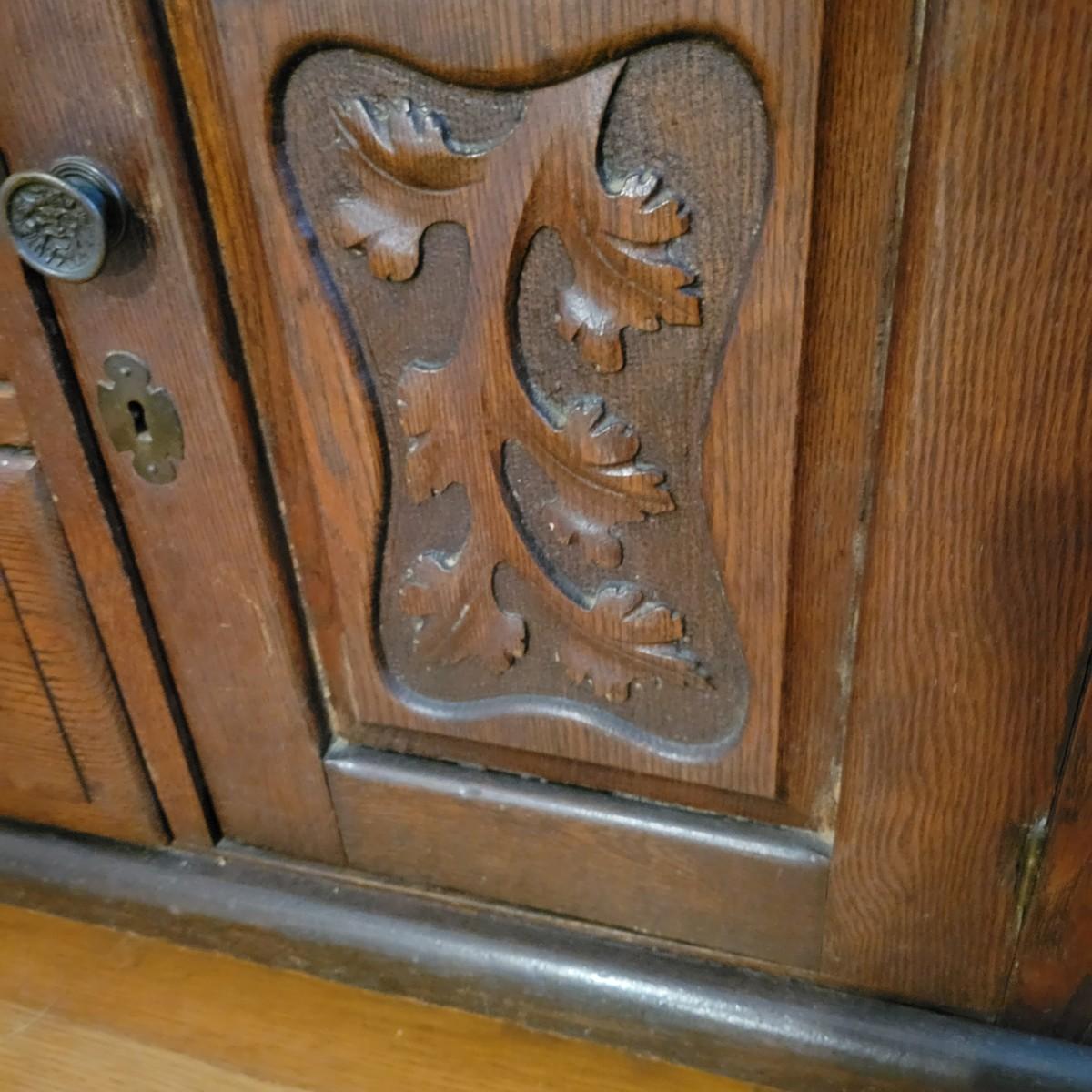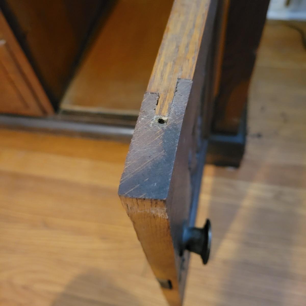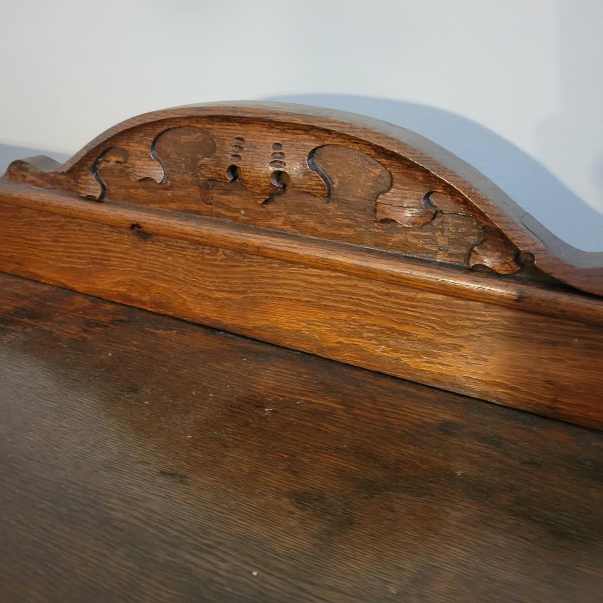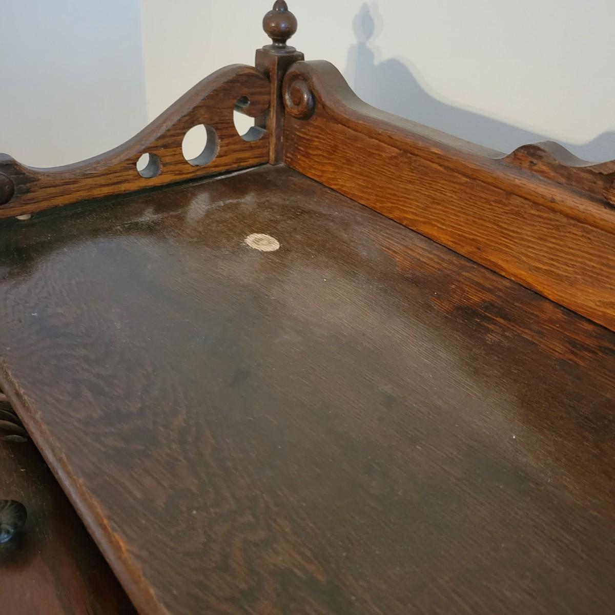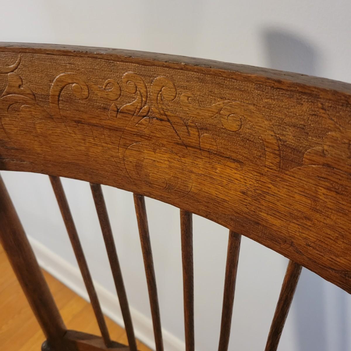 An exquisite antique wooden roll top secretary manufactured by Skandia Furniture Co. Secretary is in good condition but does show some wear from use. All drawers have mortised corners and all open. There is a some difference in the metal hardware for the large top drawer and smaller drawers and there is a small white spot in the stain on top of the secretary. Roll top operates smoothly and writing surface pulls out. Included is an antique chair with a woven cane seat and cushion. Chair is in excellent condition. Secretary measures approximately 38" x 22" x 47". Chair measures approximately 18" x 16" x 40" and the seat height is approximately 17". Local pickup only.