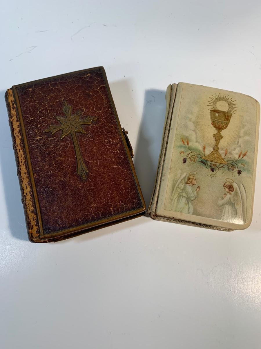 Two pocket sized bibles one in English the other in French