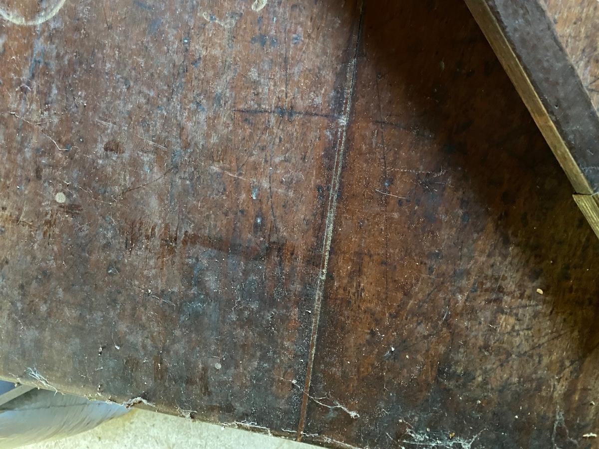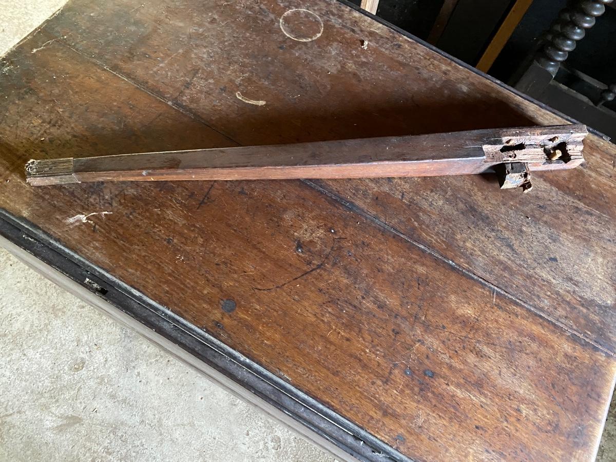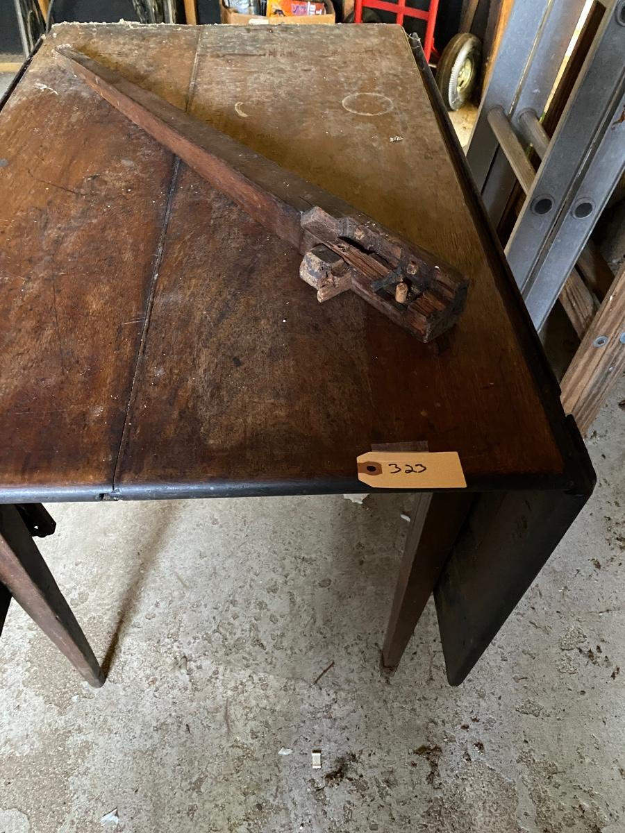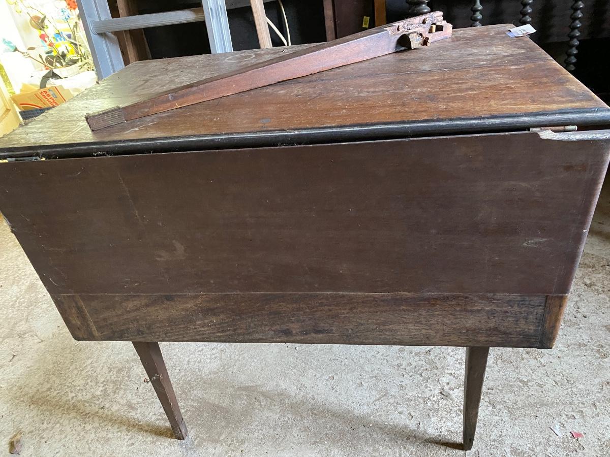 Antique small space drop leaf table, Original finish, one leg needs repair as pictured