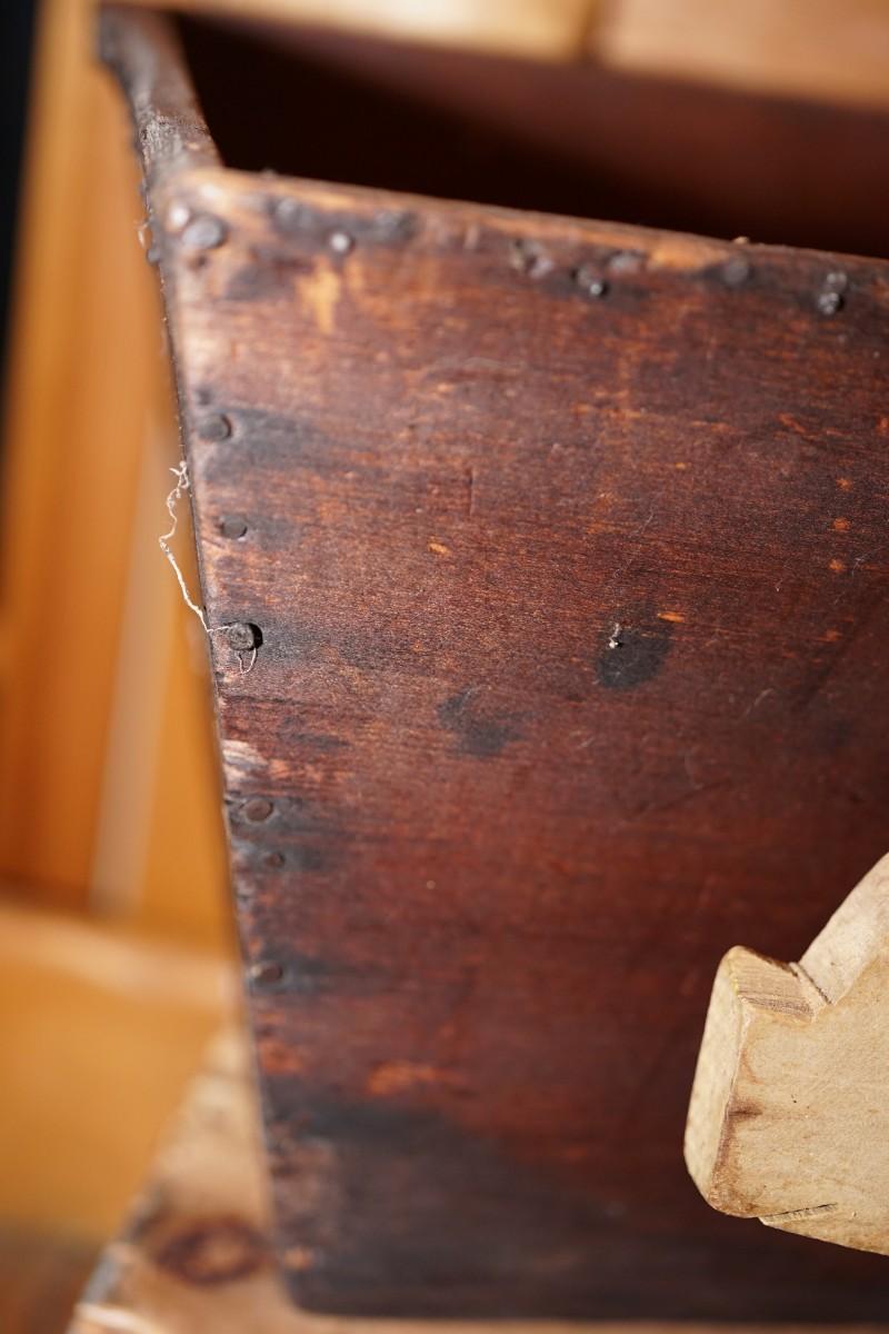 wooden grain box of 11" in a triangle formed box. The pig board is vintage.