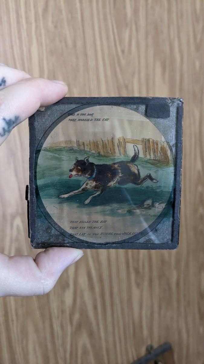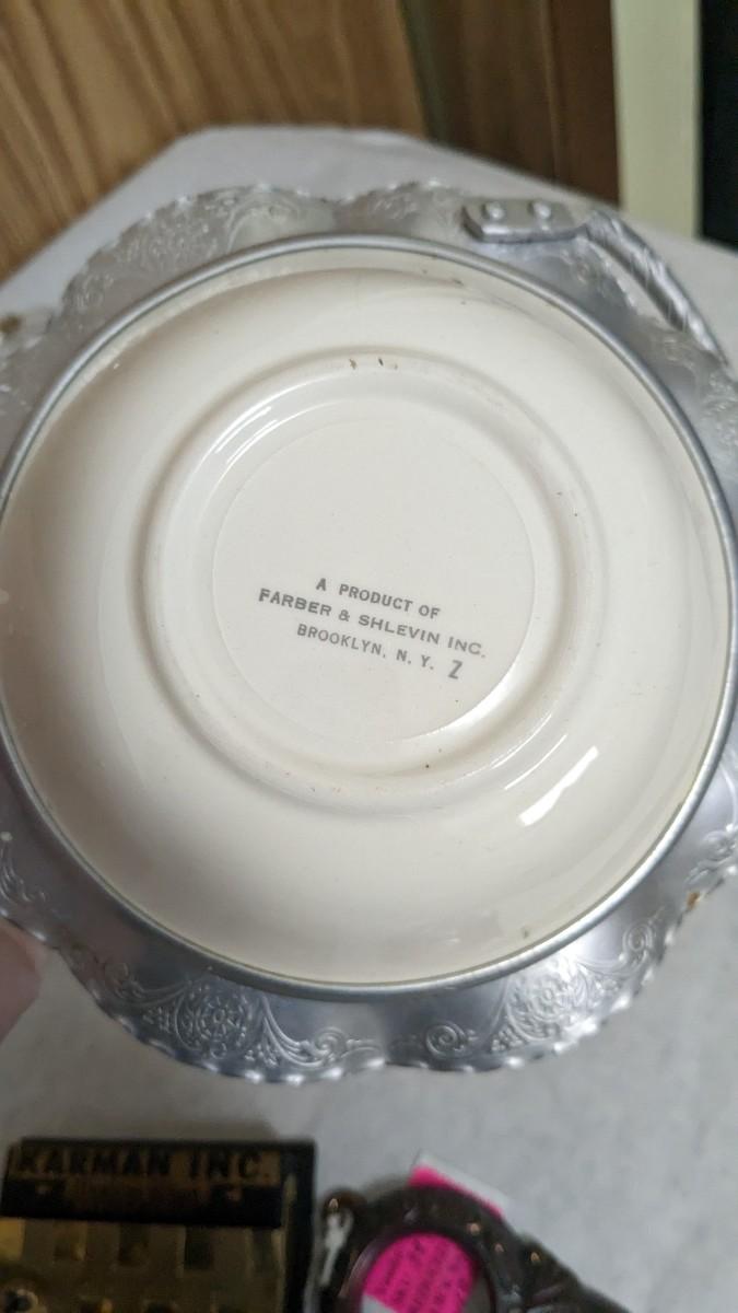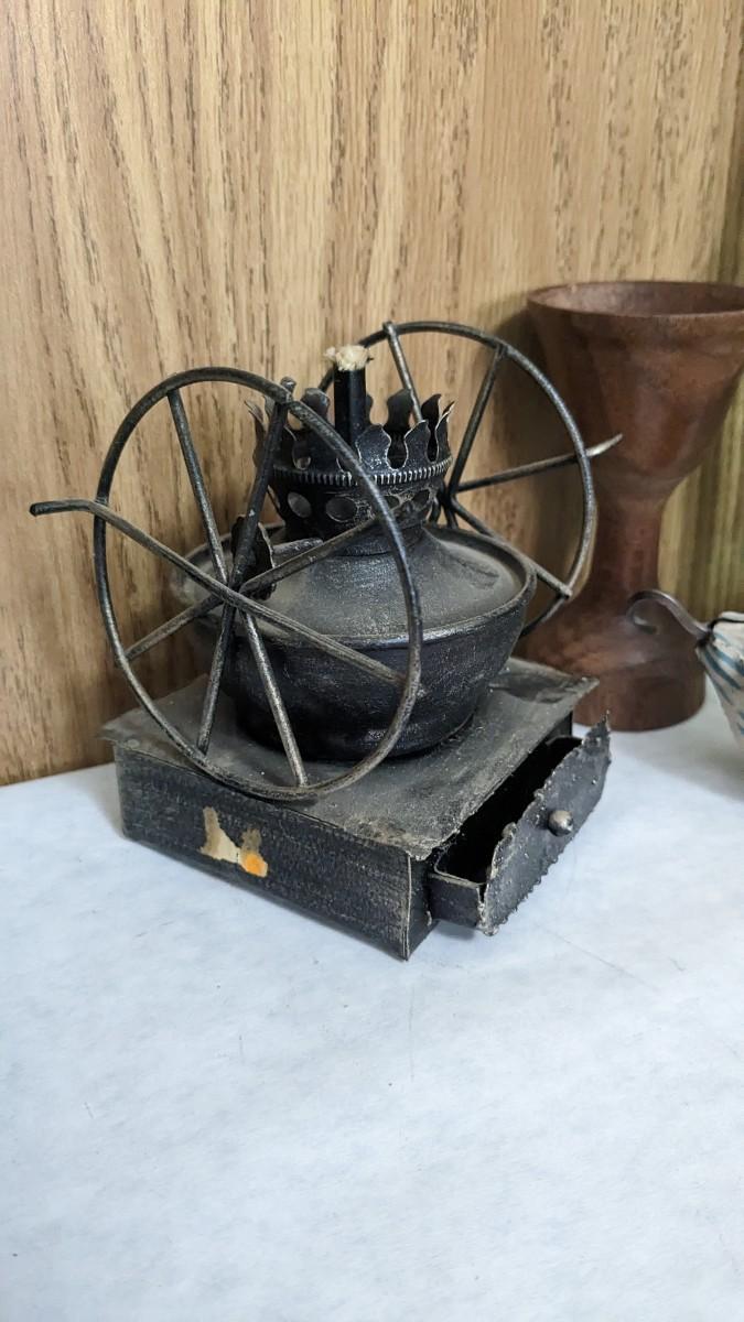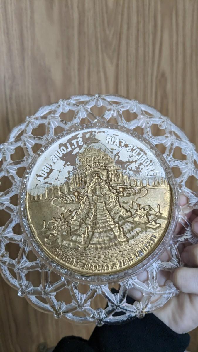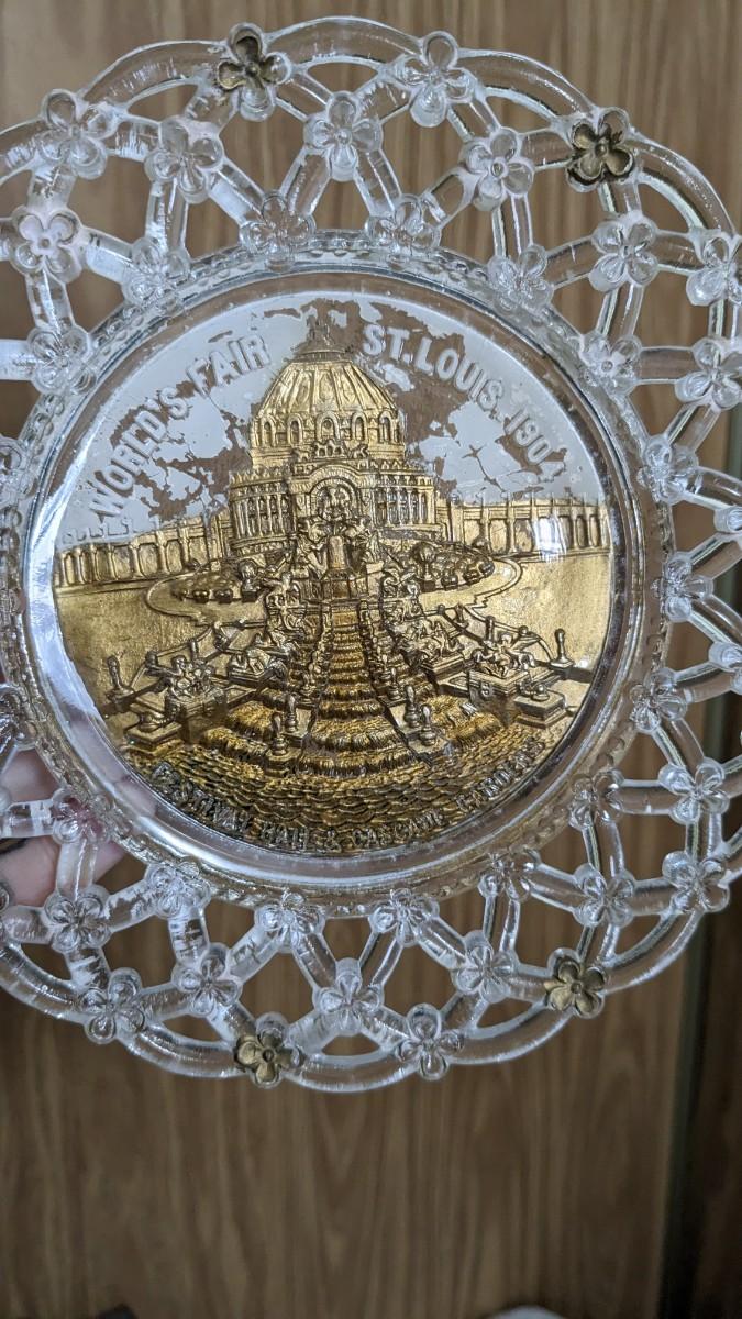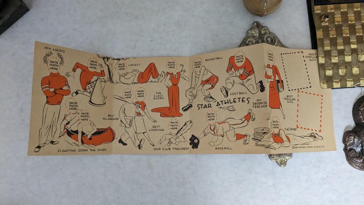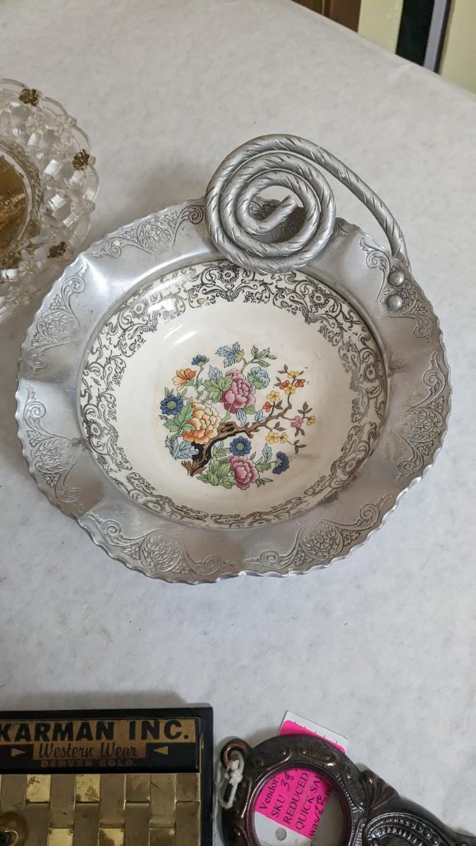 a very fun little lot of antiques. Includes cast iron picture frame, stereoscope type b-3, a small Frankoma pitcher, tin toy duck with key that winds but has trouble walking, a beautiful Farber & Shlevin porcelain bowl with silver edging, 1904 World's Fair St. Louis decorative dish, pearl inlay light switch cover, a very unique mounted brass bolt, and more! Some pieces that need their mates, all in all a fun lot! bdrm1