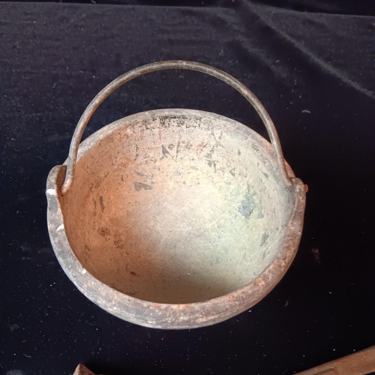 ANTIQUE SMELTING POT & CAST IRON LEAD LADLE