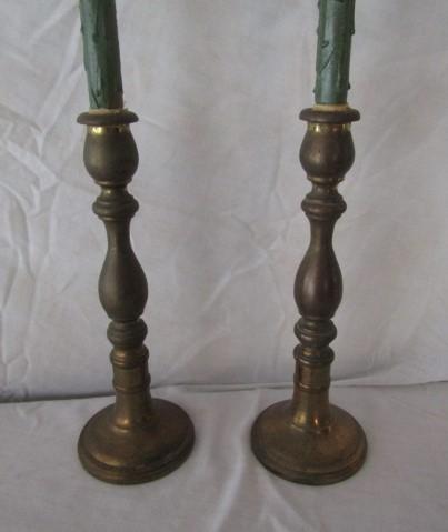 Antique Solid Brass Candle Holders- Very Heavy (Approx. 11 Inches High)