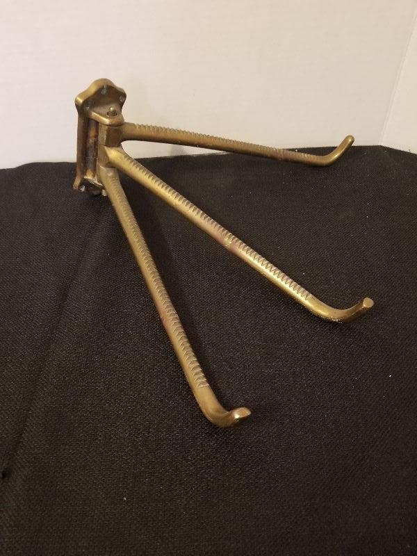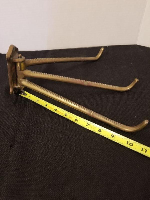 Antique Solid Brass Coat Hanger Rack 3 Notched Arms - #70-A