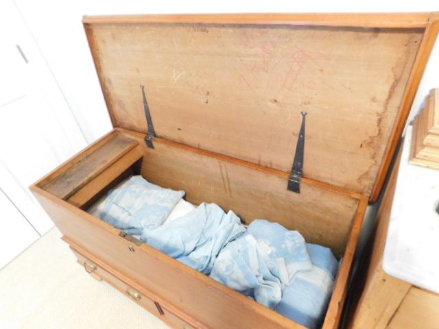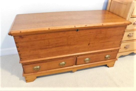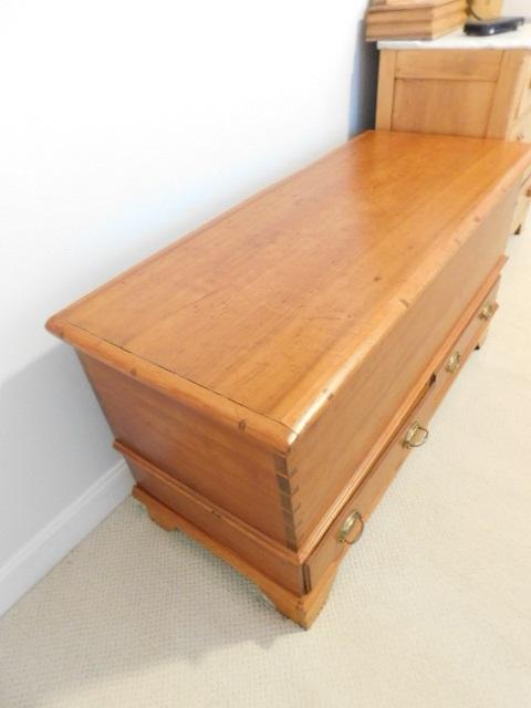 Antique Solid Maple Wide Panel Blanket Chest with Dovetail Details