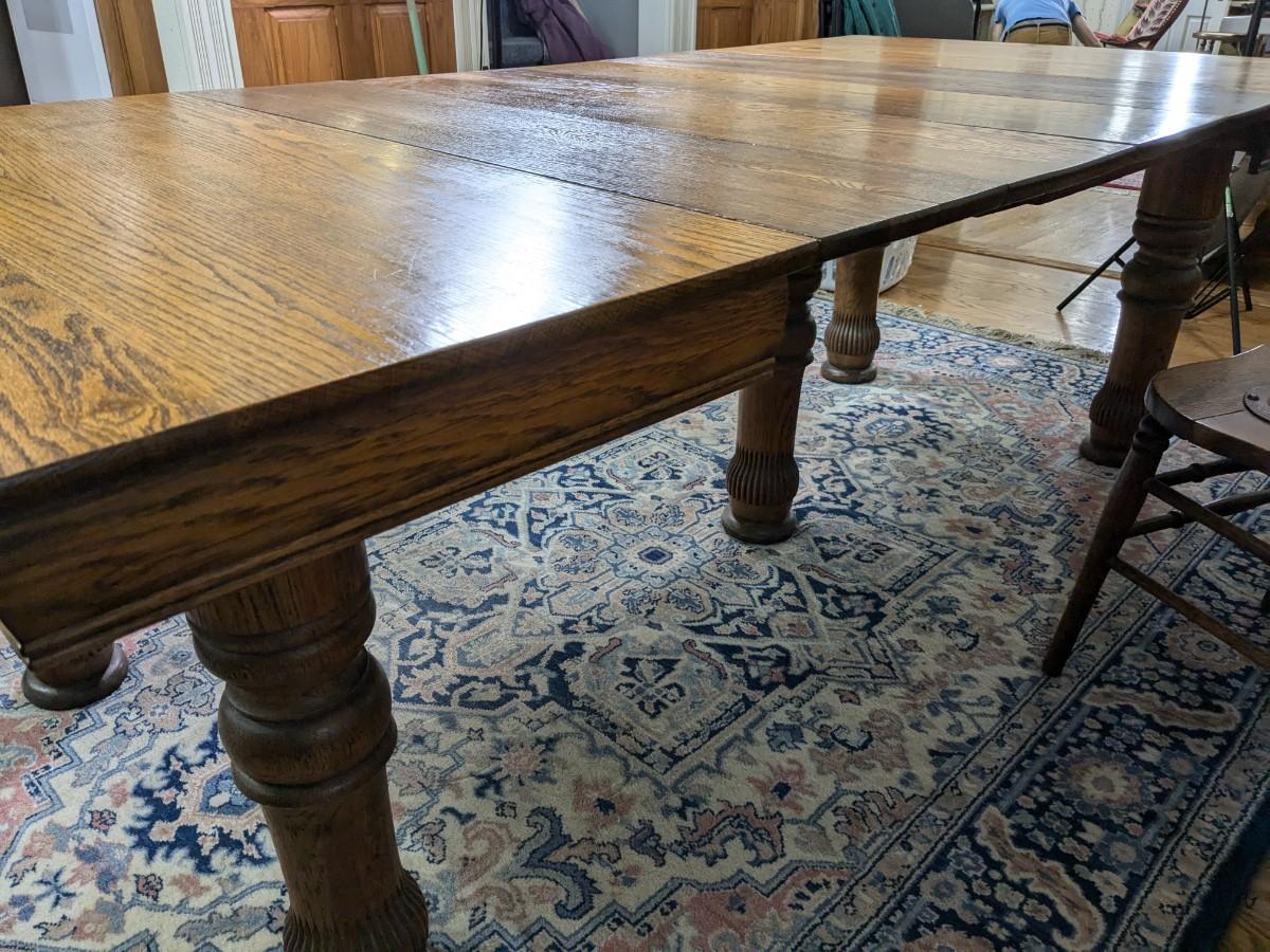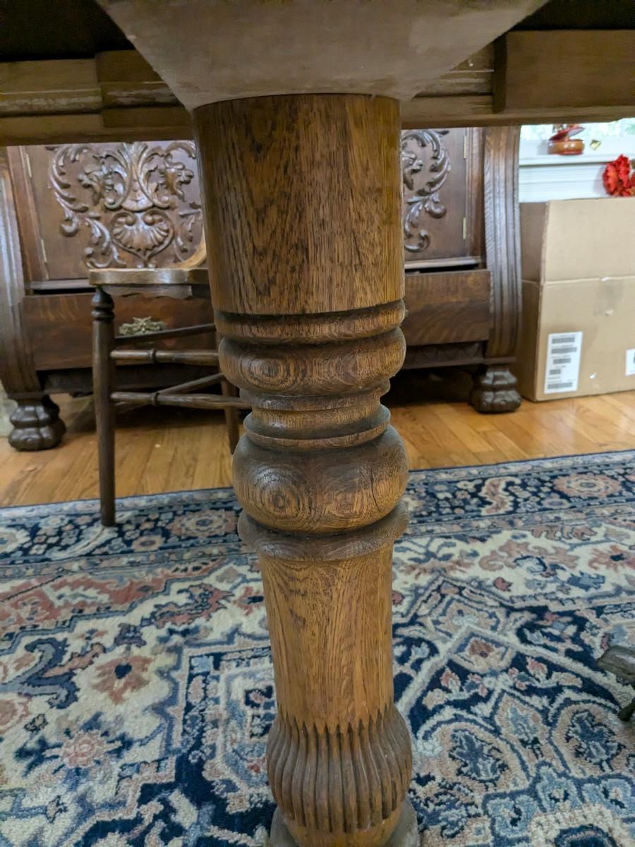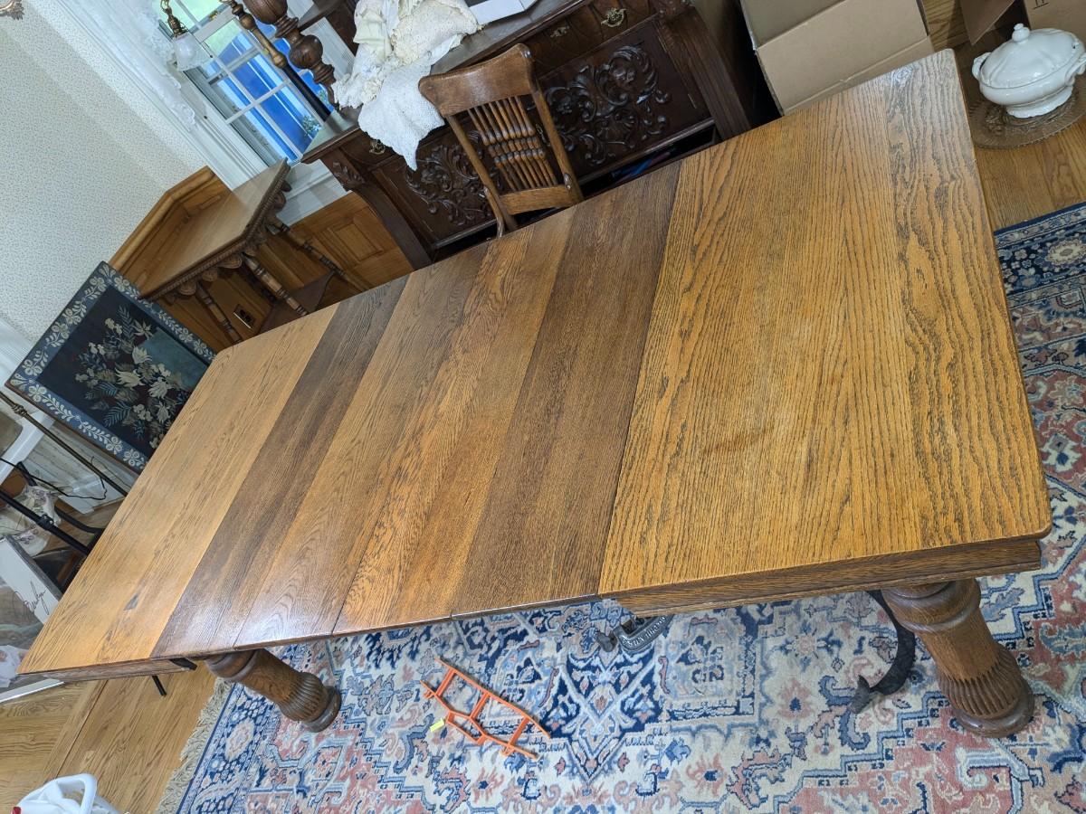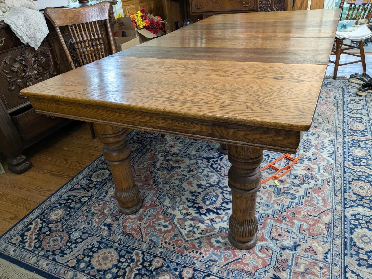 Antique Solid Oak Dining Table w/ 4 Leaves