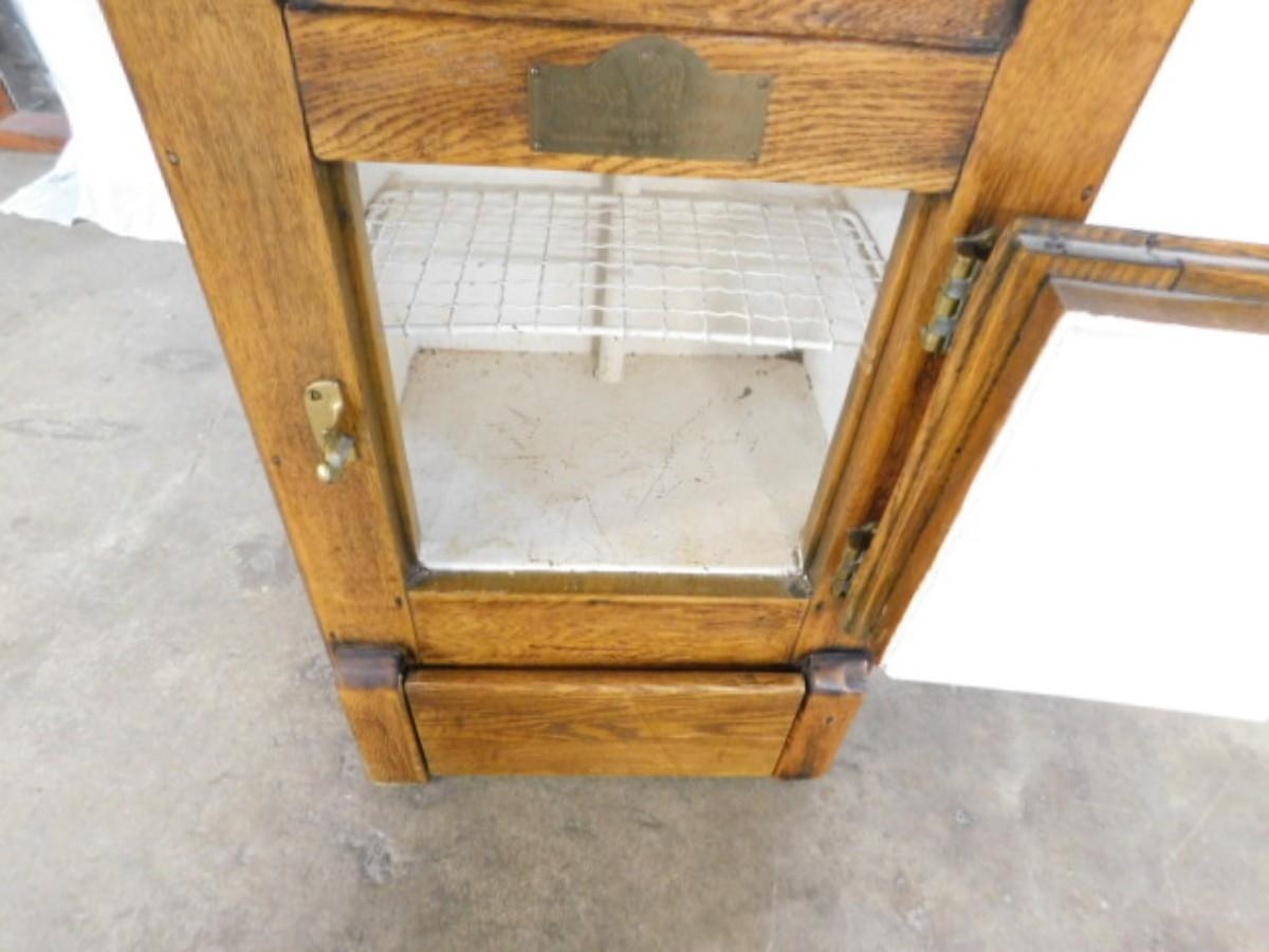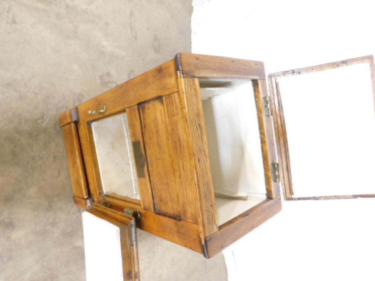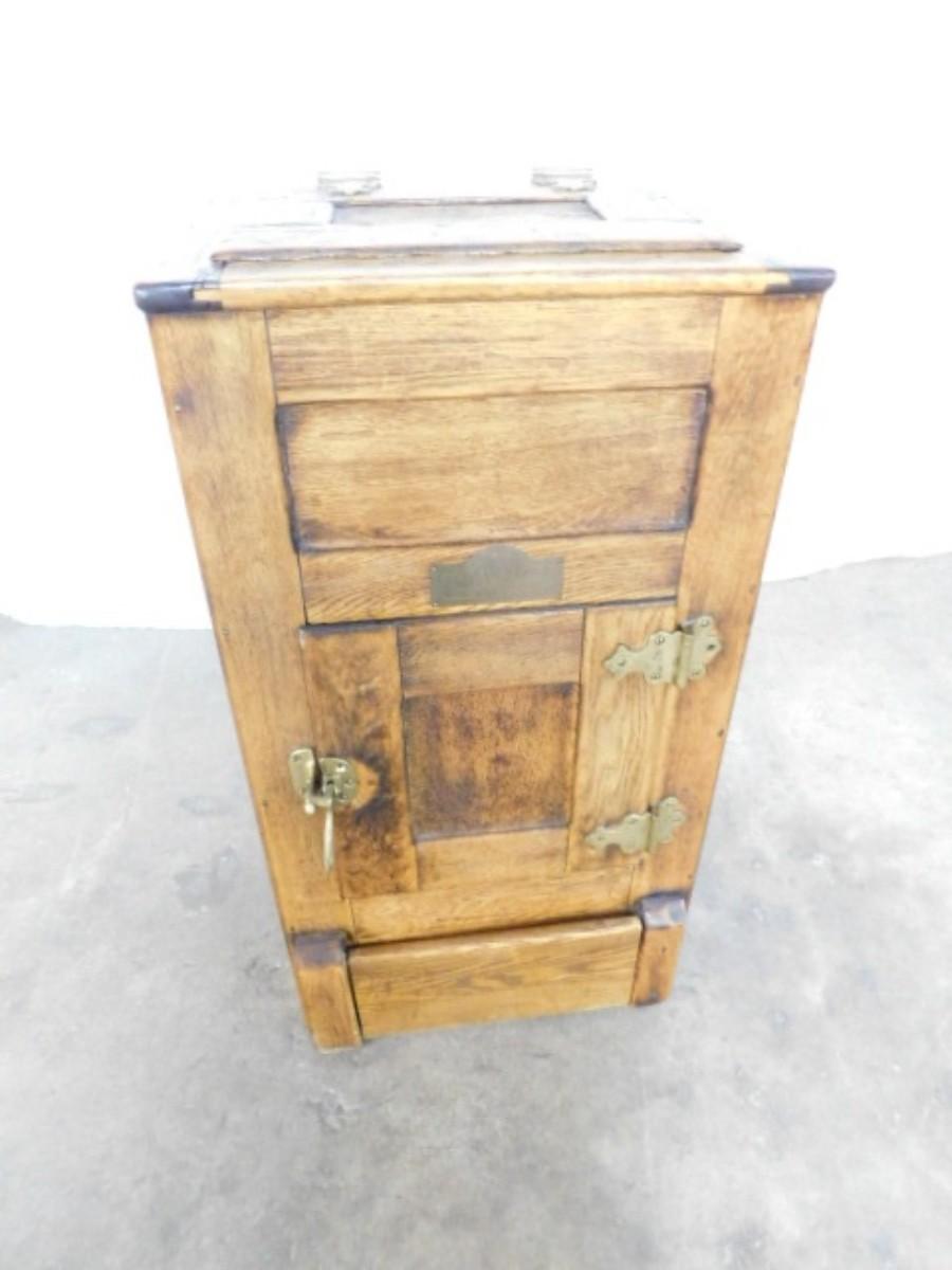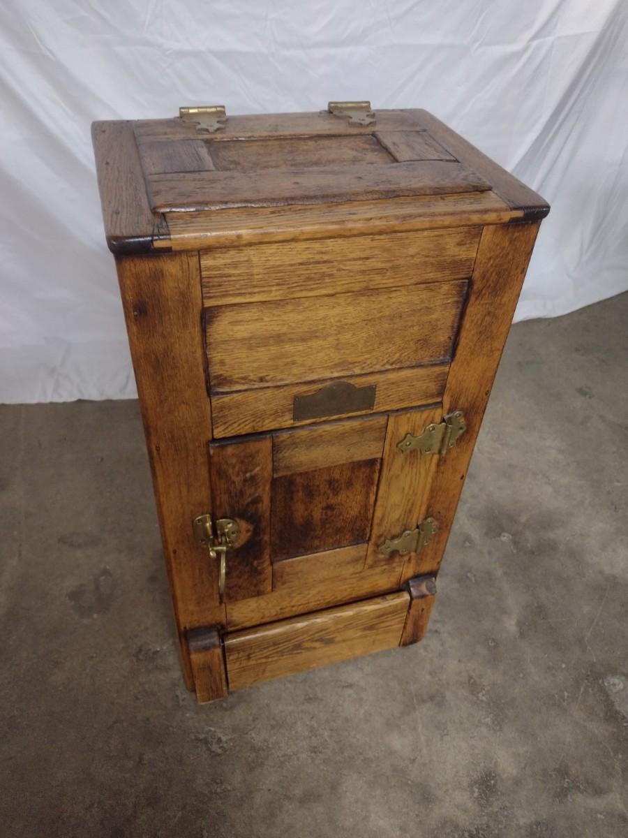 Antique Solid Oak Polar Bear Ice Box Refrigerator