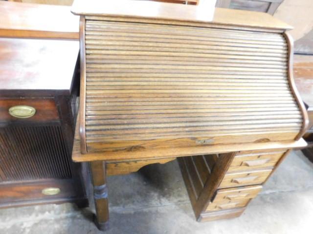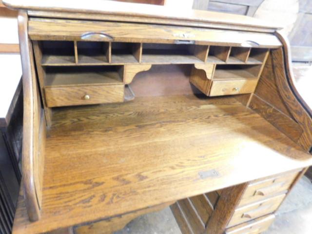 Antique Solid Oak Roll Top Writing Desk