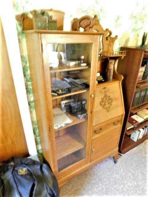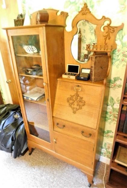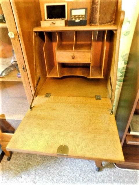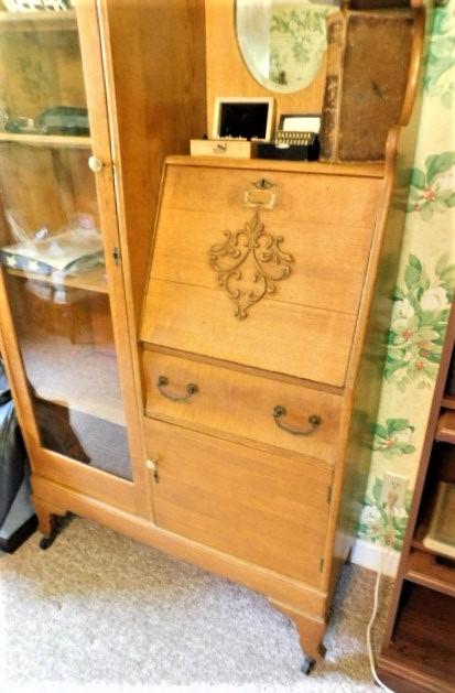 Antique, Solid Oak Secretary with Side Cabinet (No Contents)