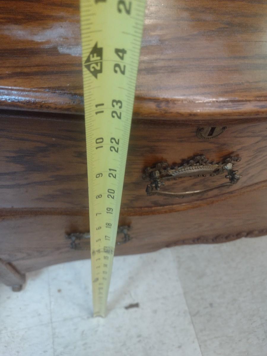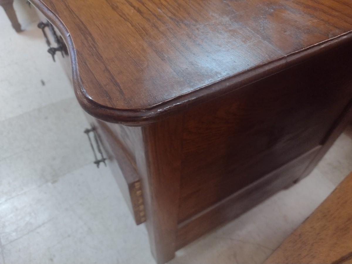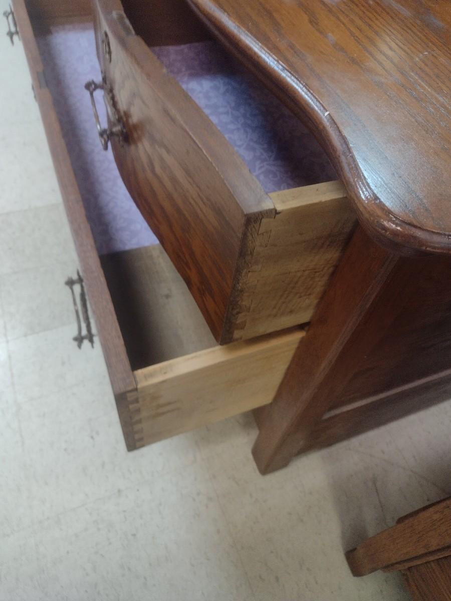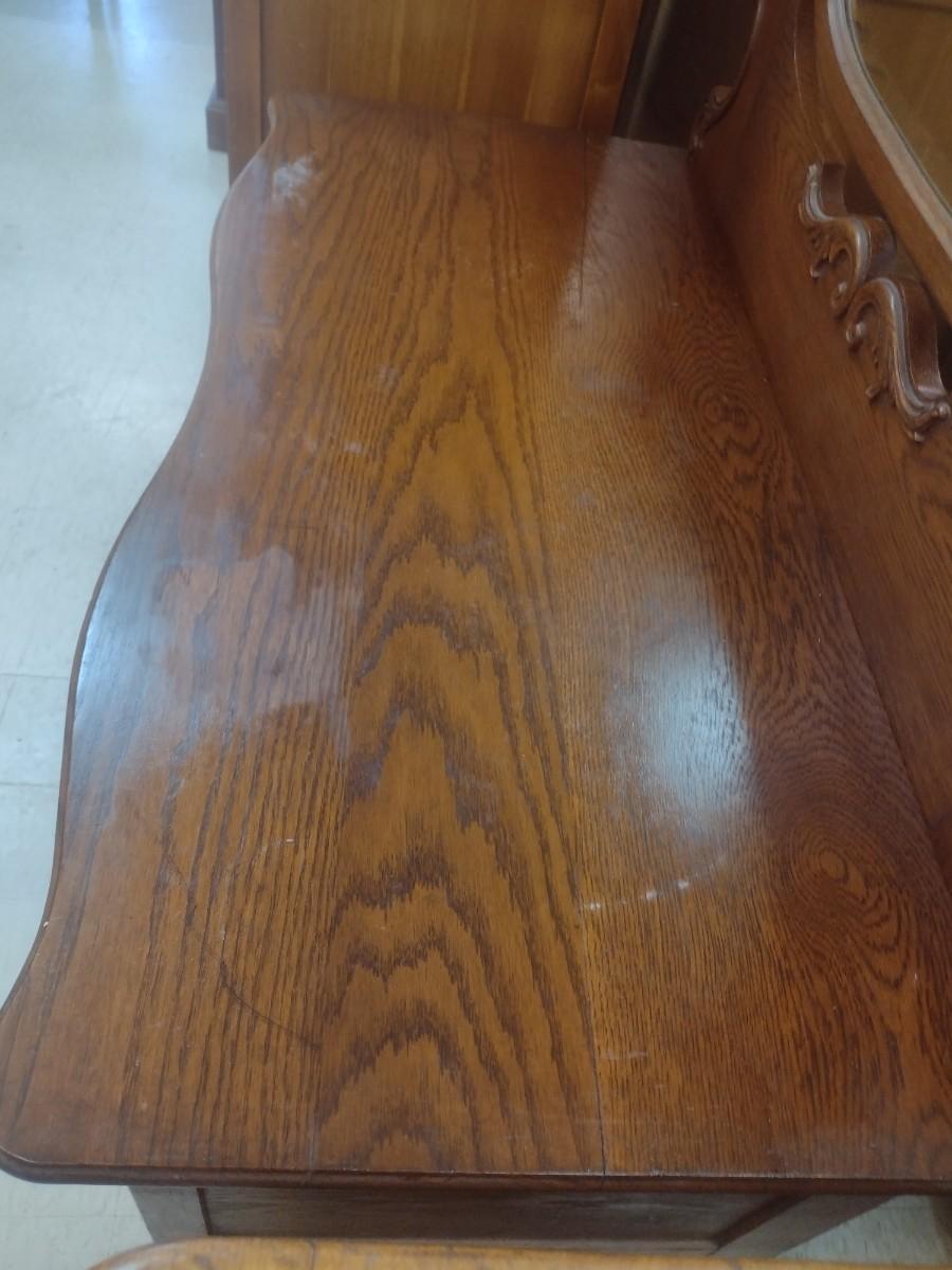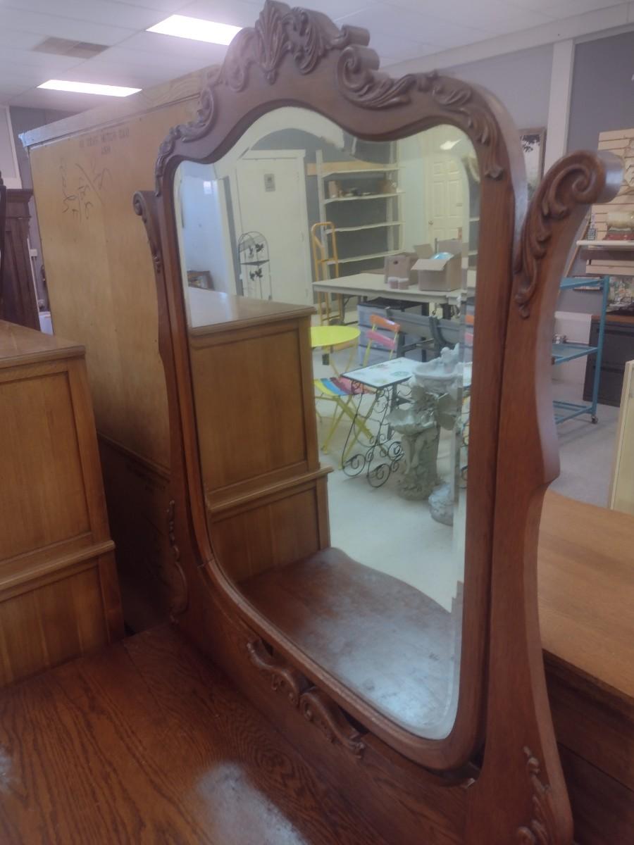 Antique Solid Oak Serpentine Two Over One Dresser with Harnessed Swivel Mirror