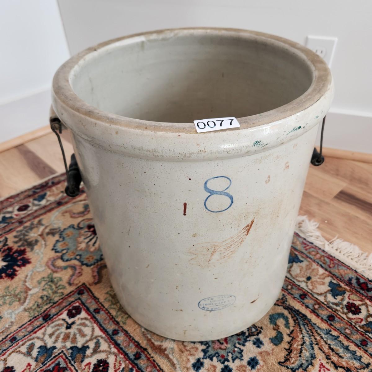 Antique Solid Red Wing Union Stoneware 8 Gallon Crock w Handles