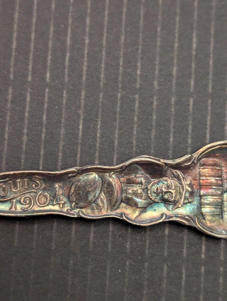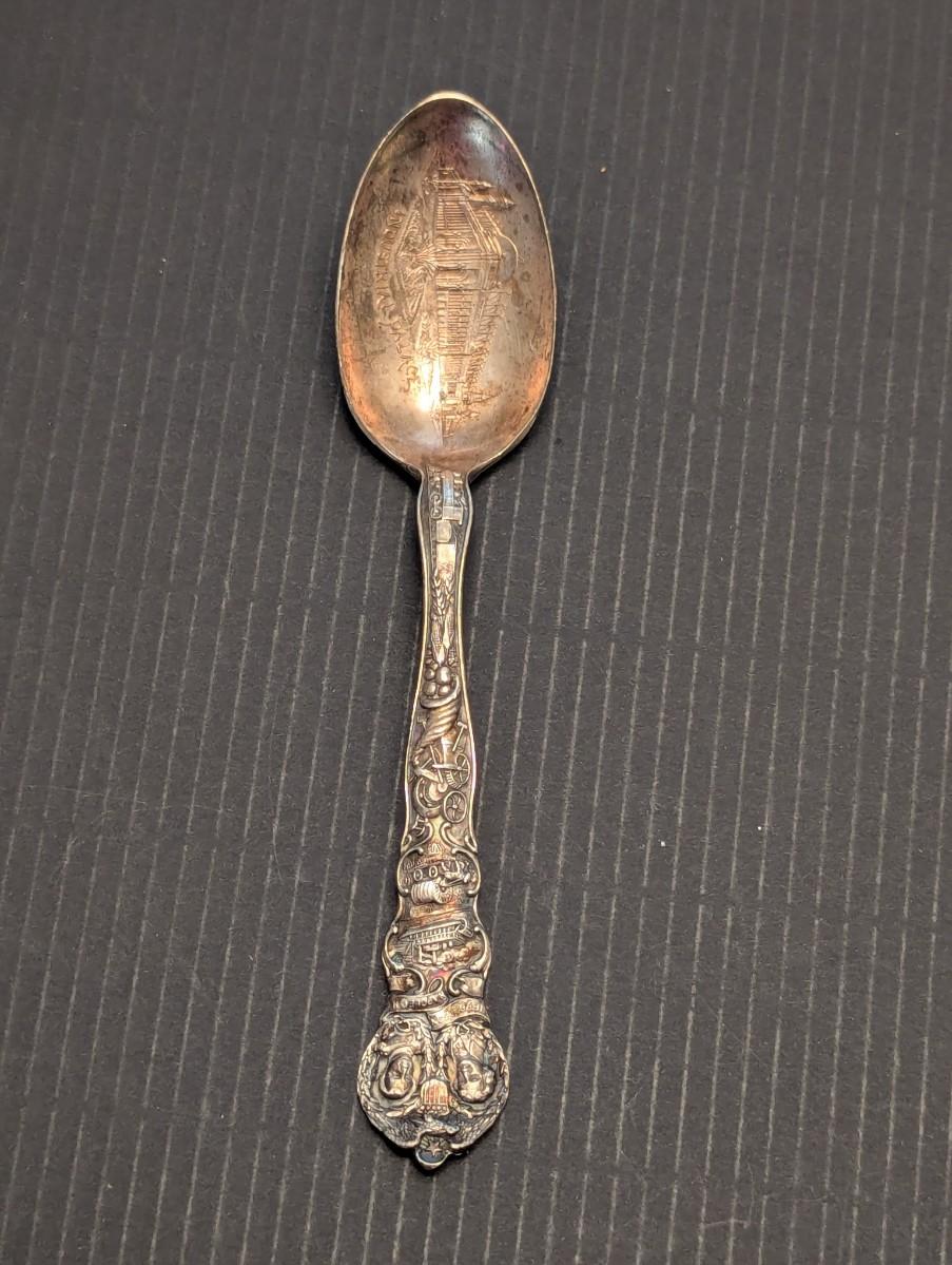 Antique Solid Silver 1904 St. Louis World's Fair Souvenir Spoon Industrial Palace 24g